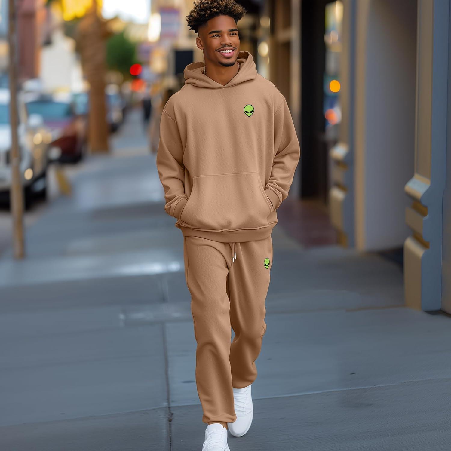 DALIX Alien Embroidery Relaxed Sweatsuit Set Hoodie Jogger Soft Fleece Relaxed Fit Lounge Mens(Camel)