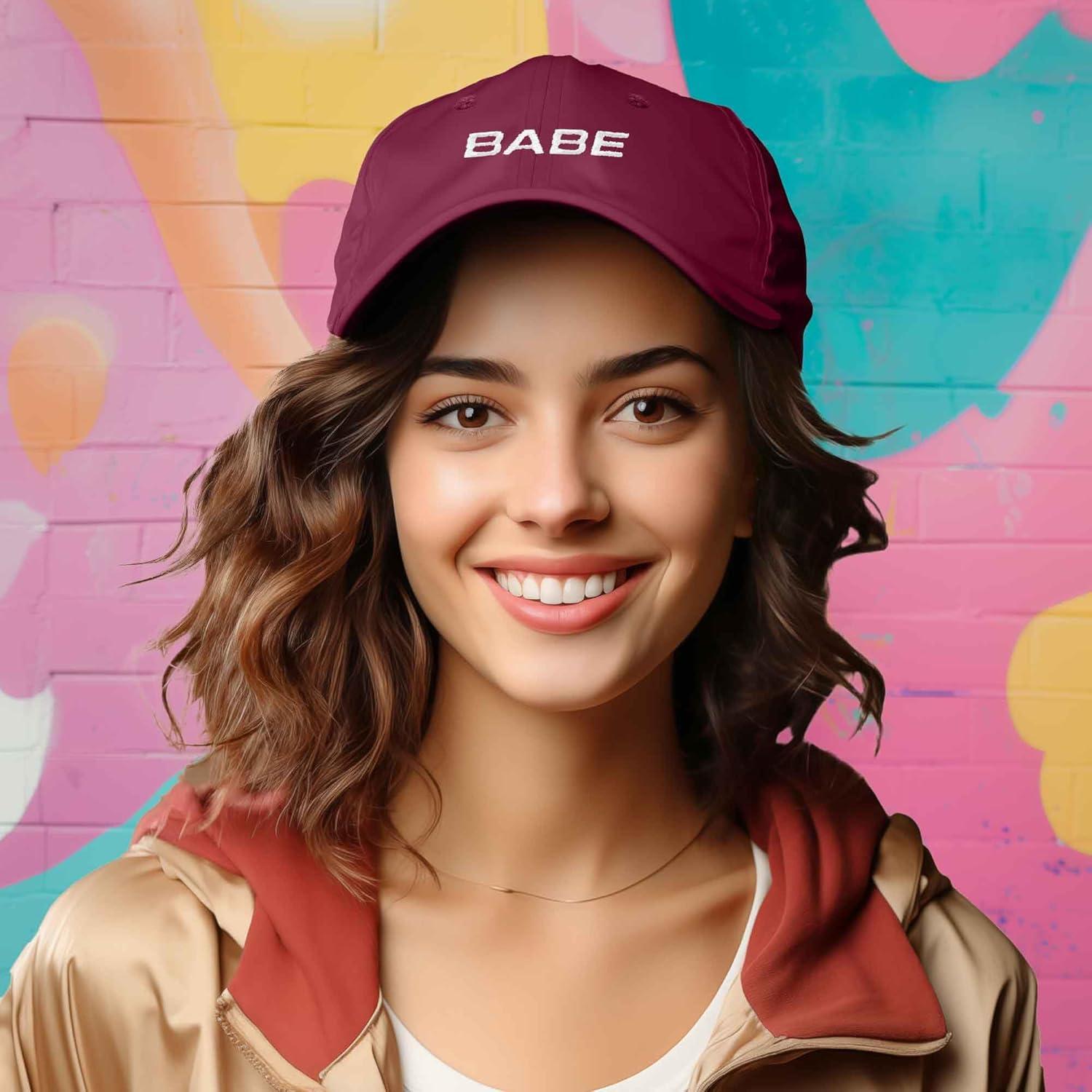 DALIX Babe Embroidered Cotton Baseball Cap Adjustable Dad Hat Womens(Maroon)