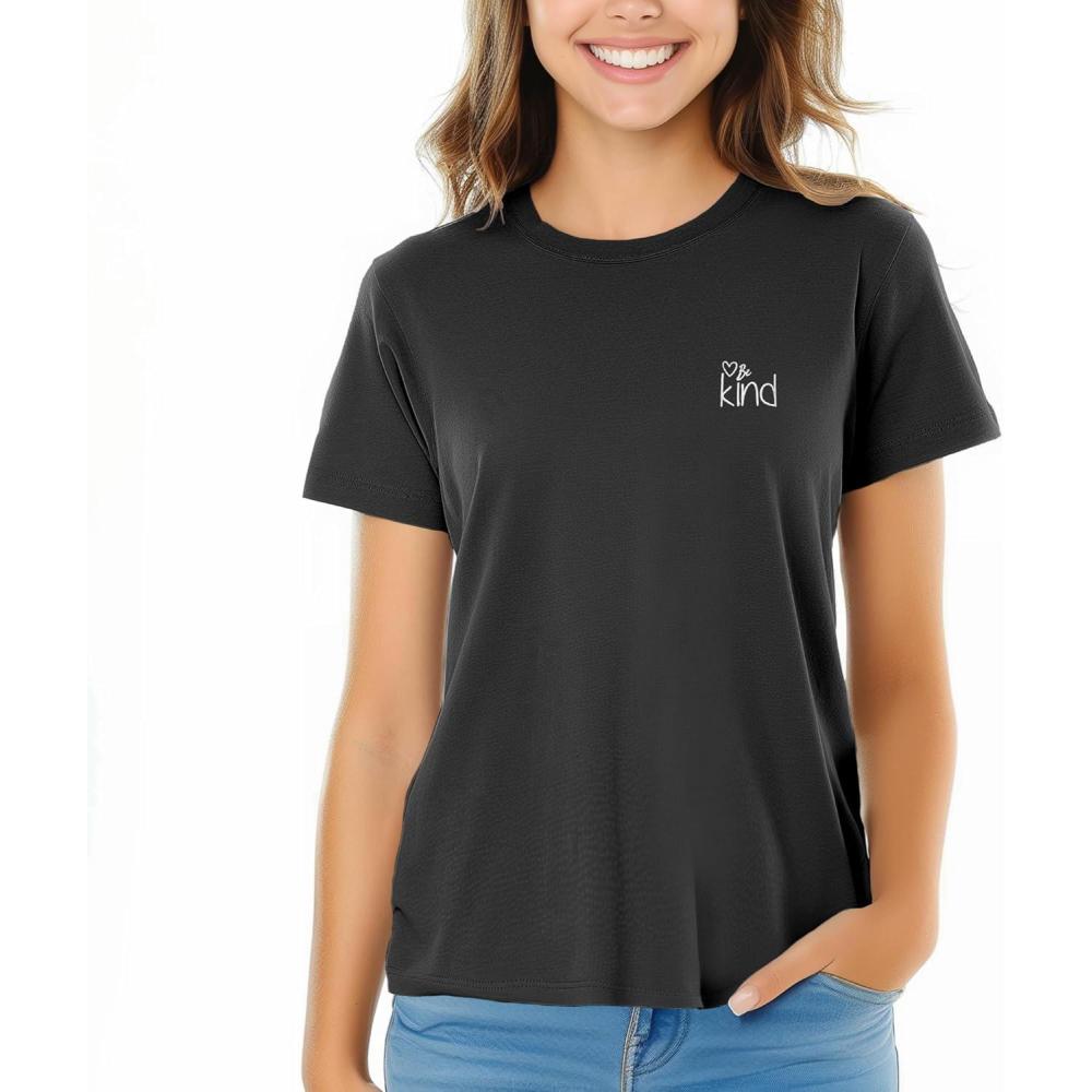 DALIX Be Kind Embroidered Cotton Relaxed Fit Short Sleeve Crewneck Tee Shirt Women(Dark Gray)