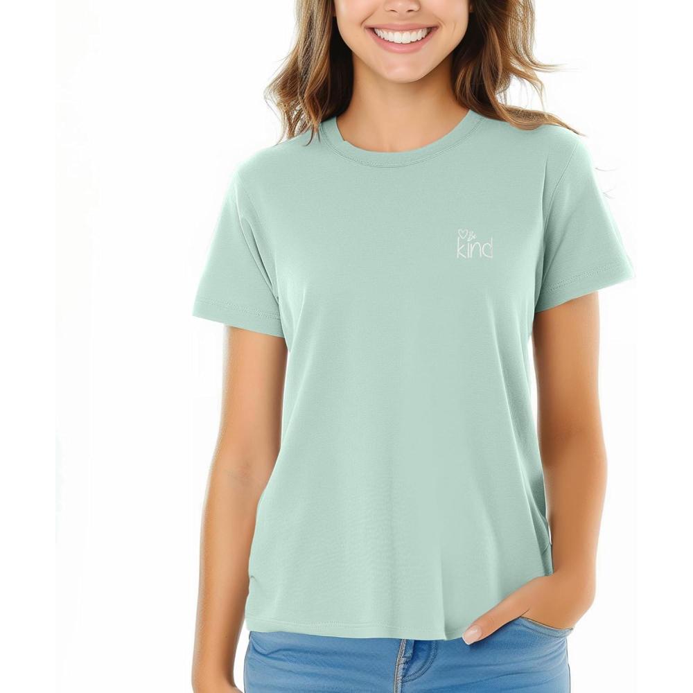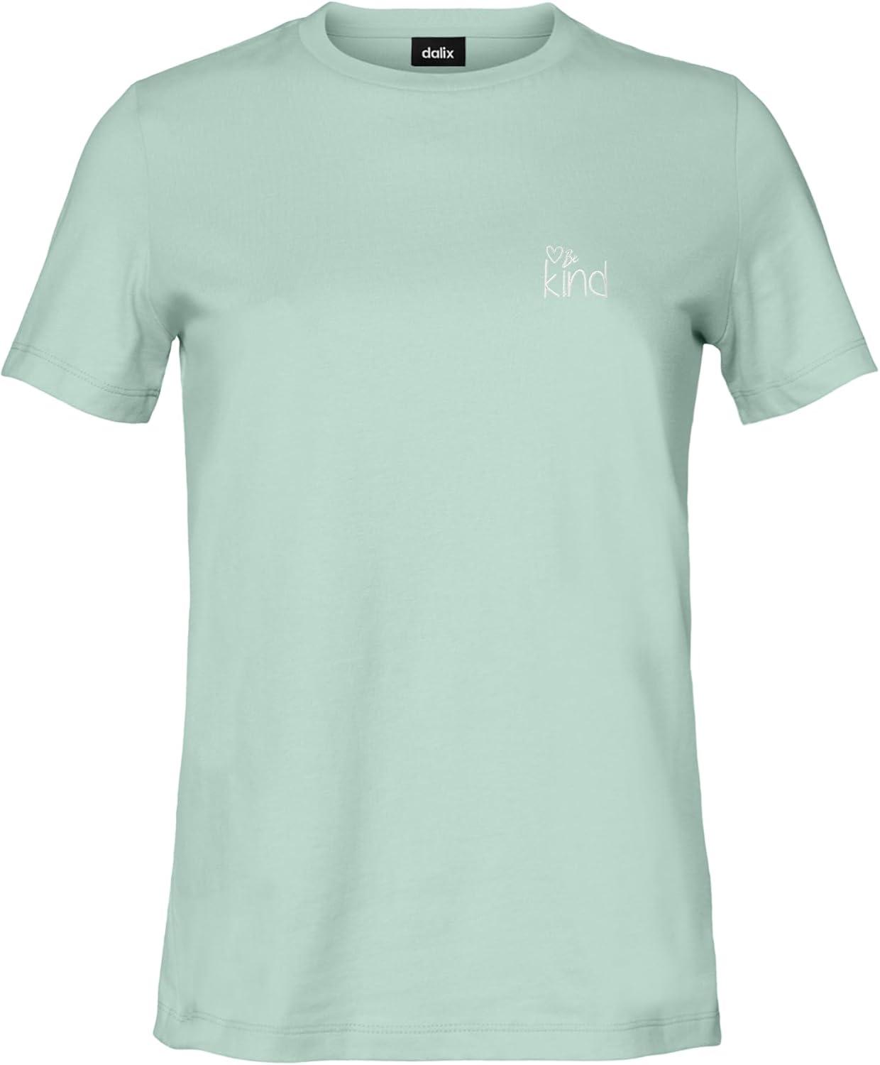 DALIX Be Kind Embroidered Cotton Relaxed Fit Short Sleeve Crewneck Tee Shirt Women(Dusty Blue)