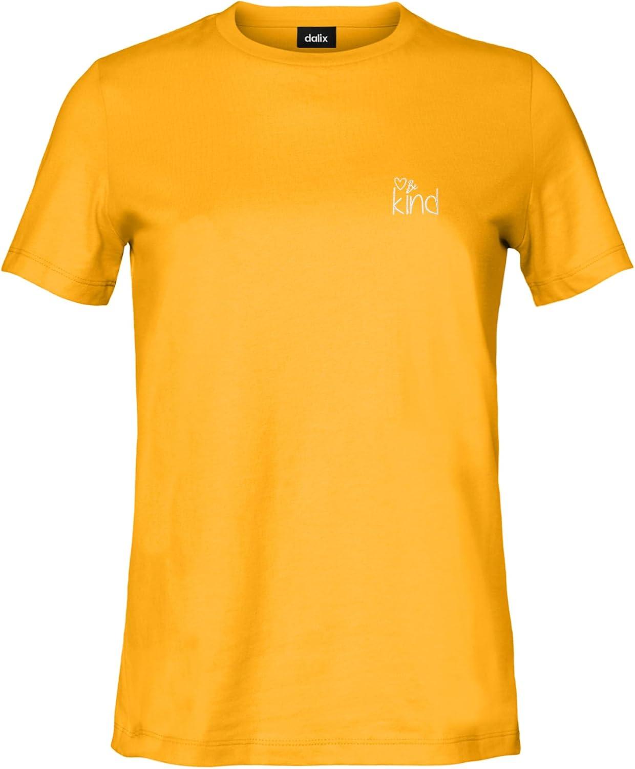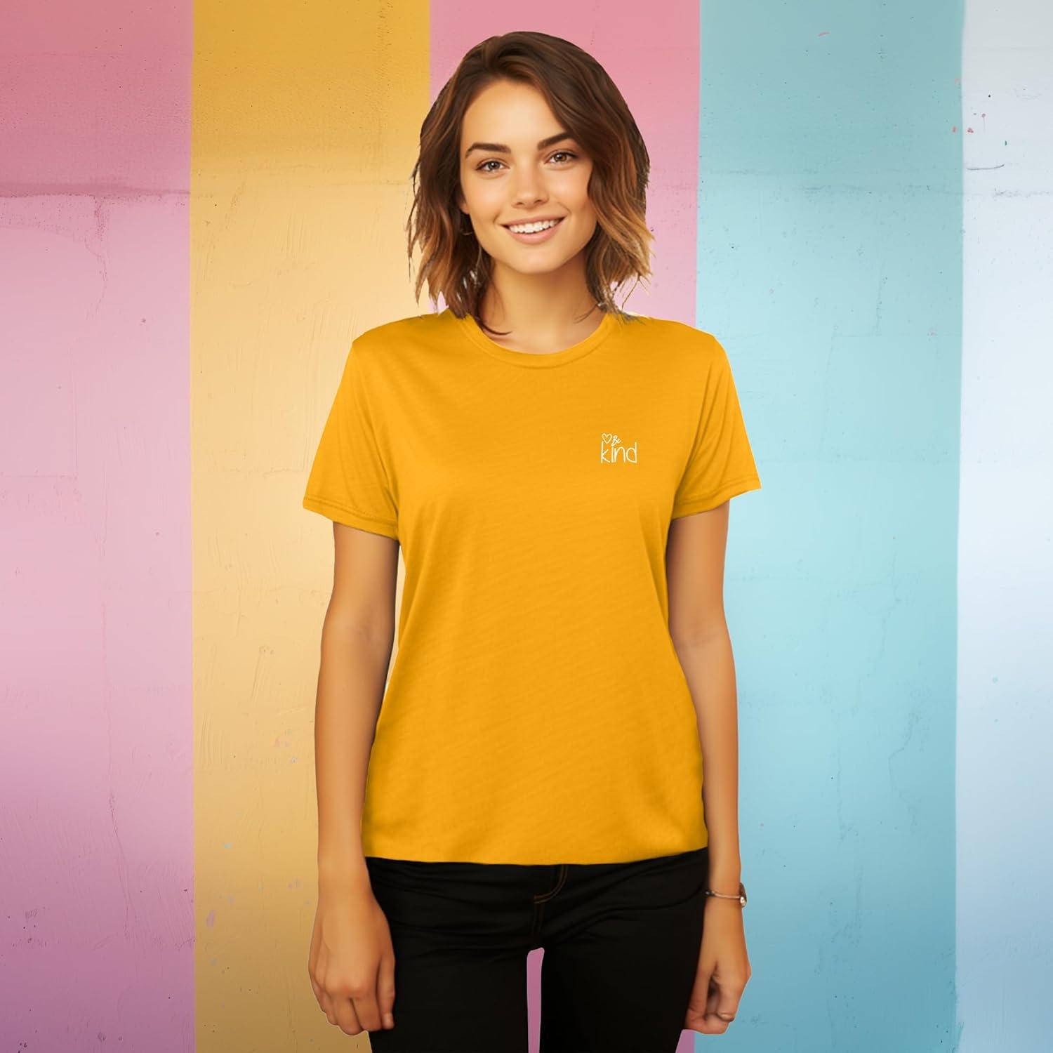 DALIX Be Kind Embroidered Cotton Relaxed Fit Short Sleeve Crewneck Tee Shirt Women(Gold)