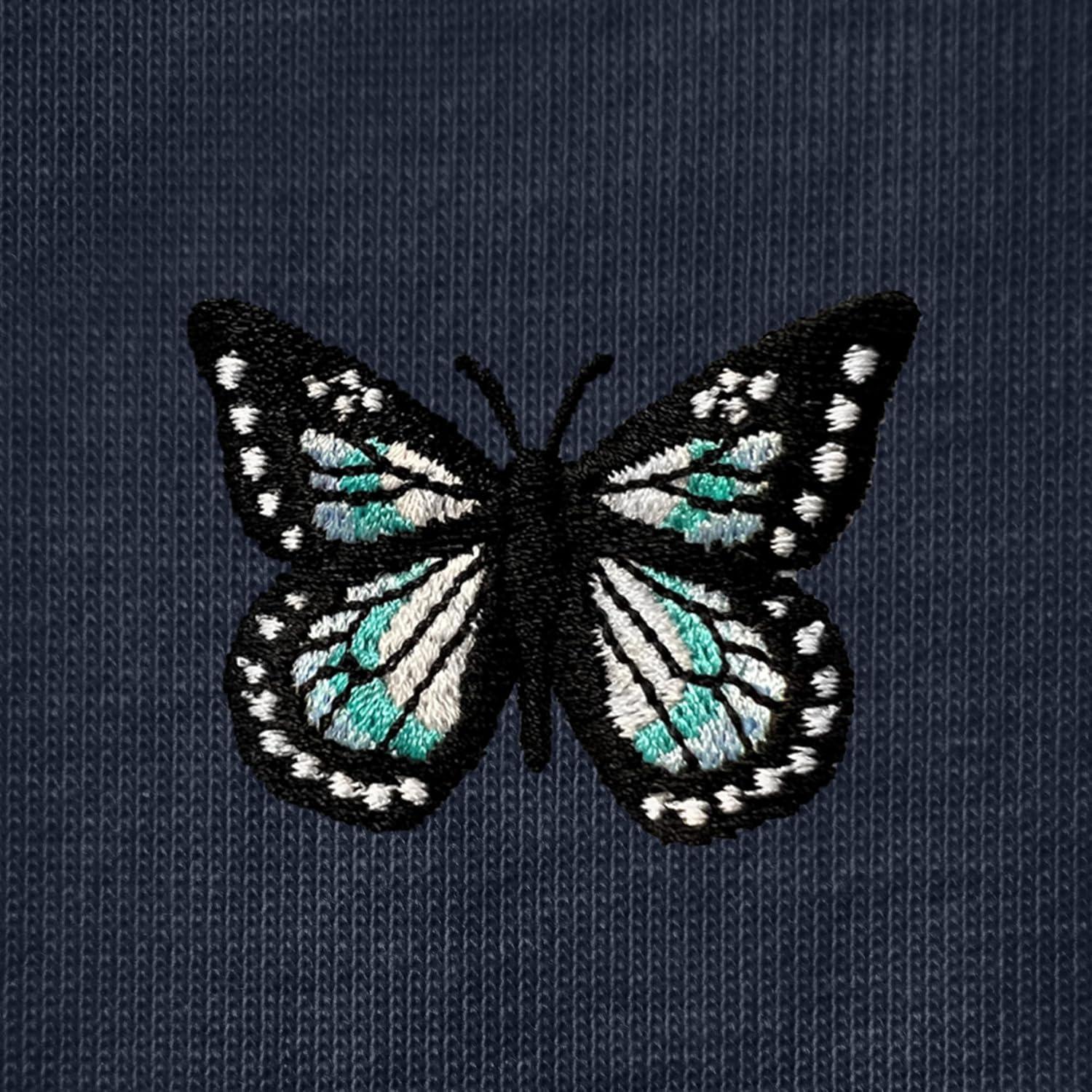 DALIX Butterfly Embroidered Cotton Relaxed Fit Short Sleeve Crewneck Tee Shirt Women(Navy Blue)
