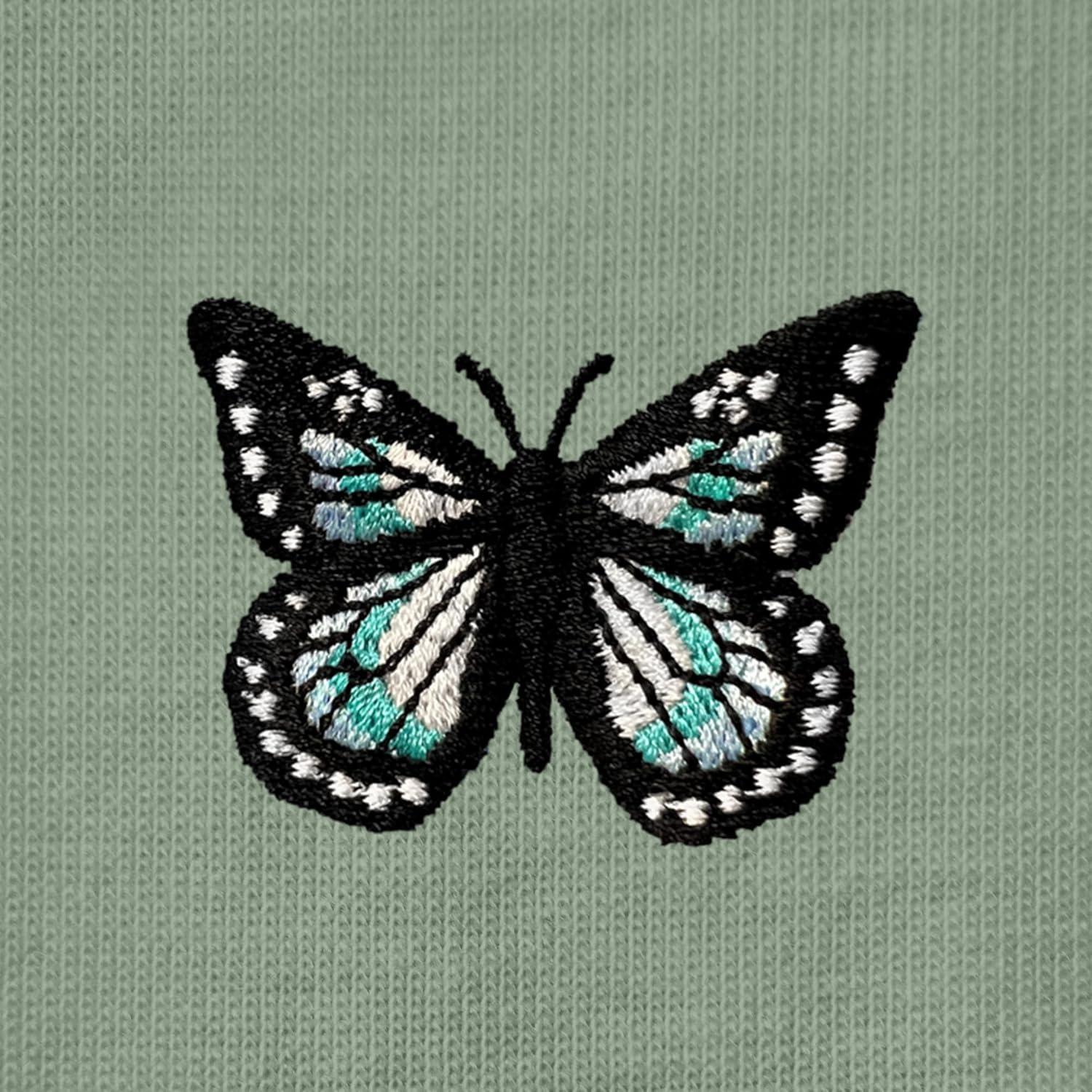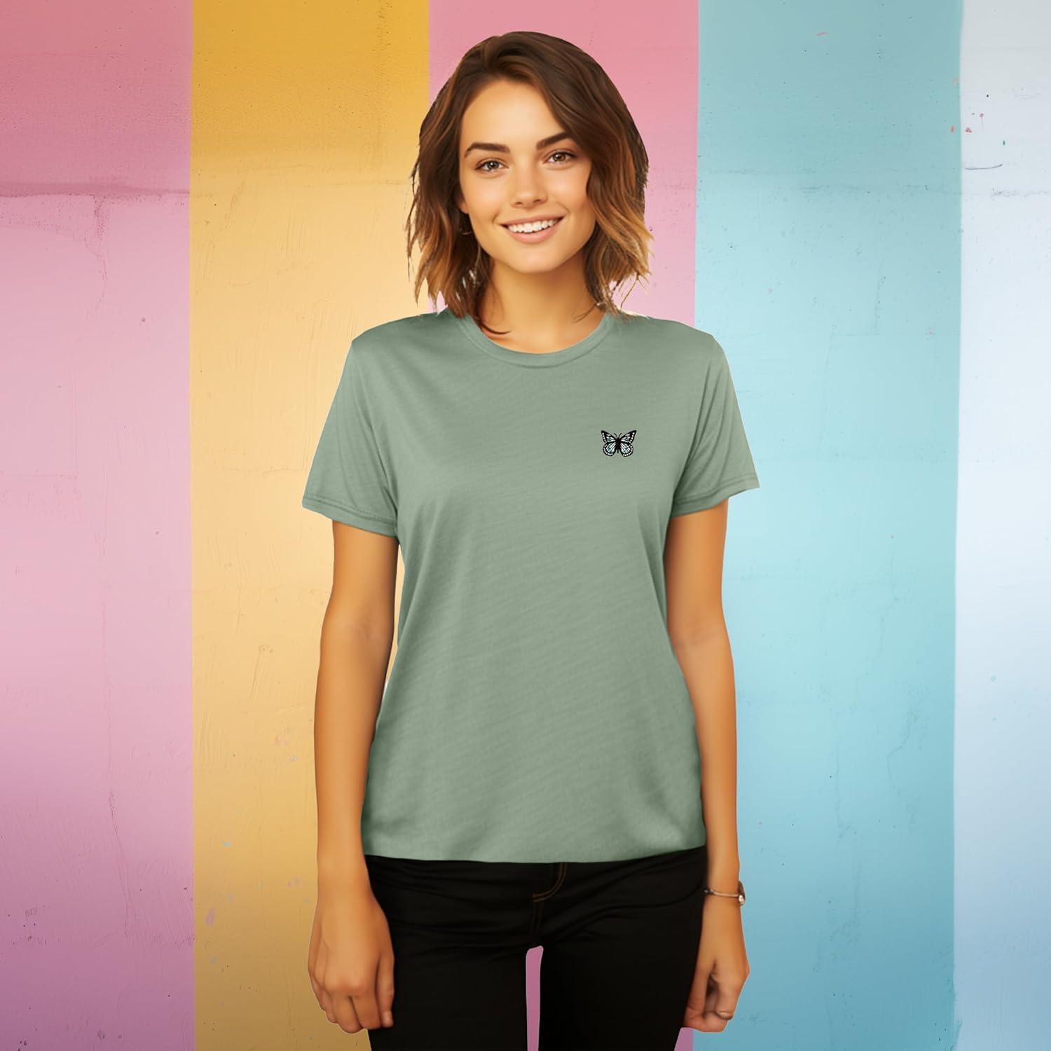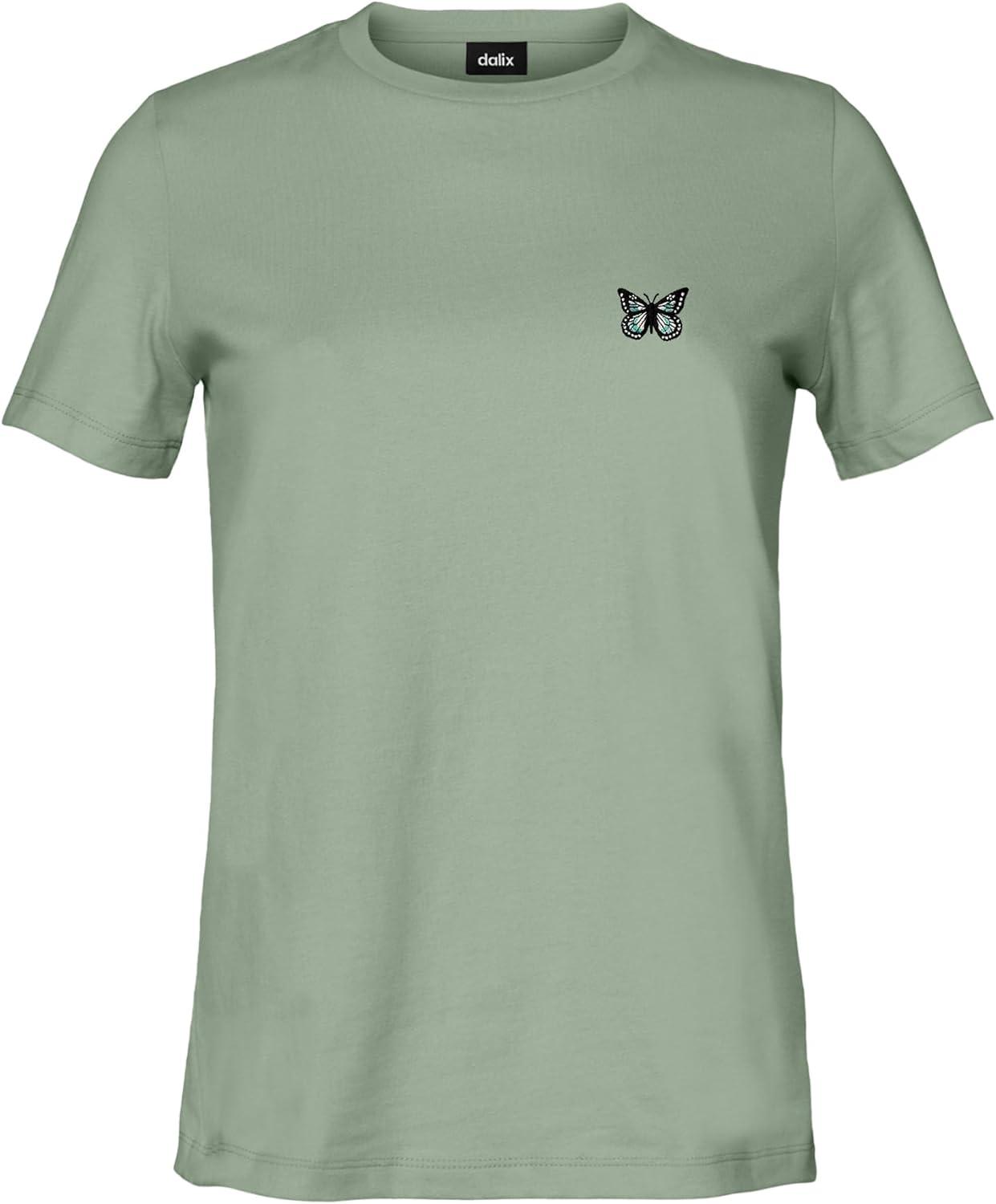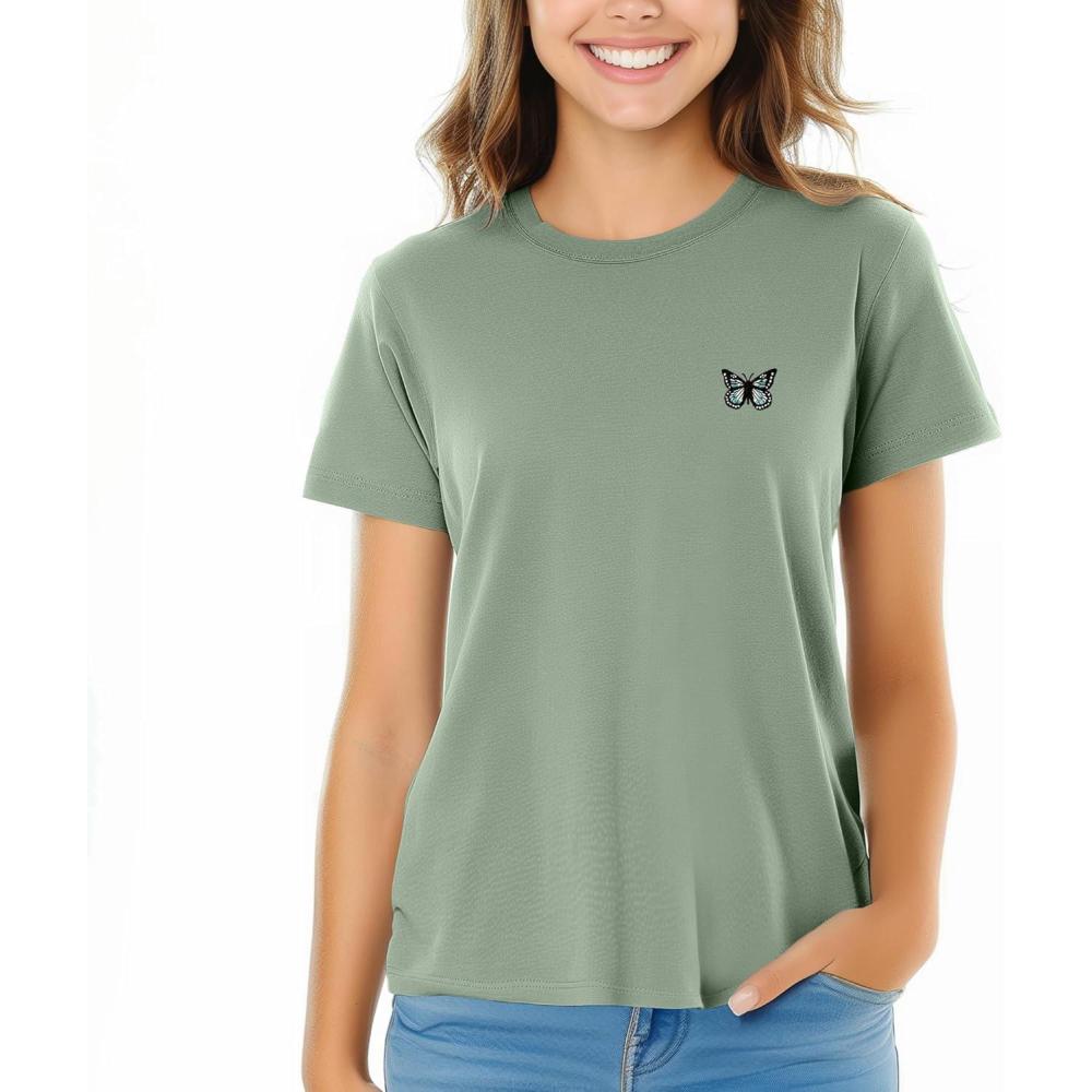DALIX Butterfly Embroidered Cotton Relaxed Fit Short Sleeve Crewneck Tee Shirt Women(Sage)