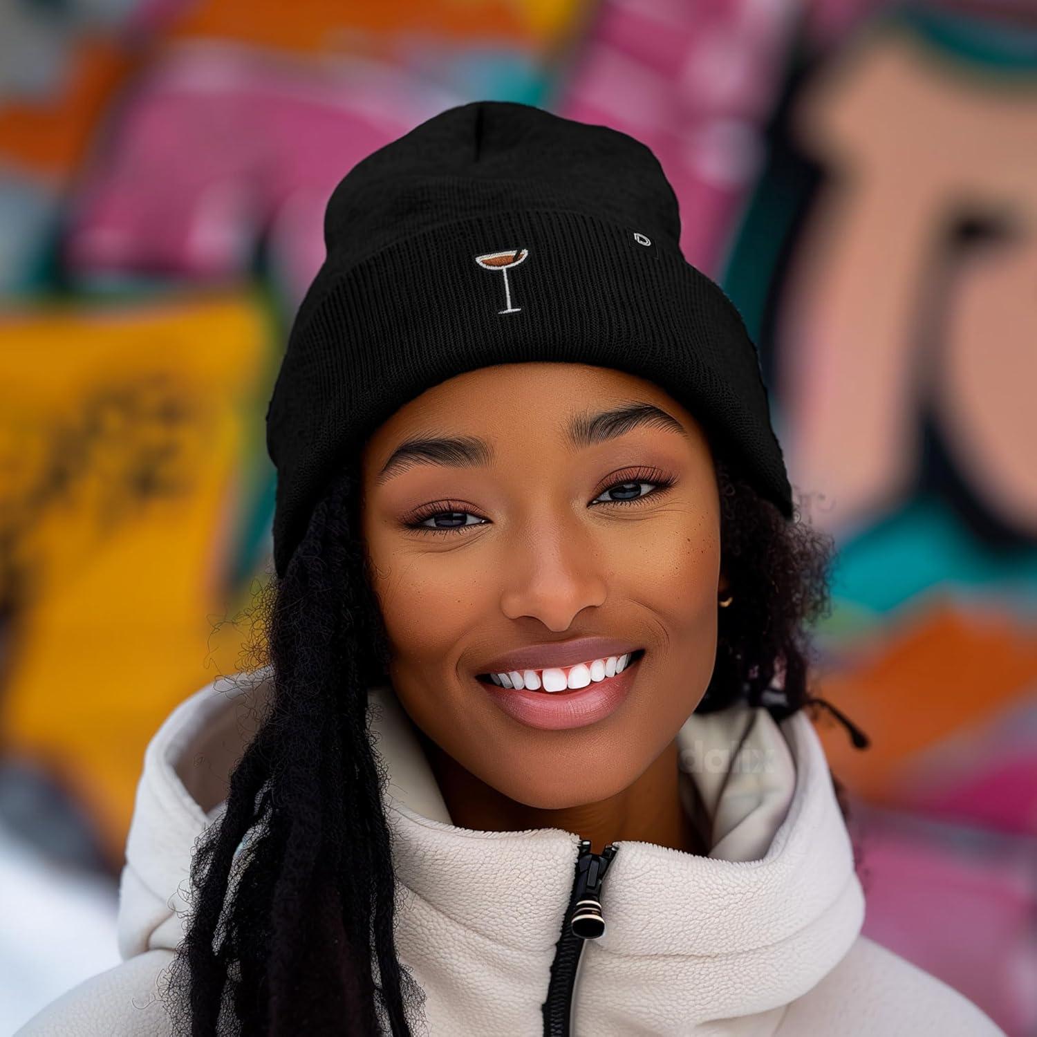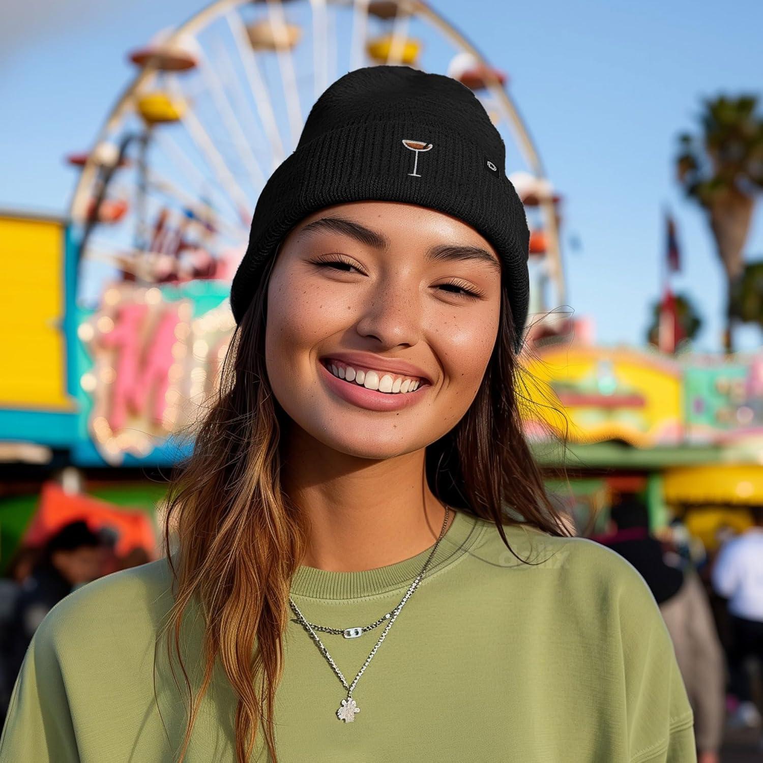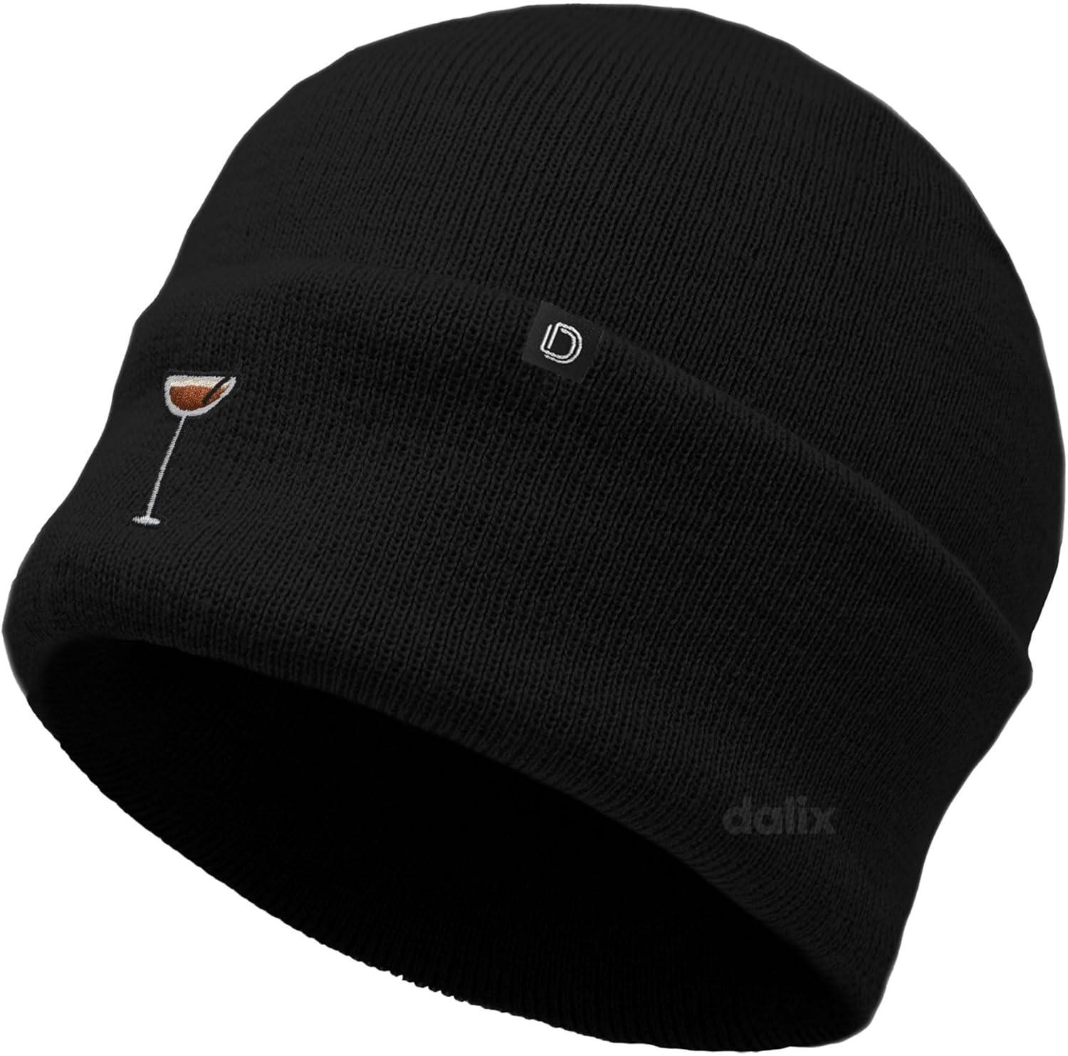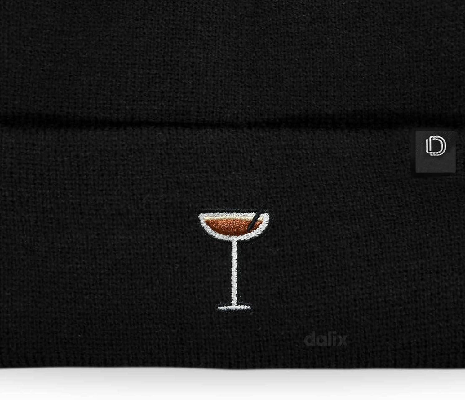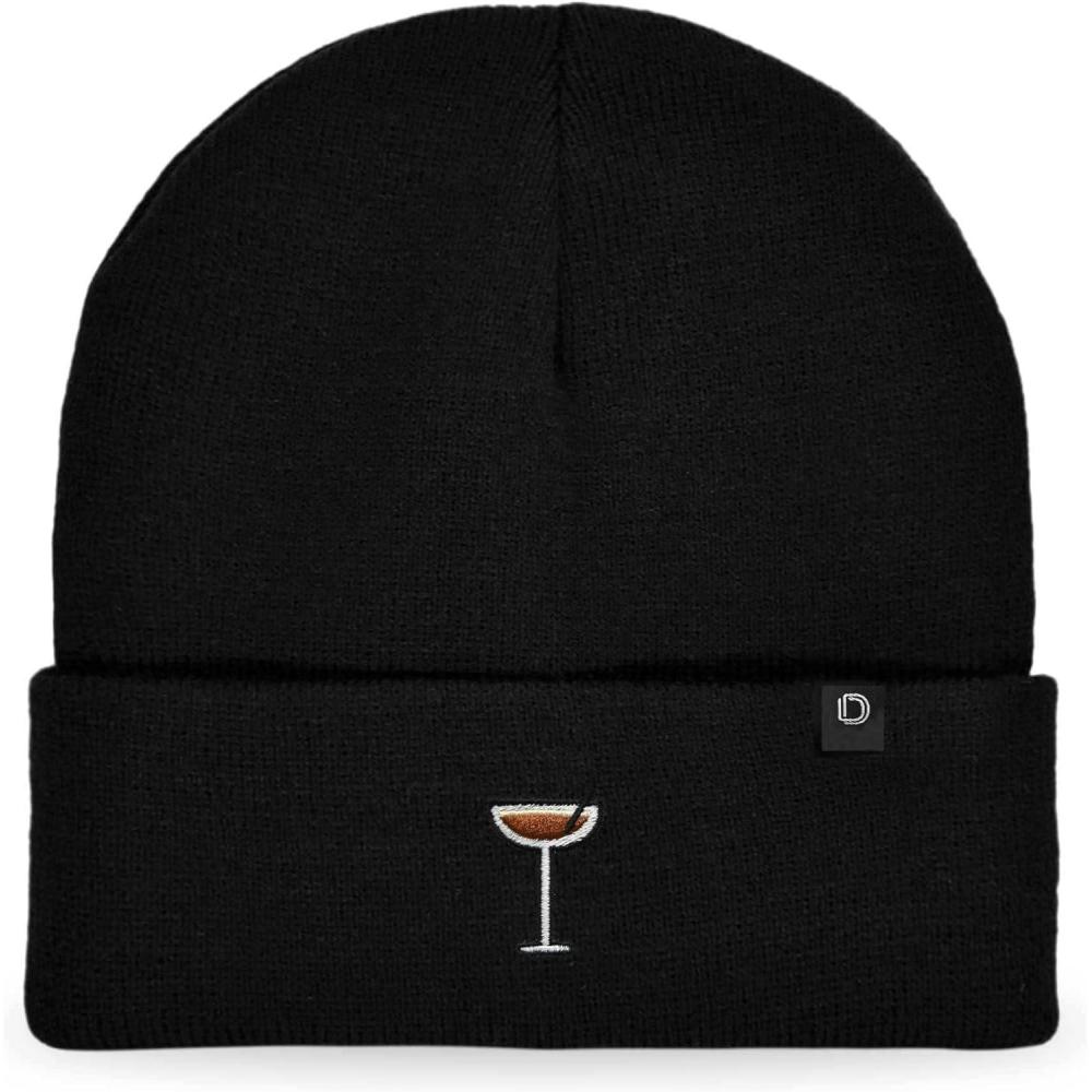 DALIX Coffee Martini Embroidered Beanie Food Warm Winter Knit Hat Women(Black)