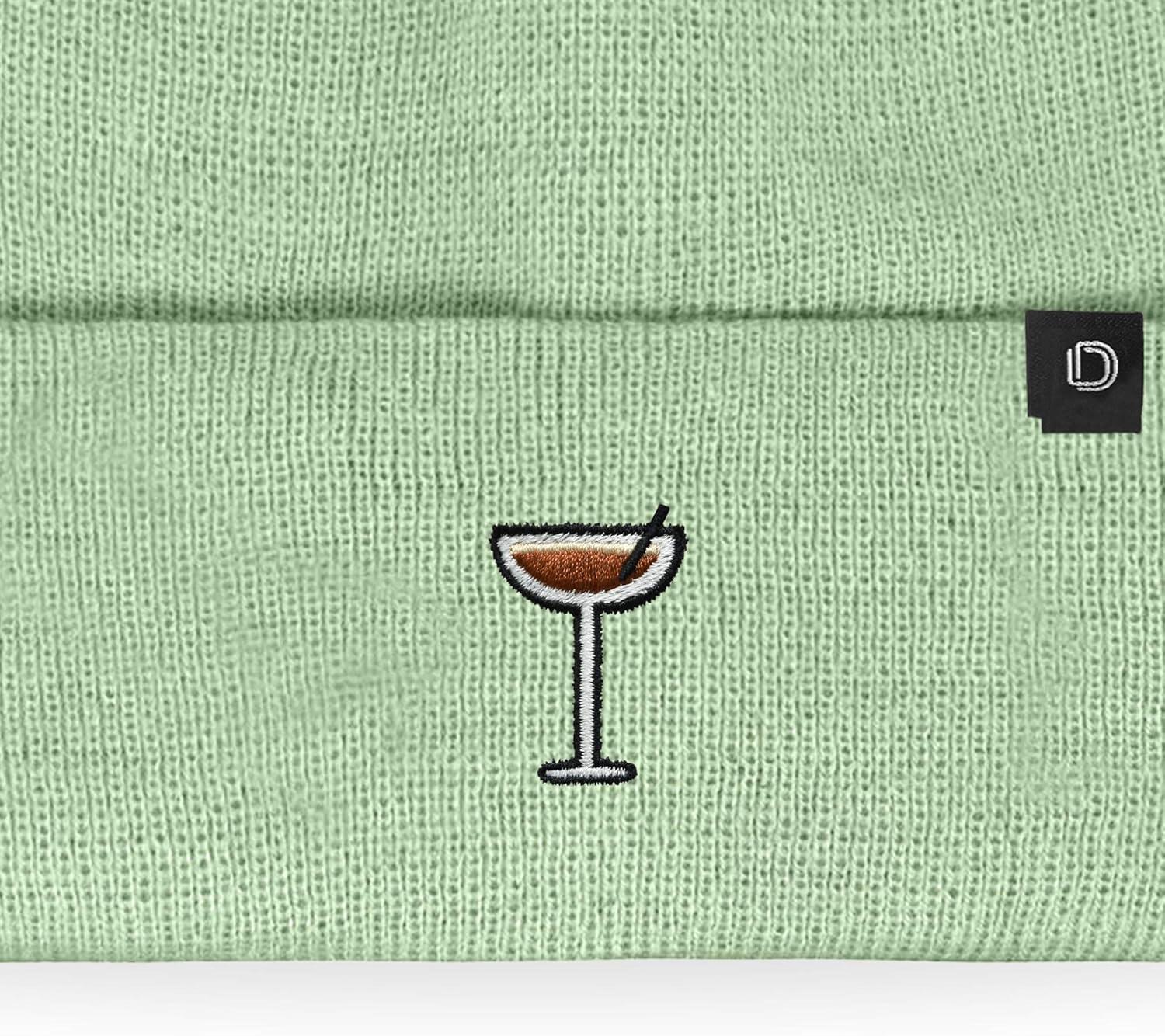 DALIX Coffee Martini Embroidered Beanie Food Warm Winter Knit Hat Women(Light Green)