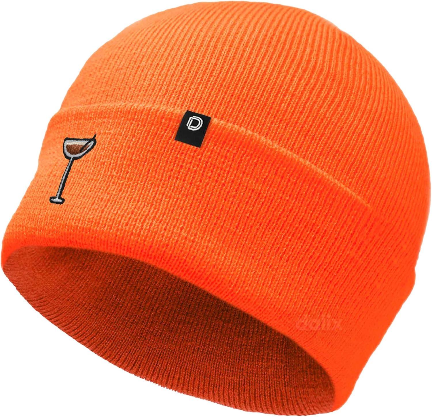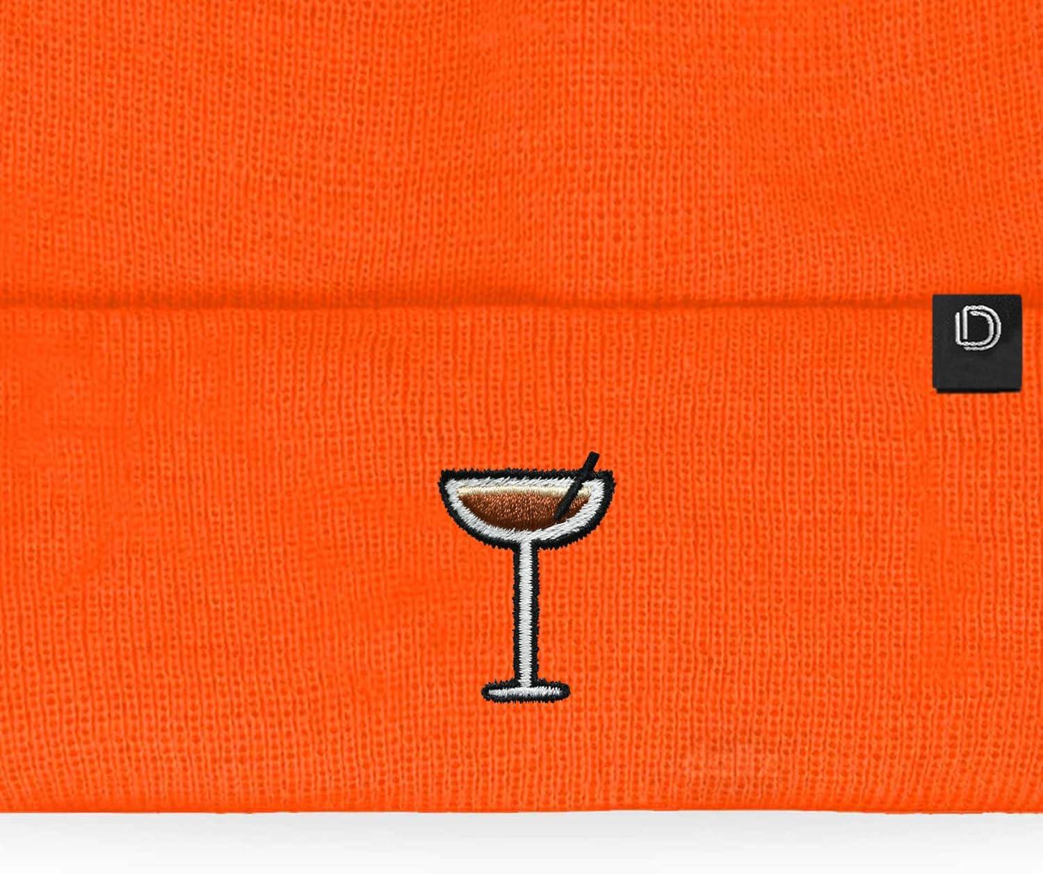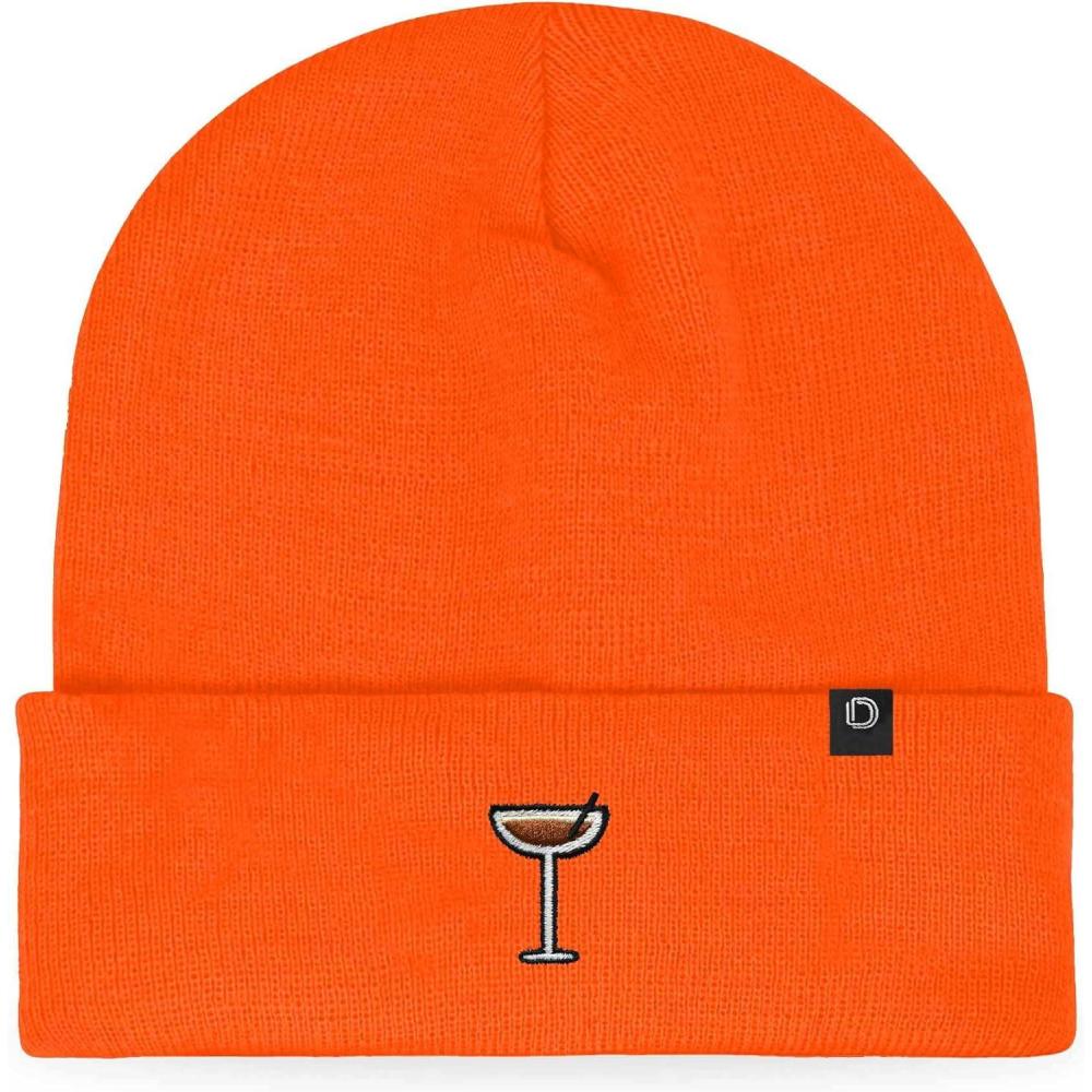 DALIX Coffee Martini Embroidered Beanie Food Warm Winter Knit Hat Women(Neon Orange)