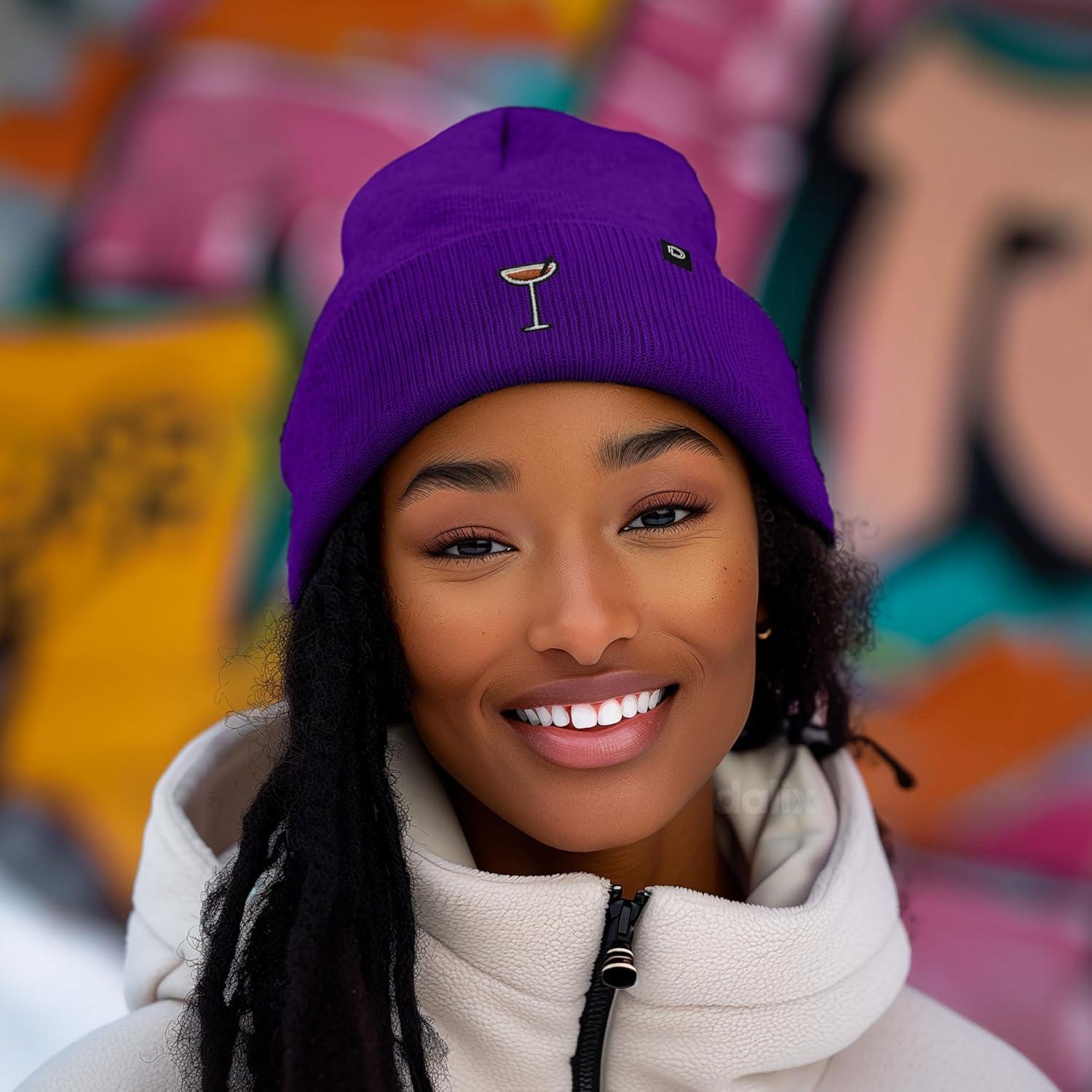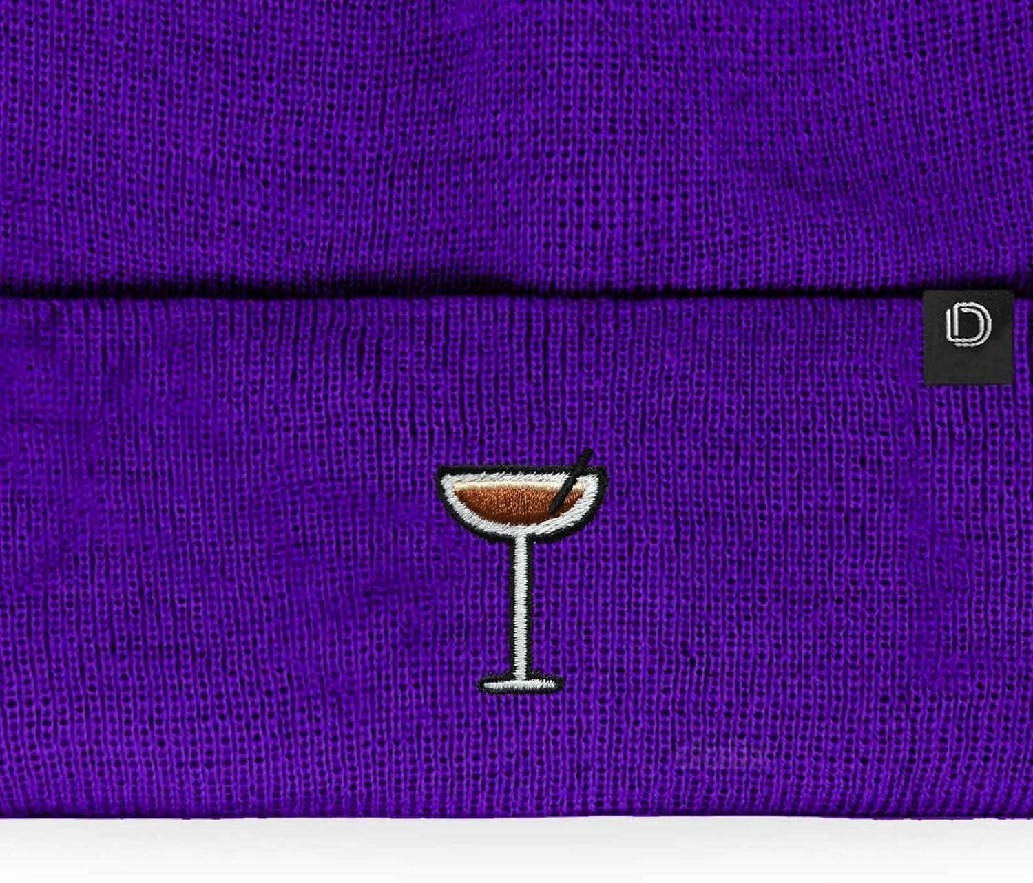 DALIX Coffee Martini Embroidered Beanie Food Warm Winter Knit Hat Women(Purple)