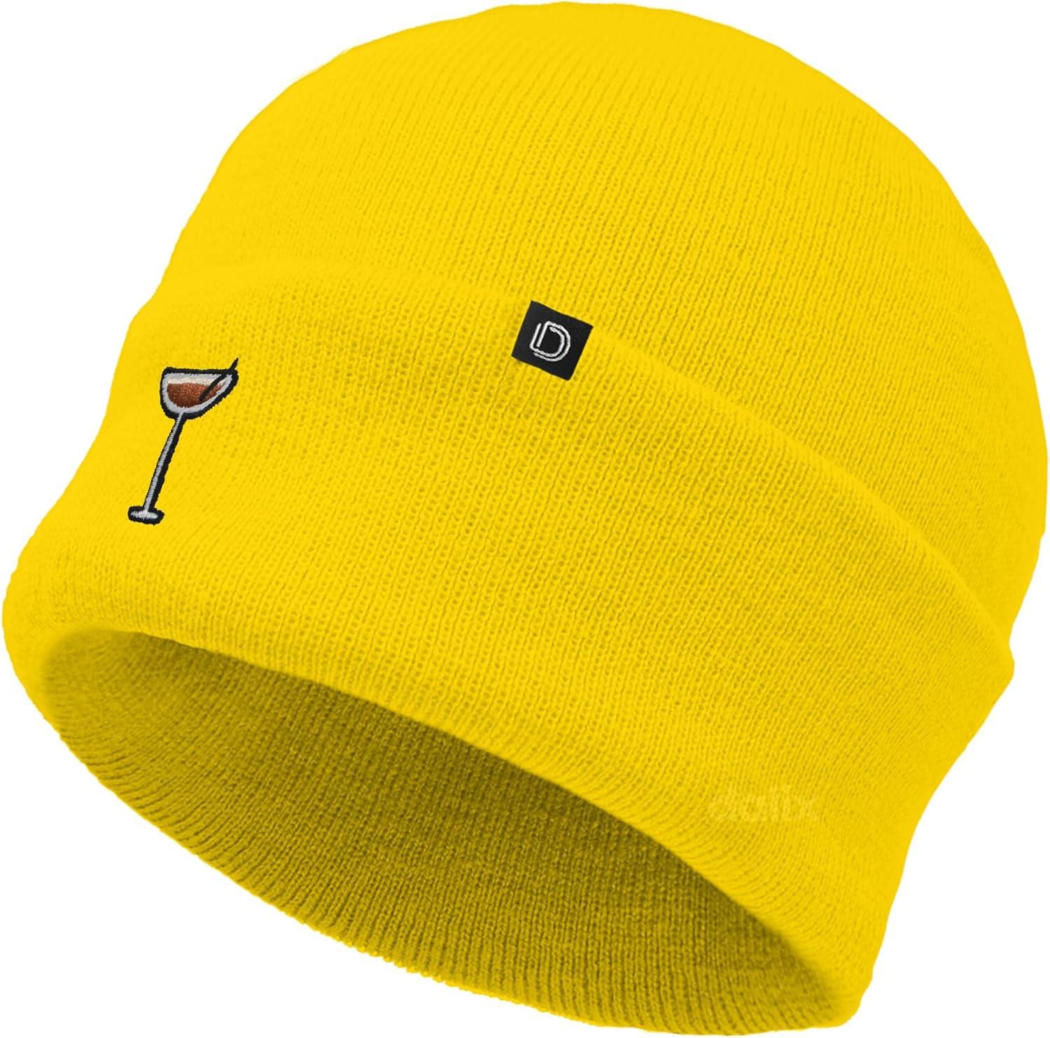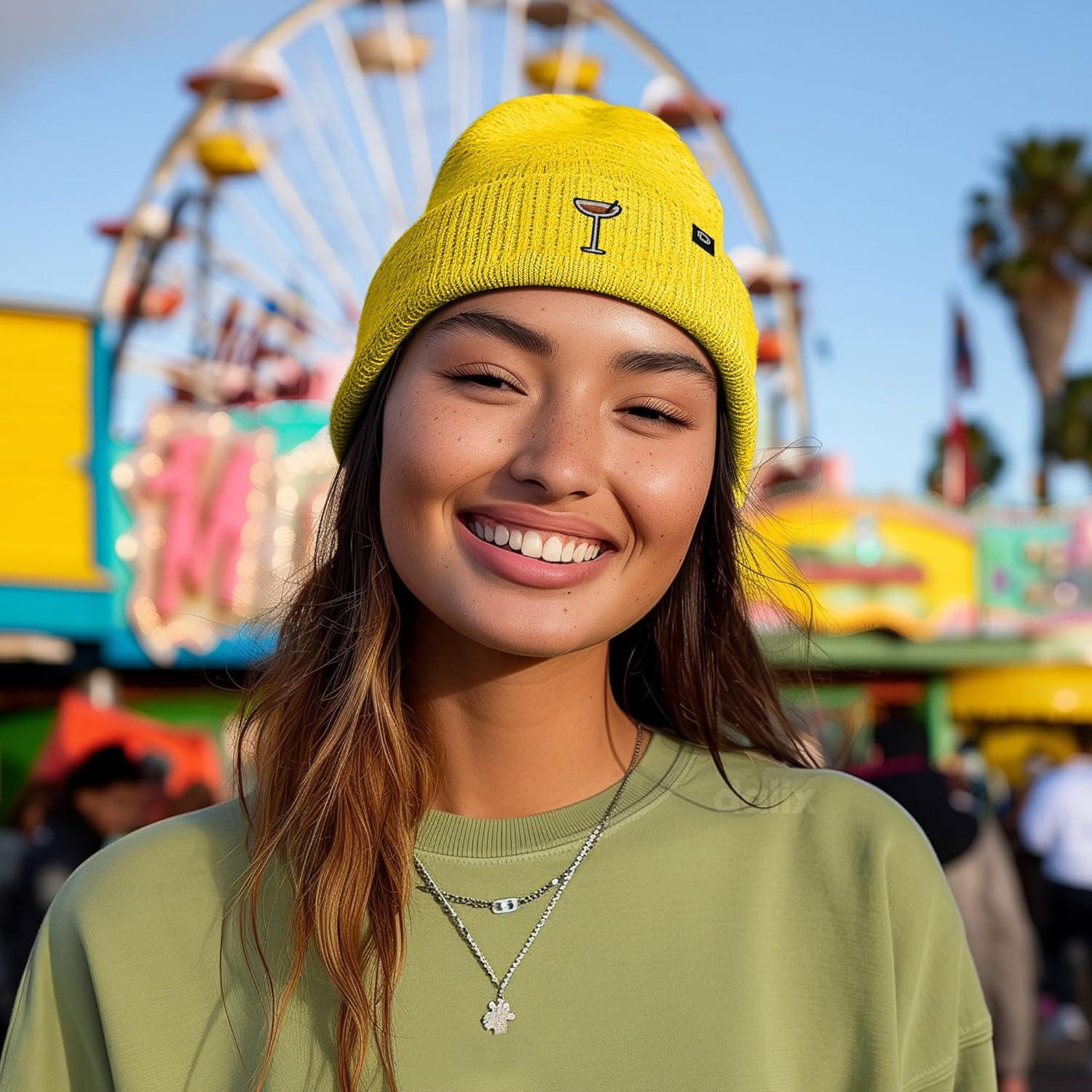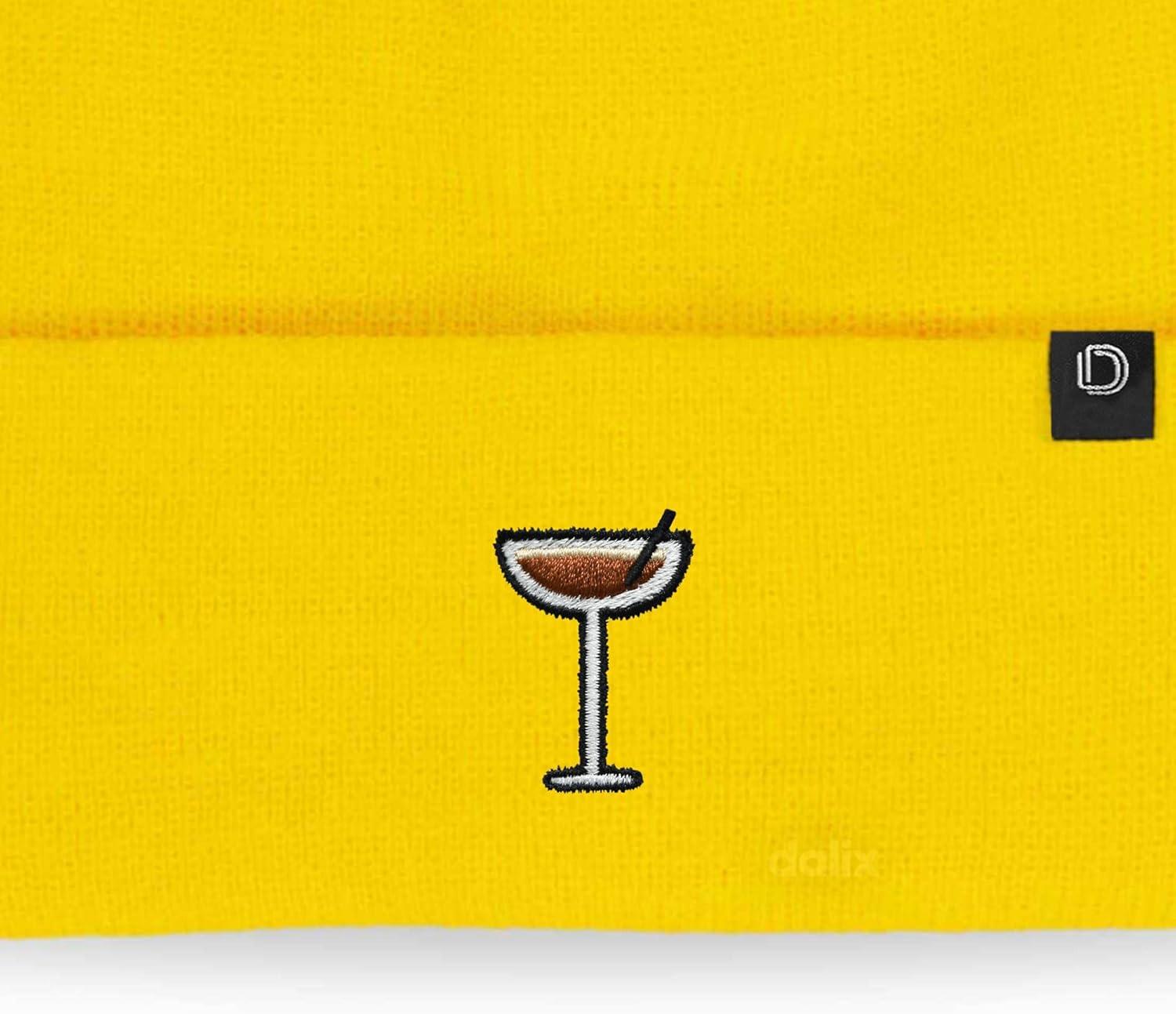 DALIX Coffee Martini Embroidered Beanie Food Warm Winter Knit Hat Women(Yellow)