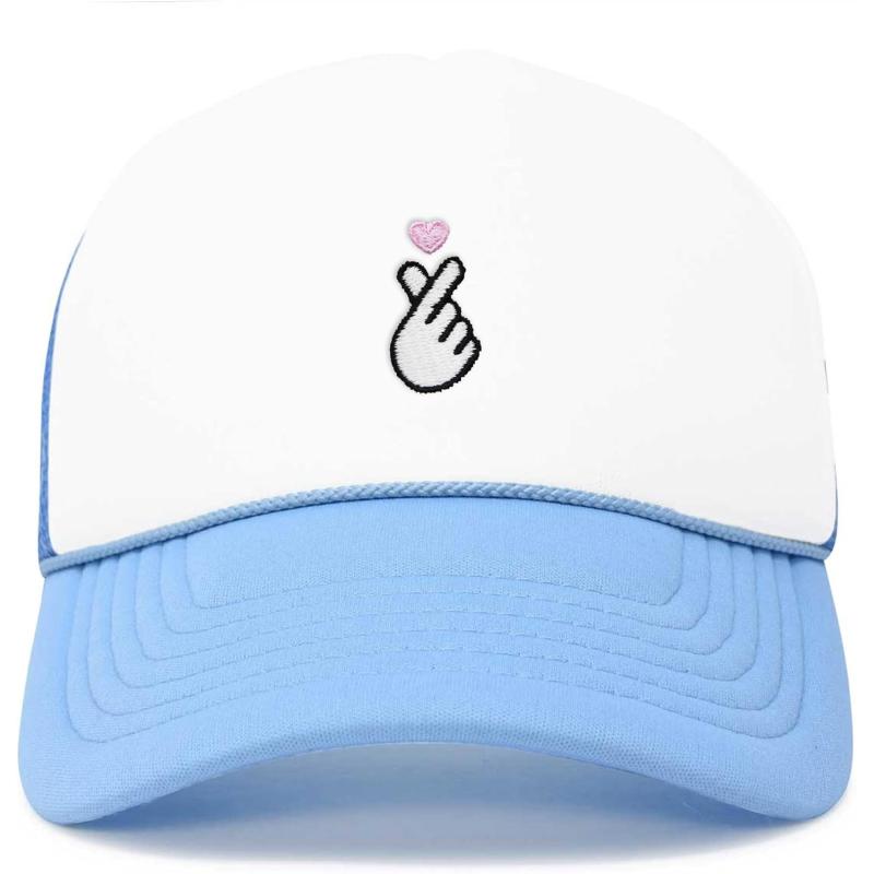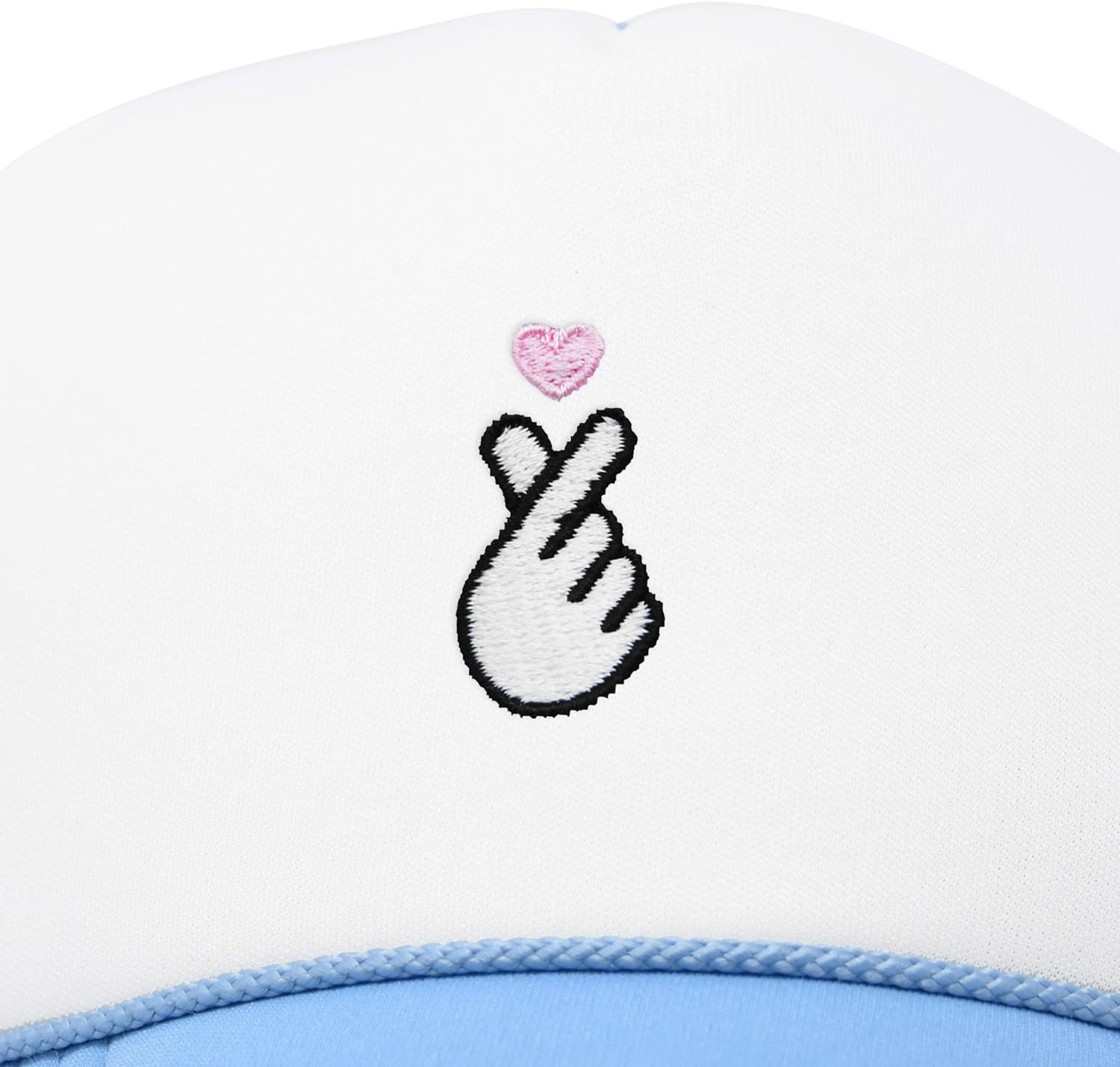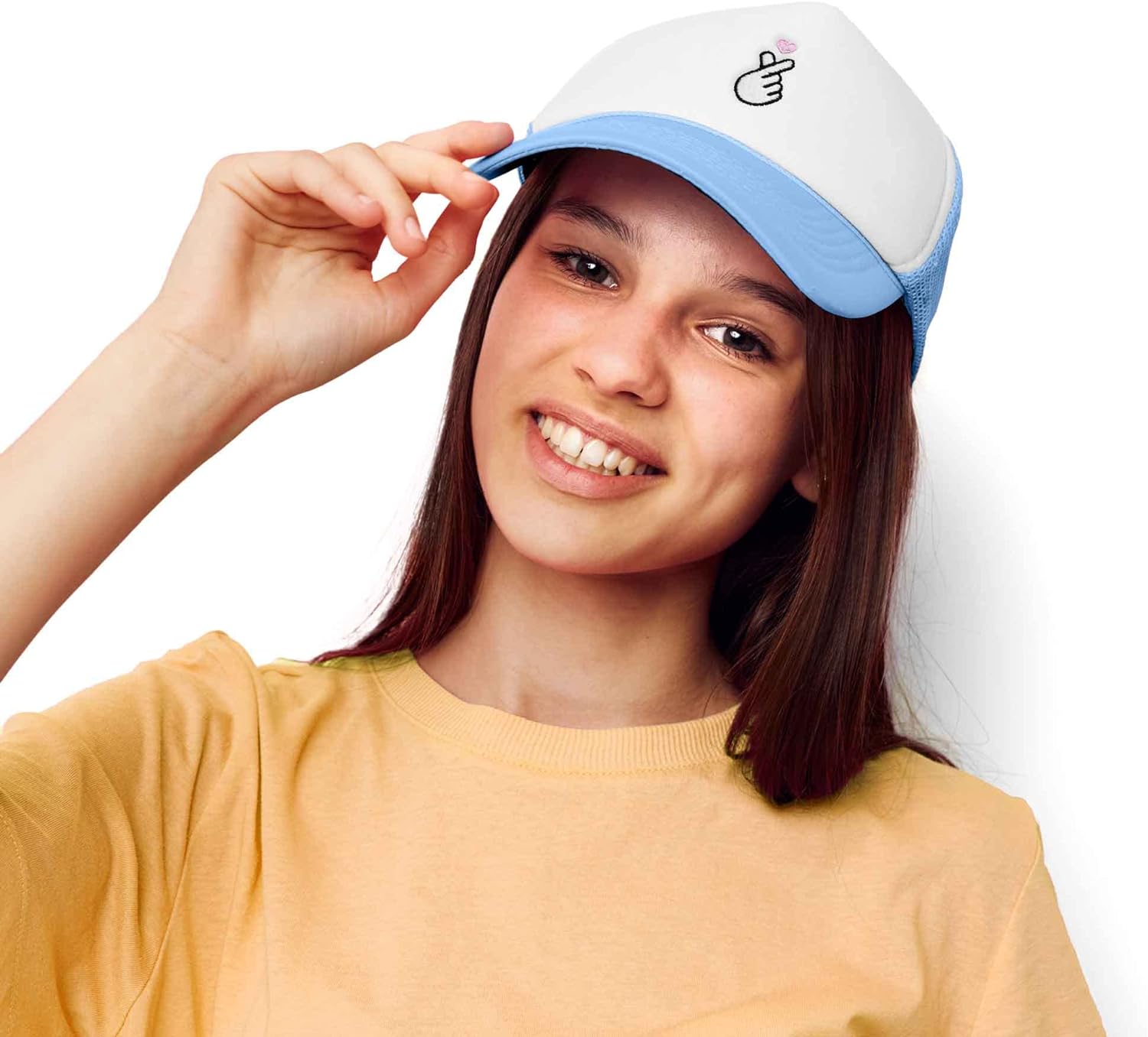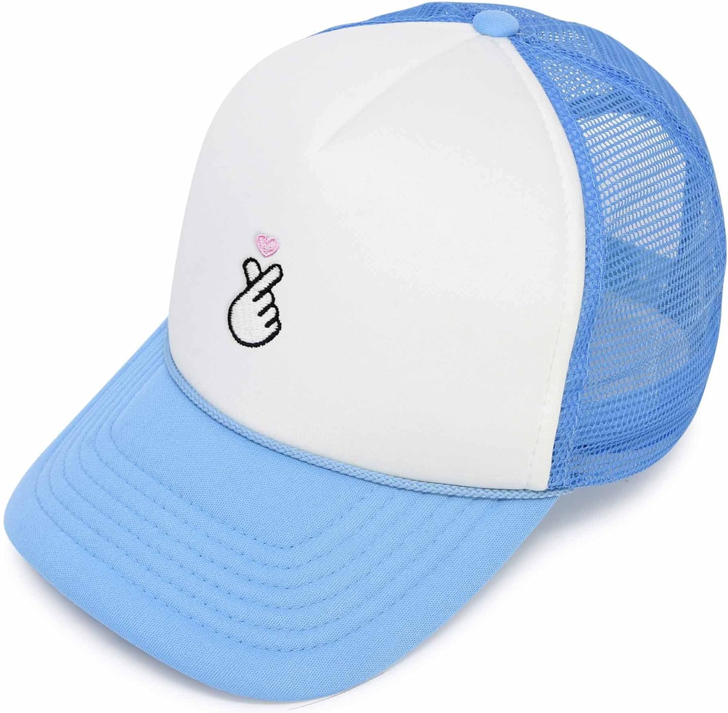 DALIX Embroidered Snap Heart Trucker Cap Hat Women(Light Blue White)