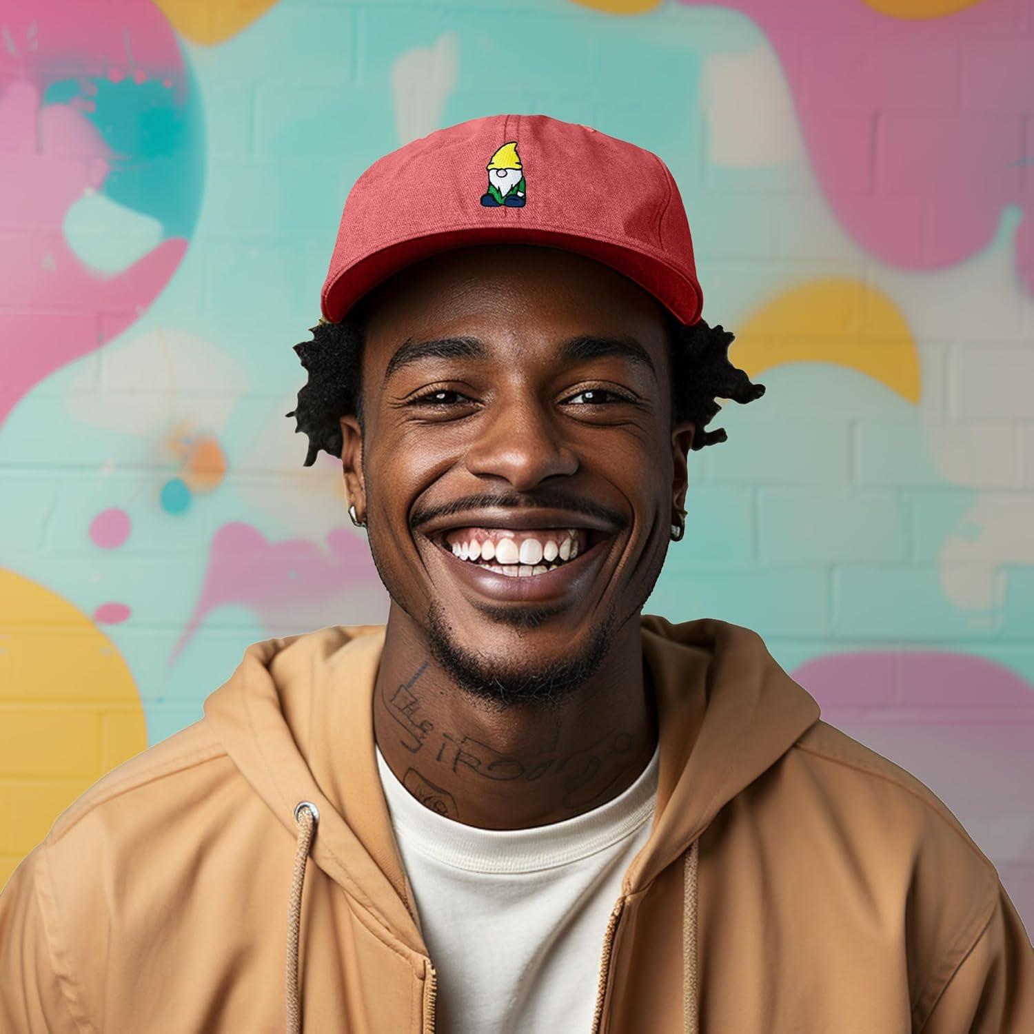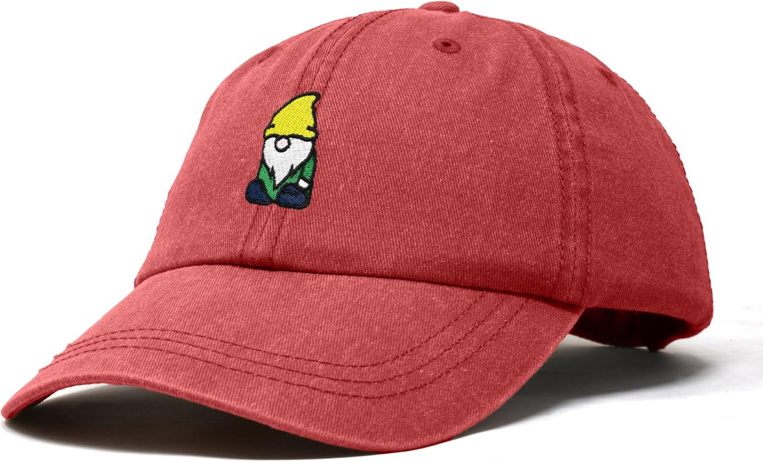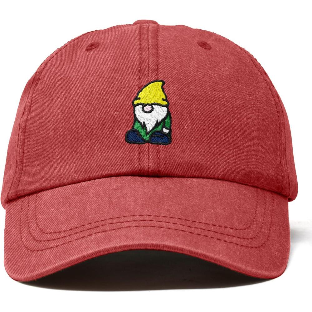 DALIX Gnome Embroidered Cotton Baseball Cap Adjustable Dad Hat Mens(Washed Red)