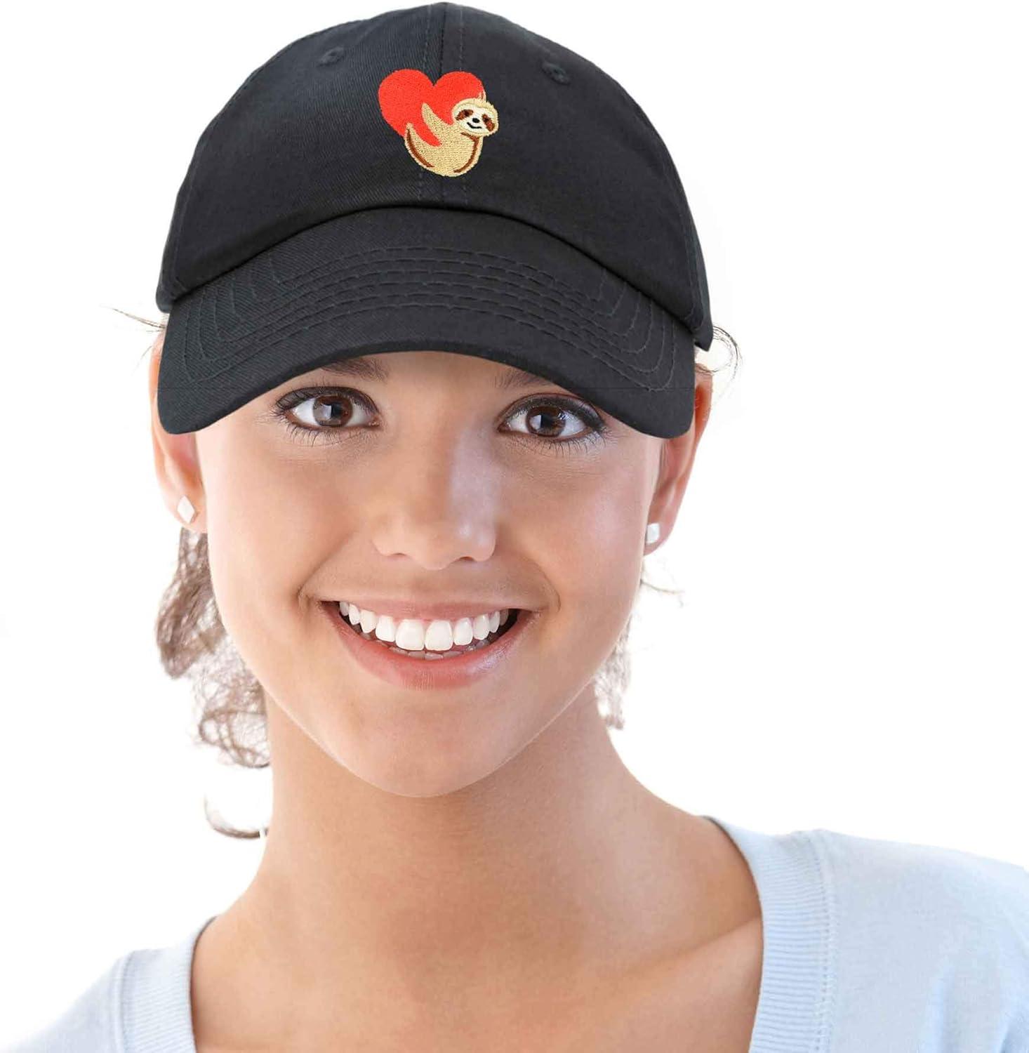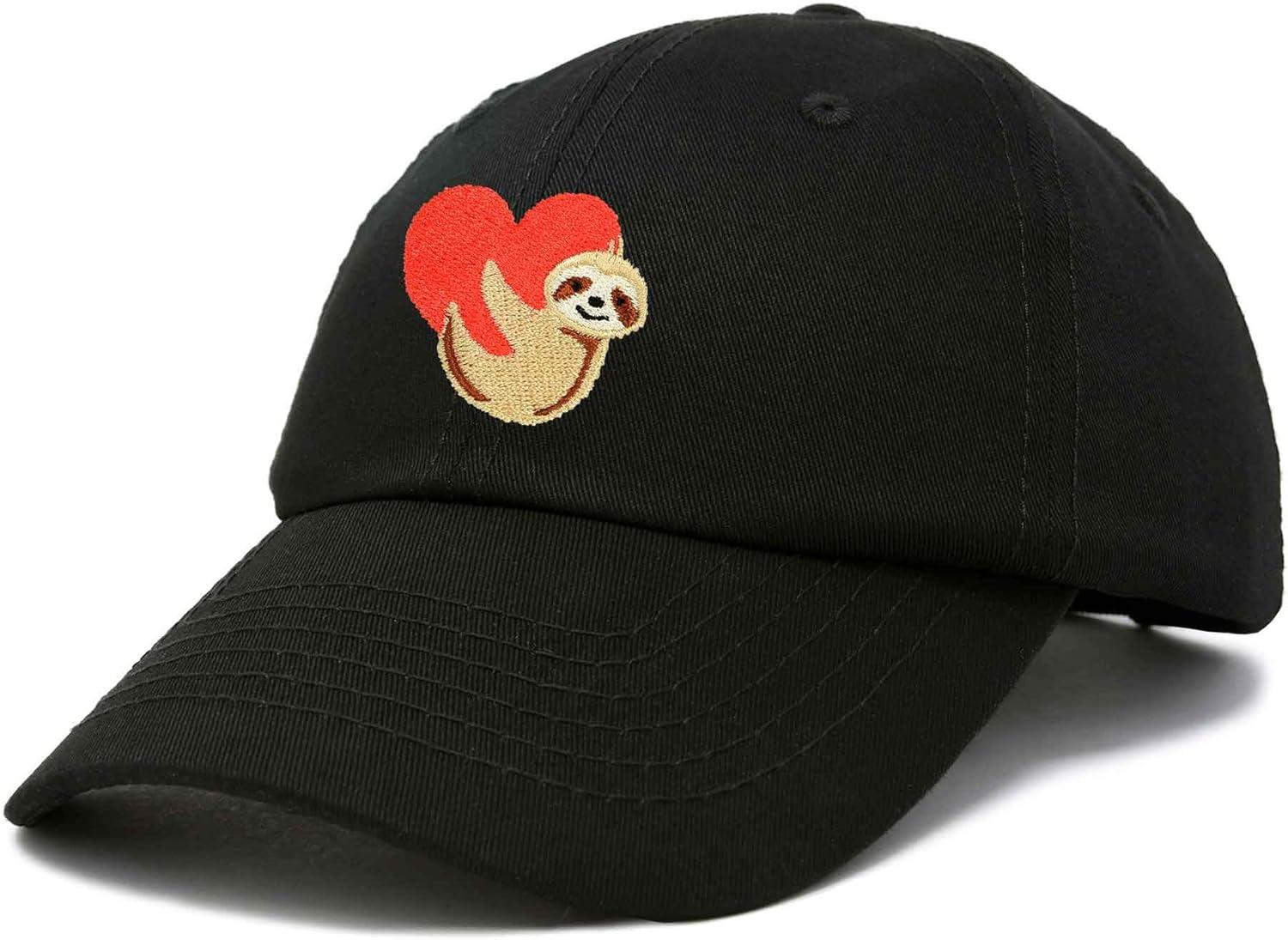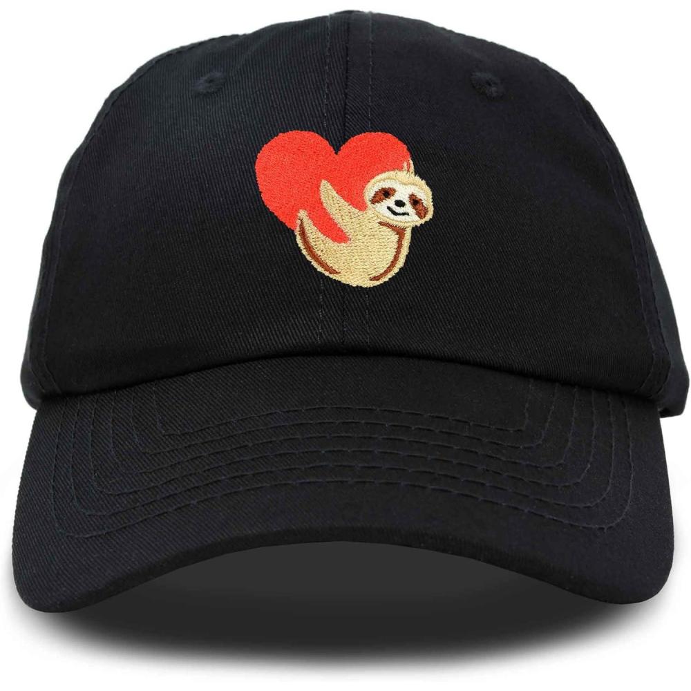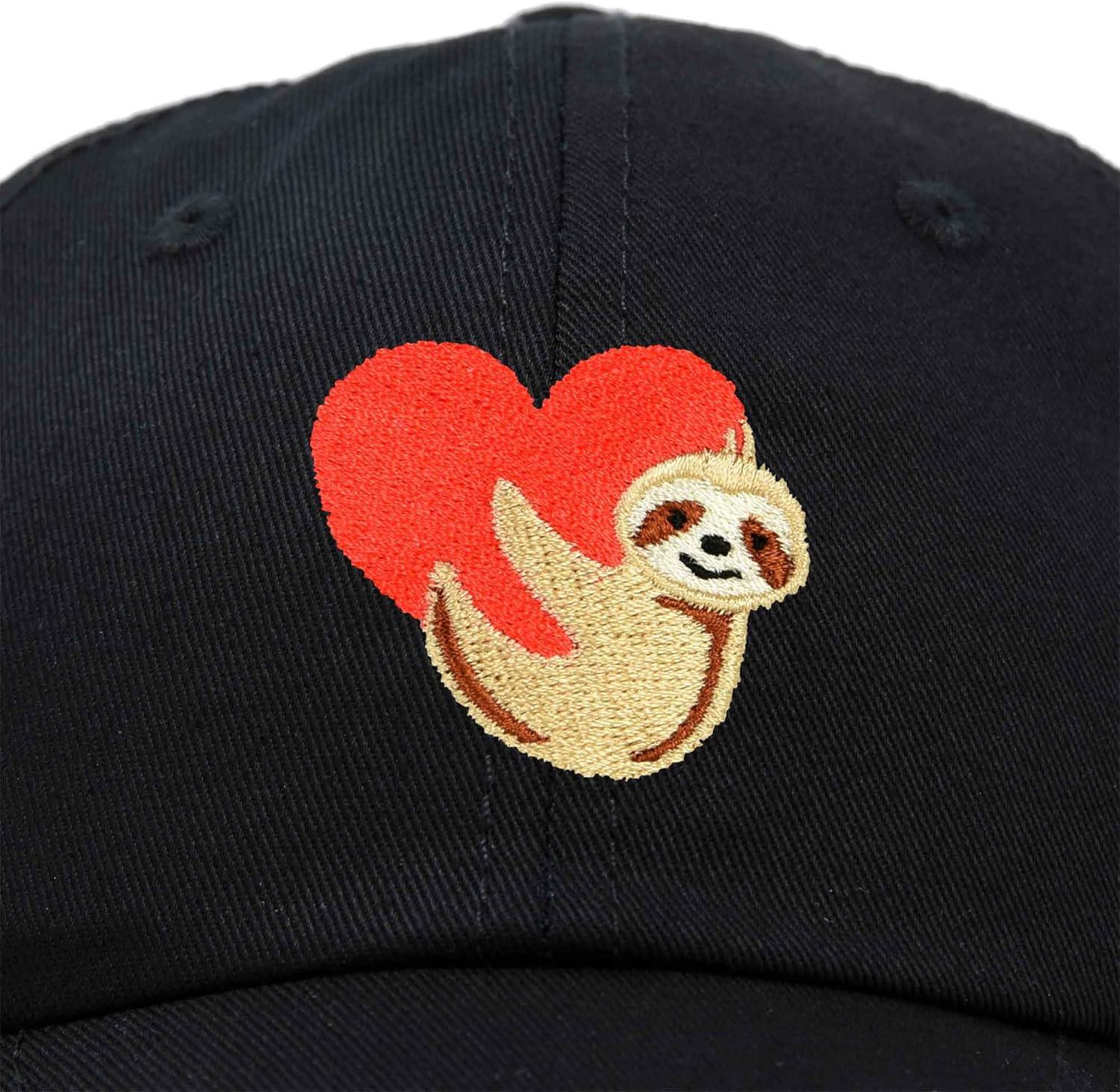 DALIX Heart Cute Sloth Hat Womens Embroidered Baseball Cap(Black)