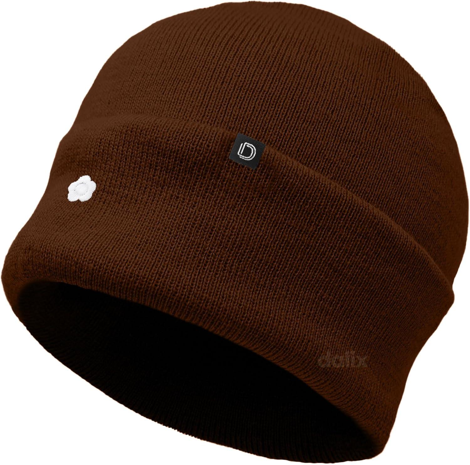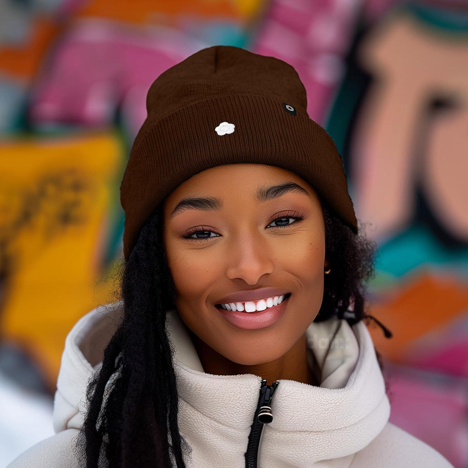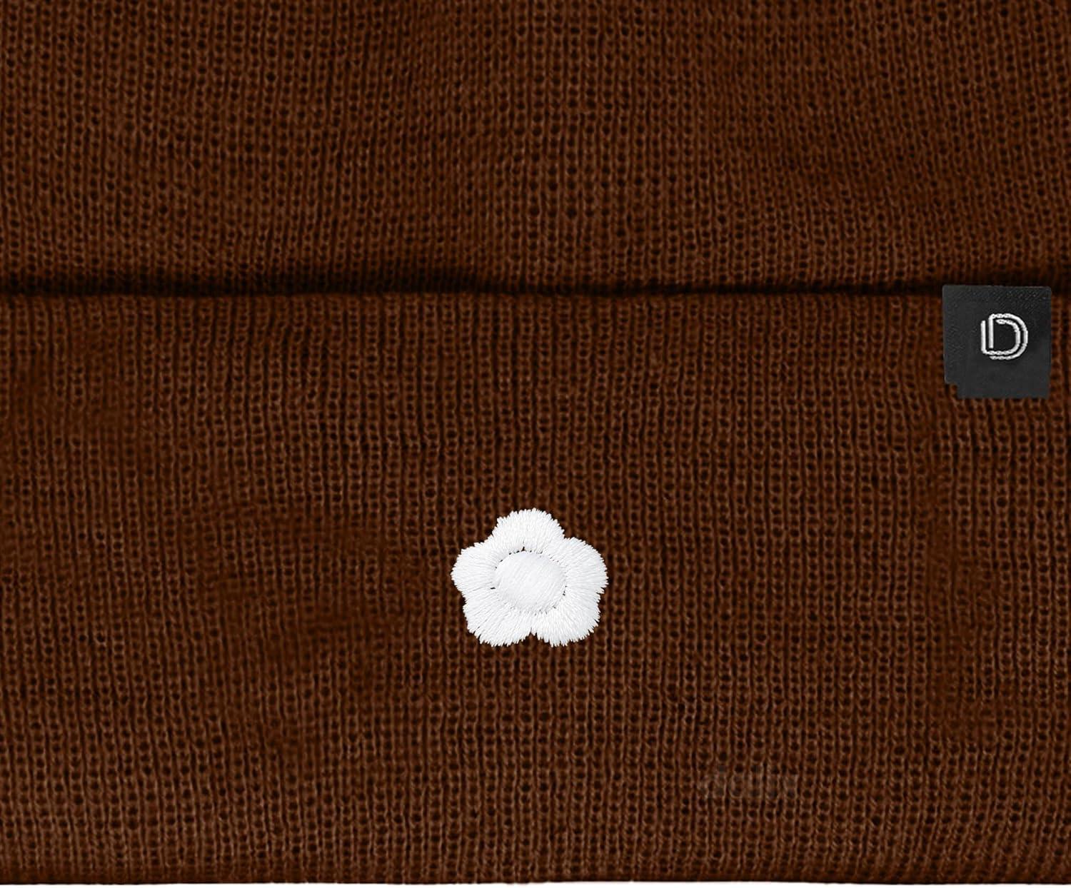 DALIX Lil Flower Embroidered Beanie Warm Winter Knit Hat Women(Brown)