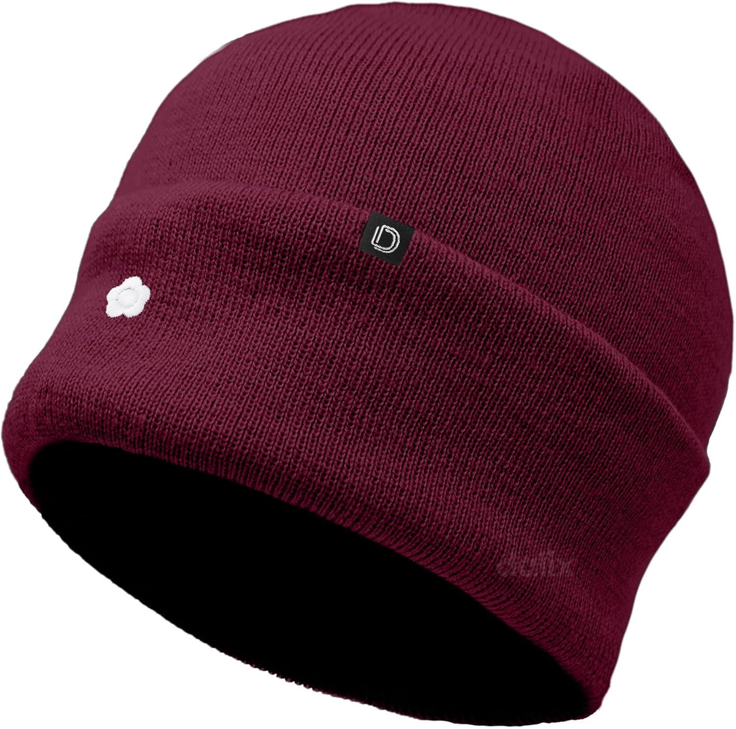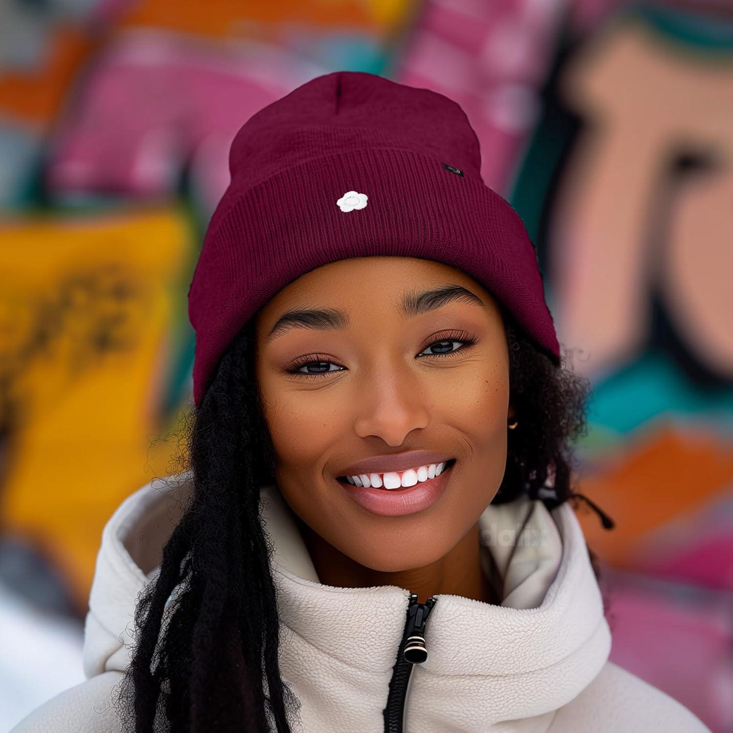 DALIX Lil Flower Embroidered Beanie Warm Winter Knit Hat Women(Maroon)