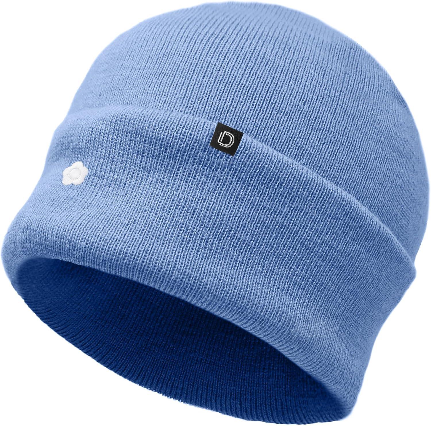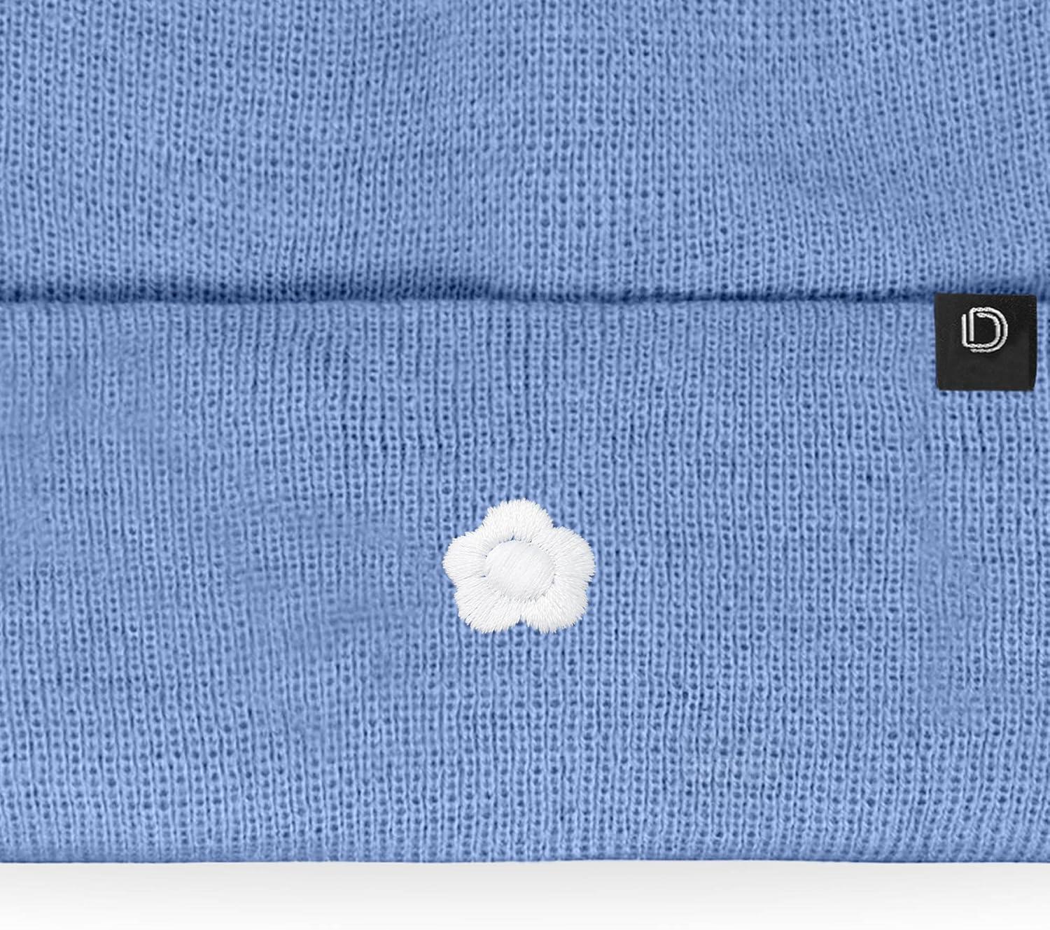 DALIX Lil Flower Embroidered Beanie Warm Winter Knit Hat Women(Periwinkle)