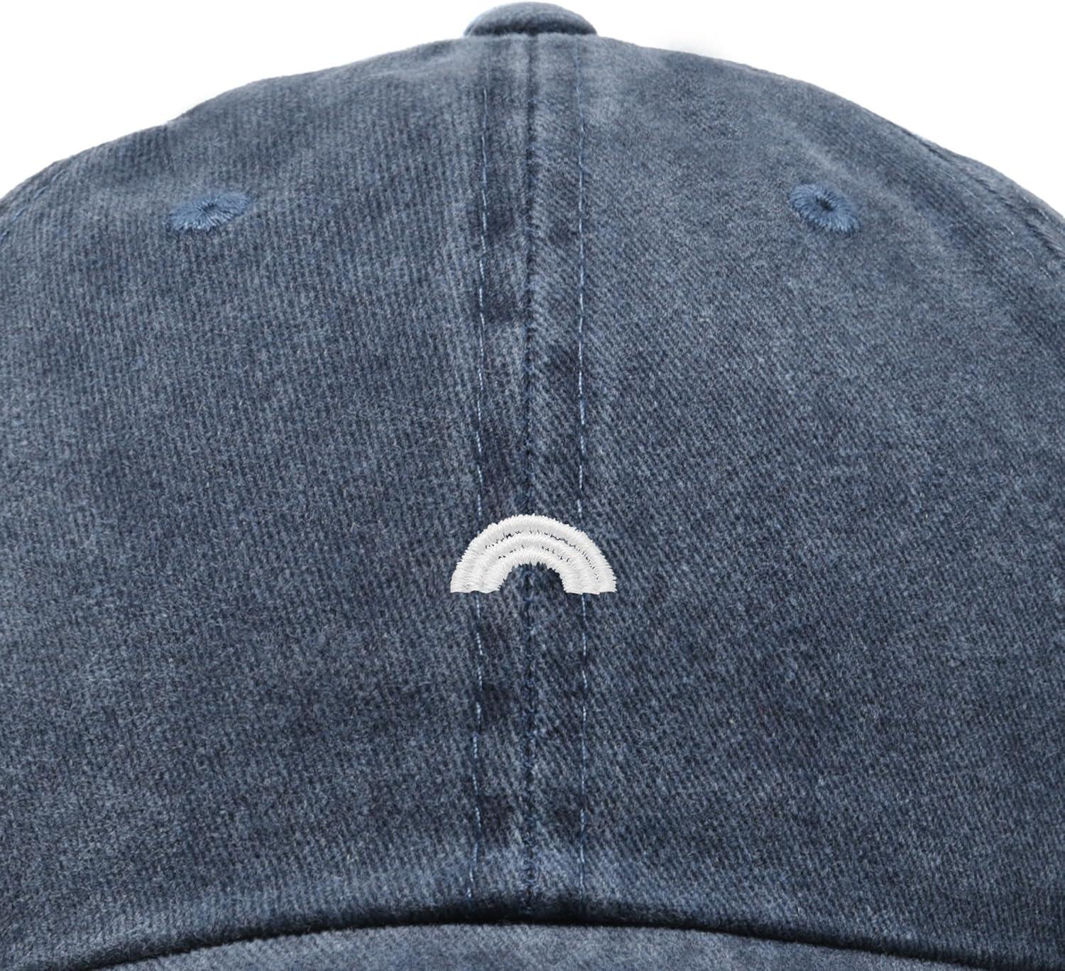 DALIX Lil Rainbow Embroidered Cotton Cap Summer Outdoor Dad Hat Womens(Washed Navy Blue)