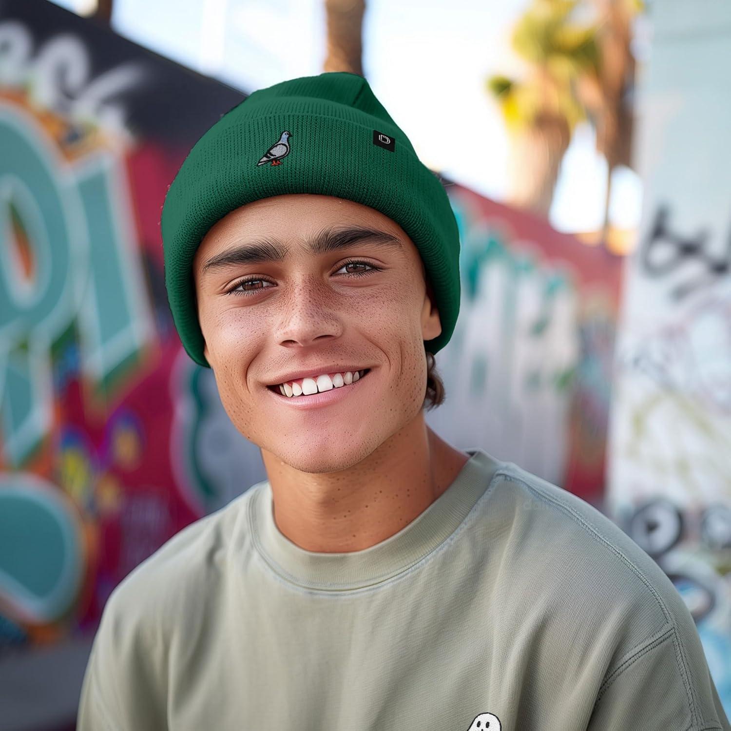 DALIX Pigeon Embroidered Beanie Warm Winter Cap Knit Hat Mens(Green)