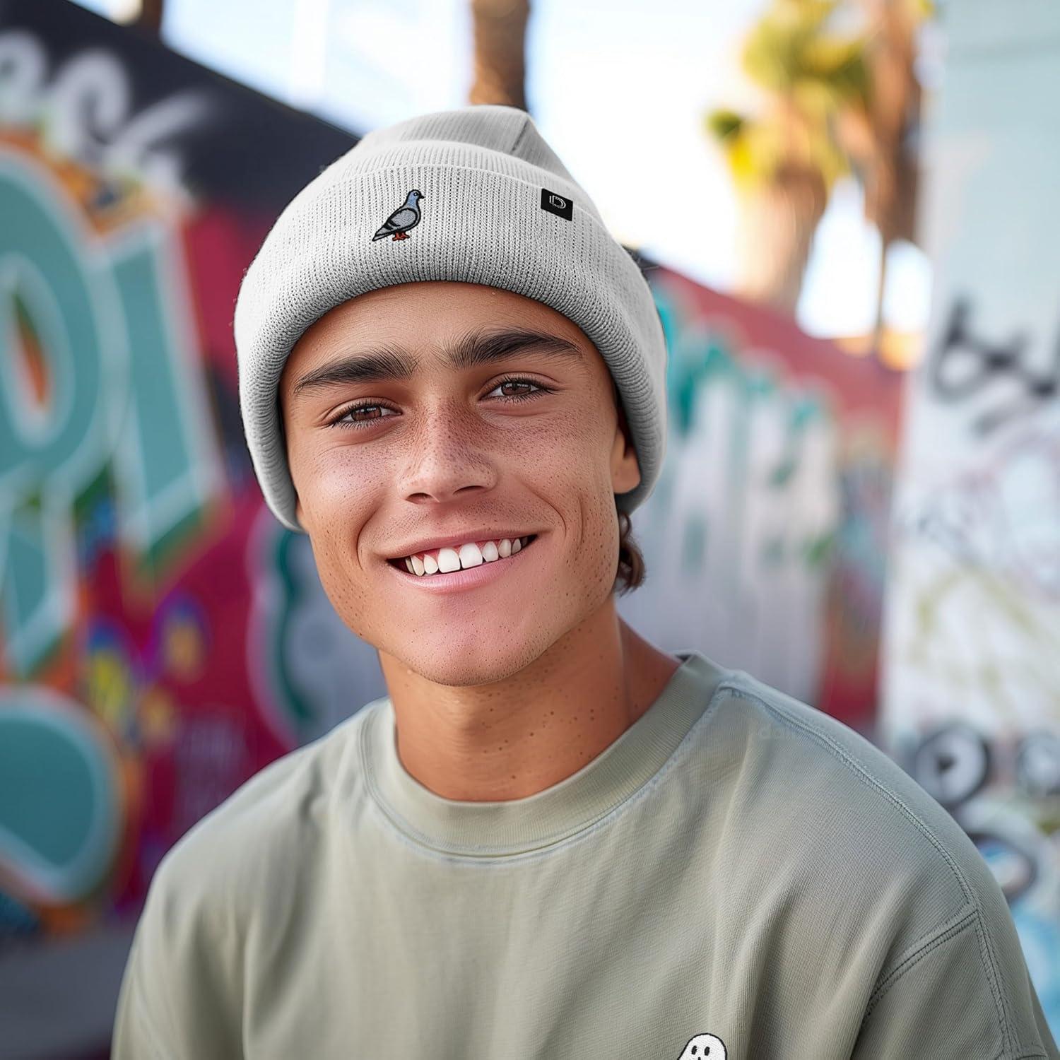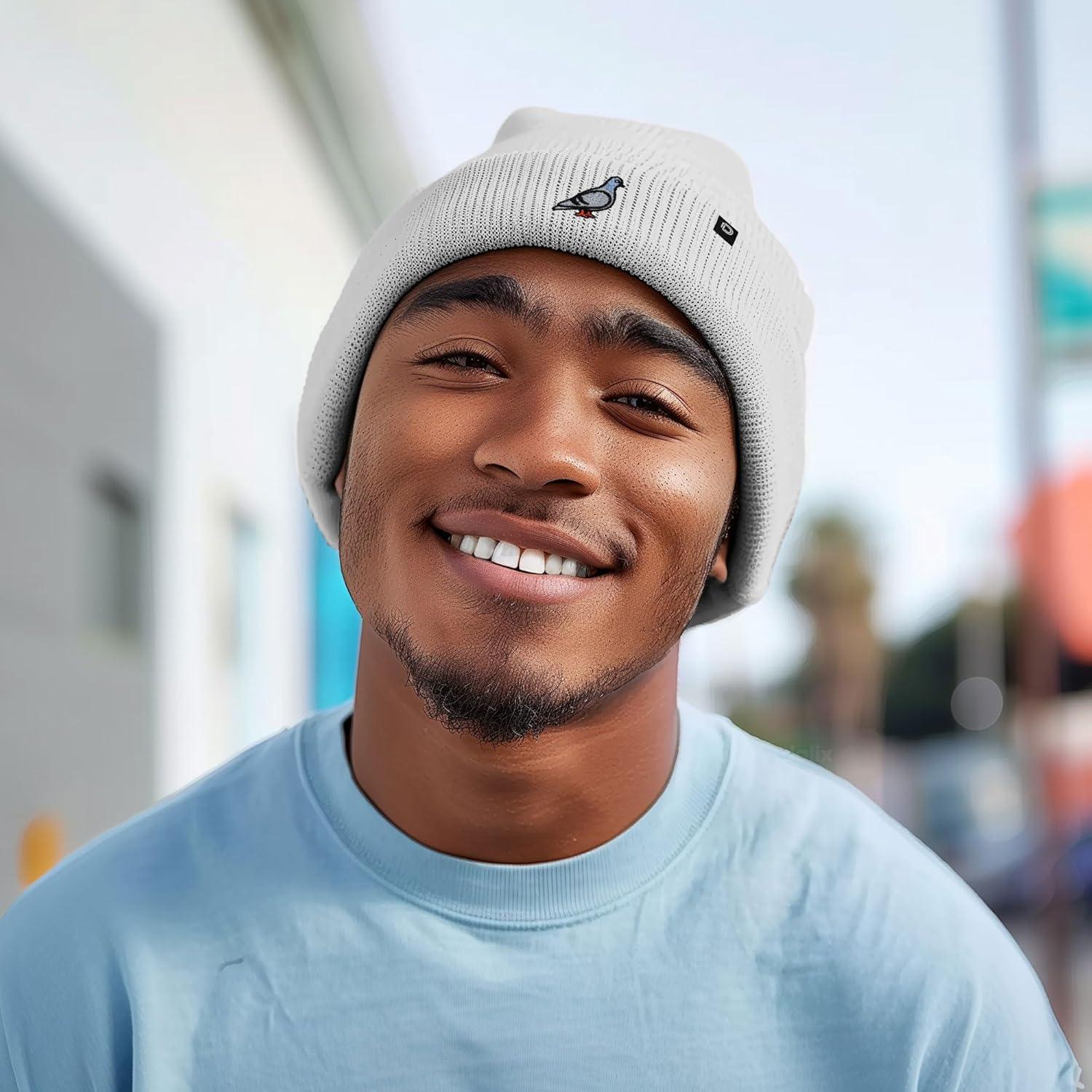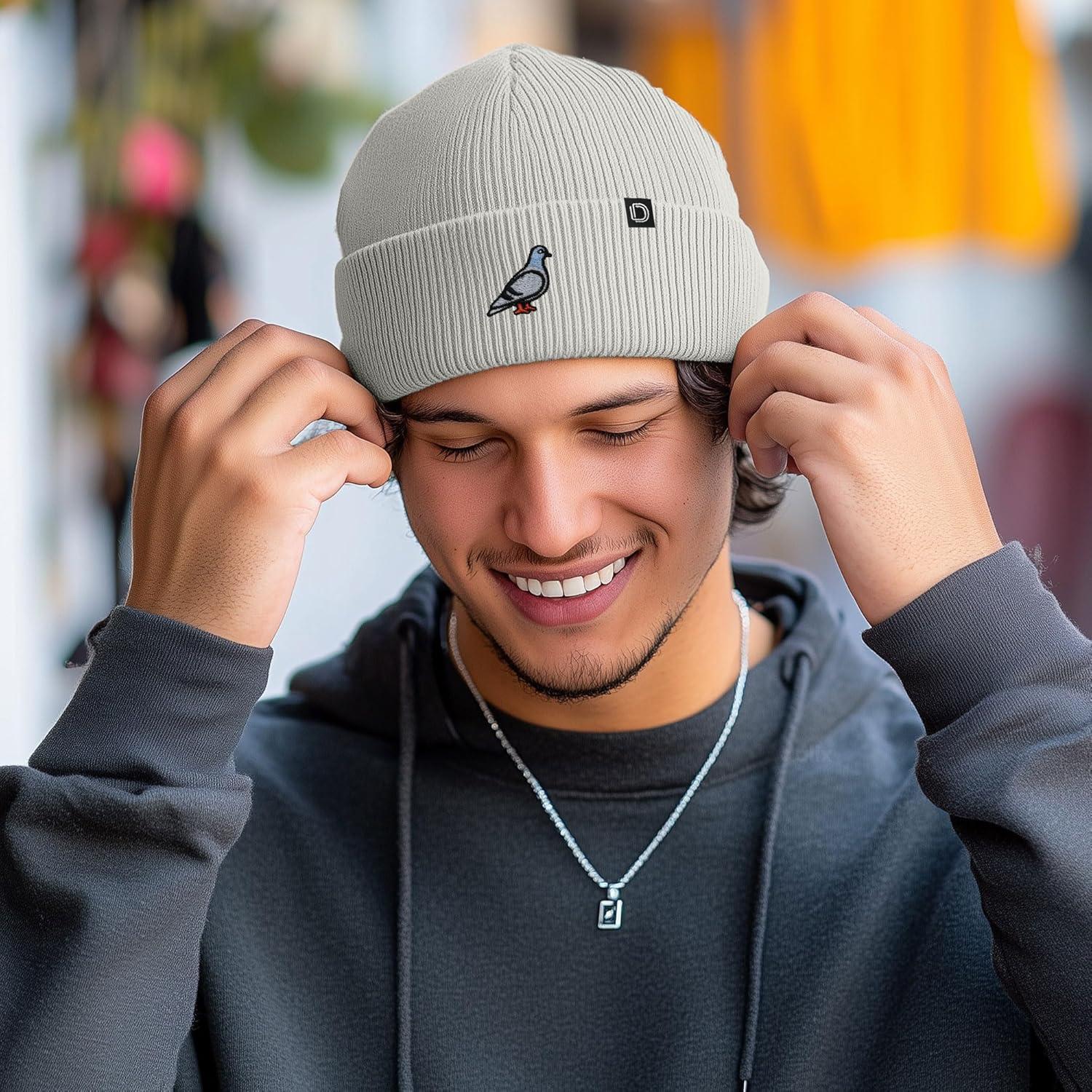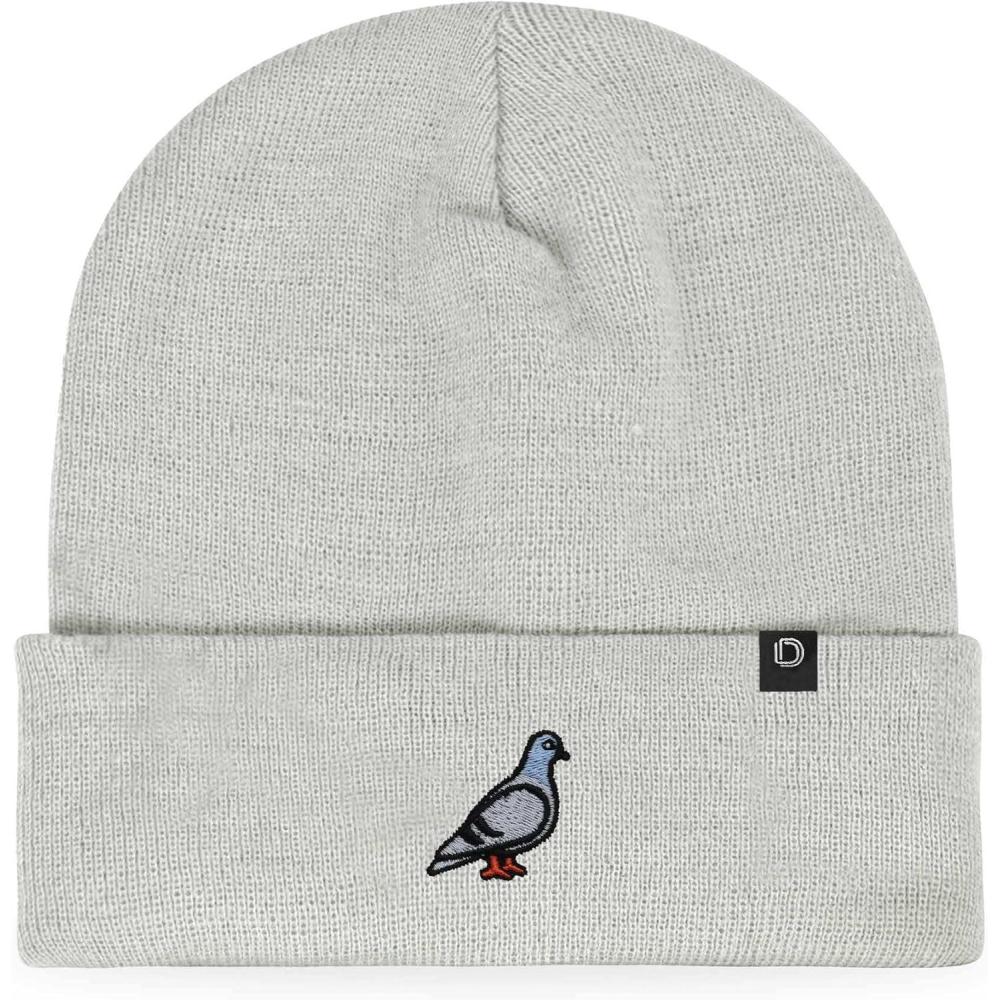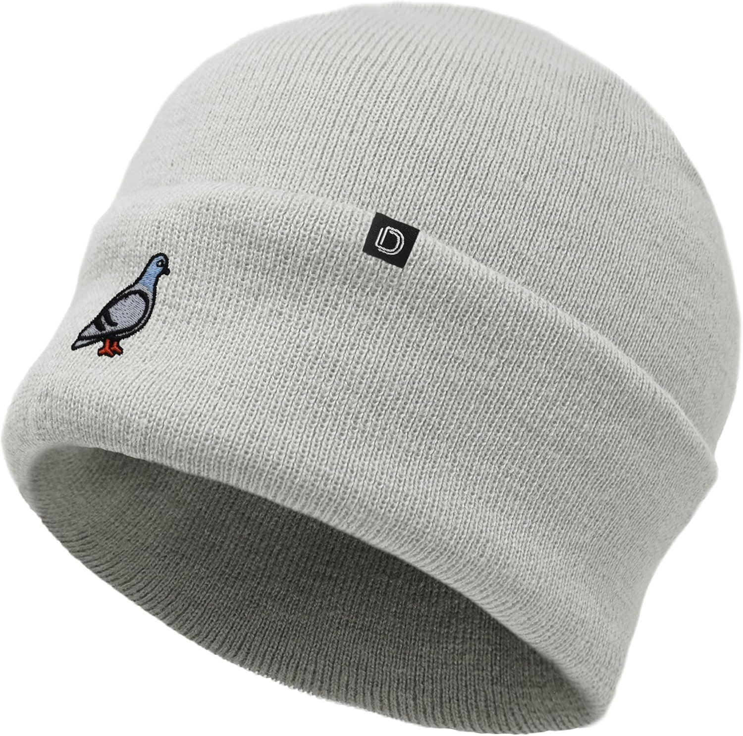 DALIX Pigeon Embroidered Beanie Warm Winter Cap Knit Hat Mens(Light Gray)