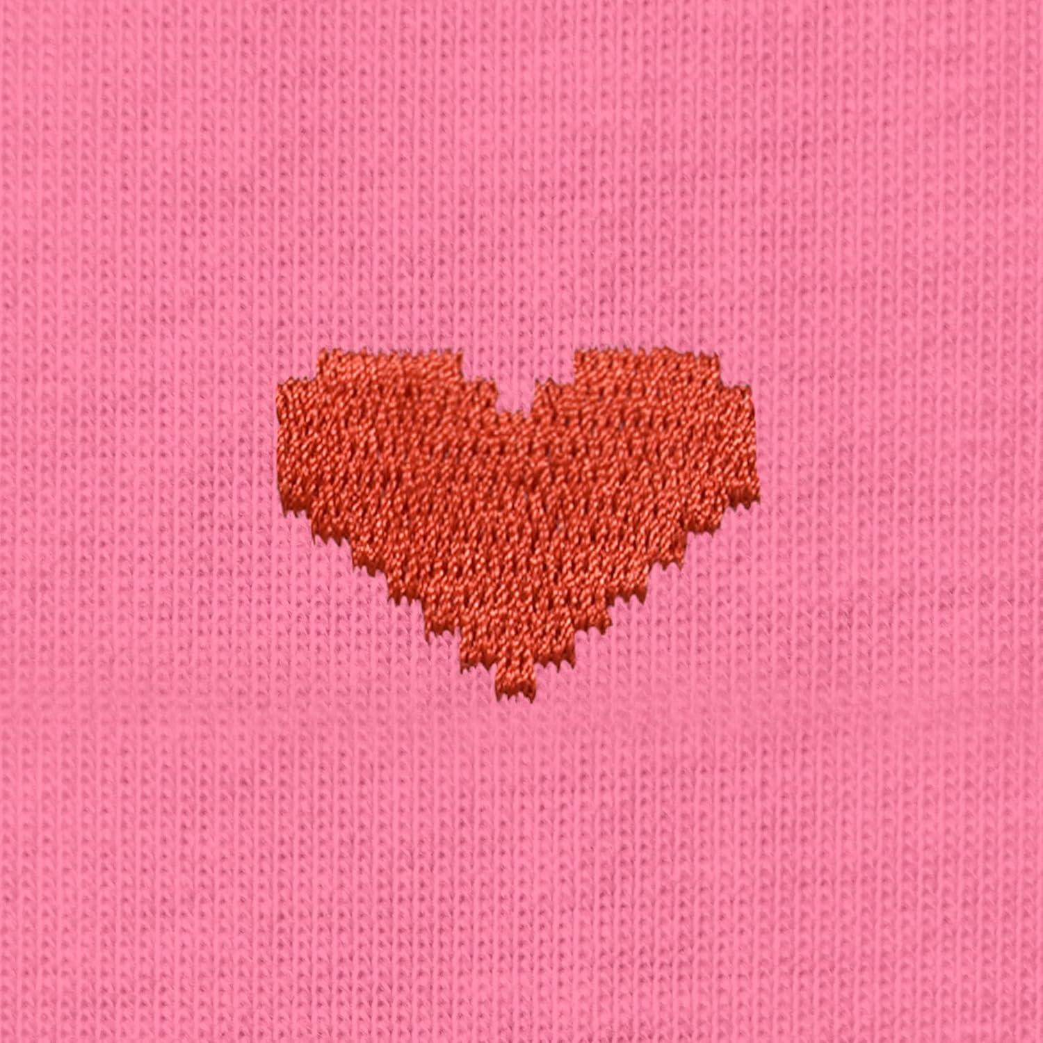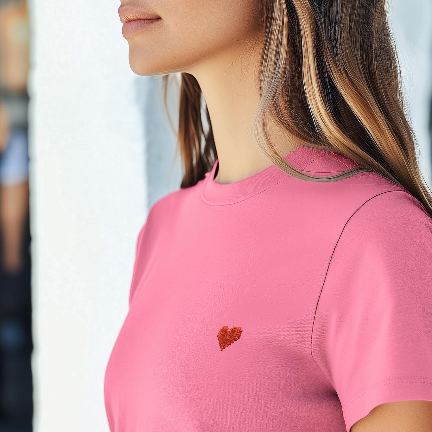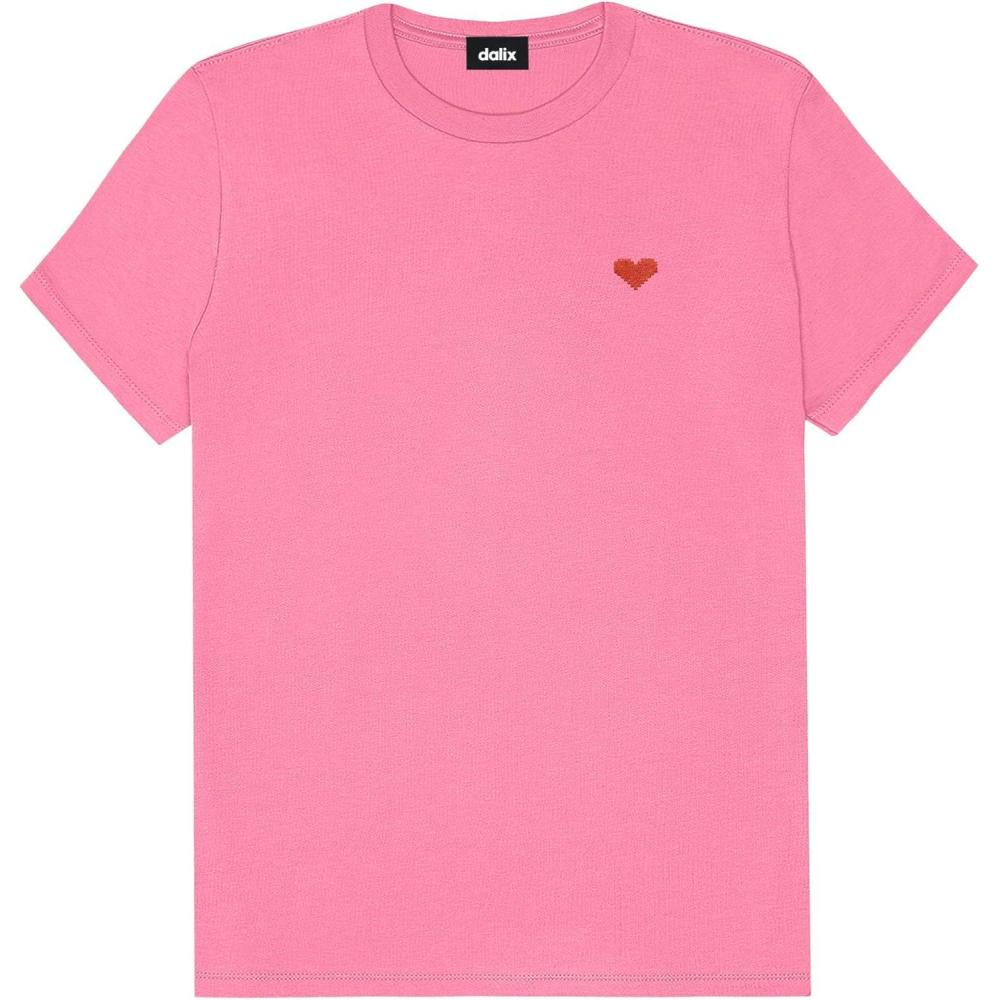 DALIX Pixel Heart Embroidered Lightweight Relaxed Jersey Tee Summer Cute Love Womens(Charity Pink)