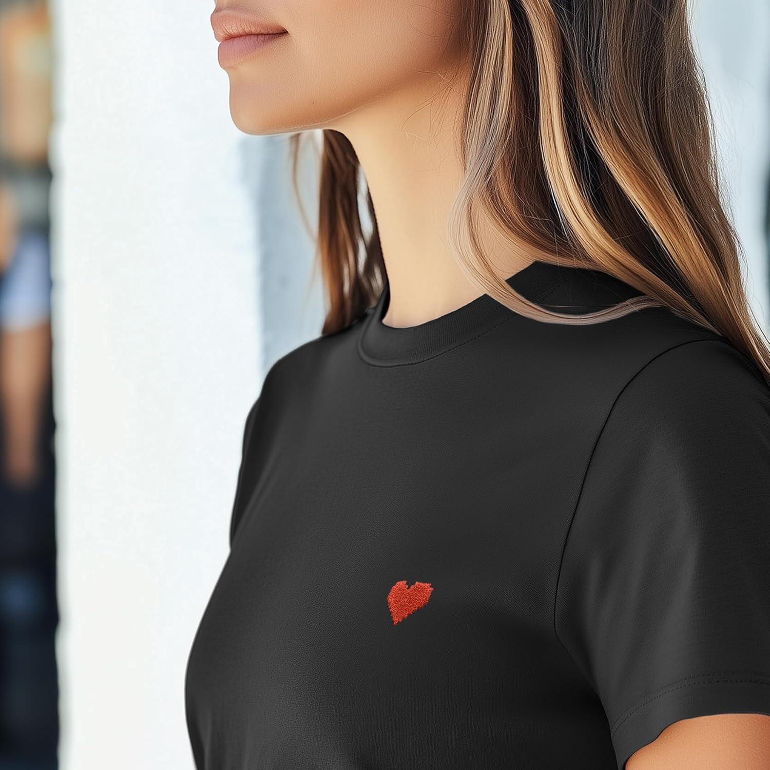 imageDALIX Pixel Heart Embroidered Lightweight Relaxed Jersey Tee Summer Cute Love WomensChestnut