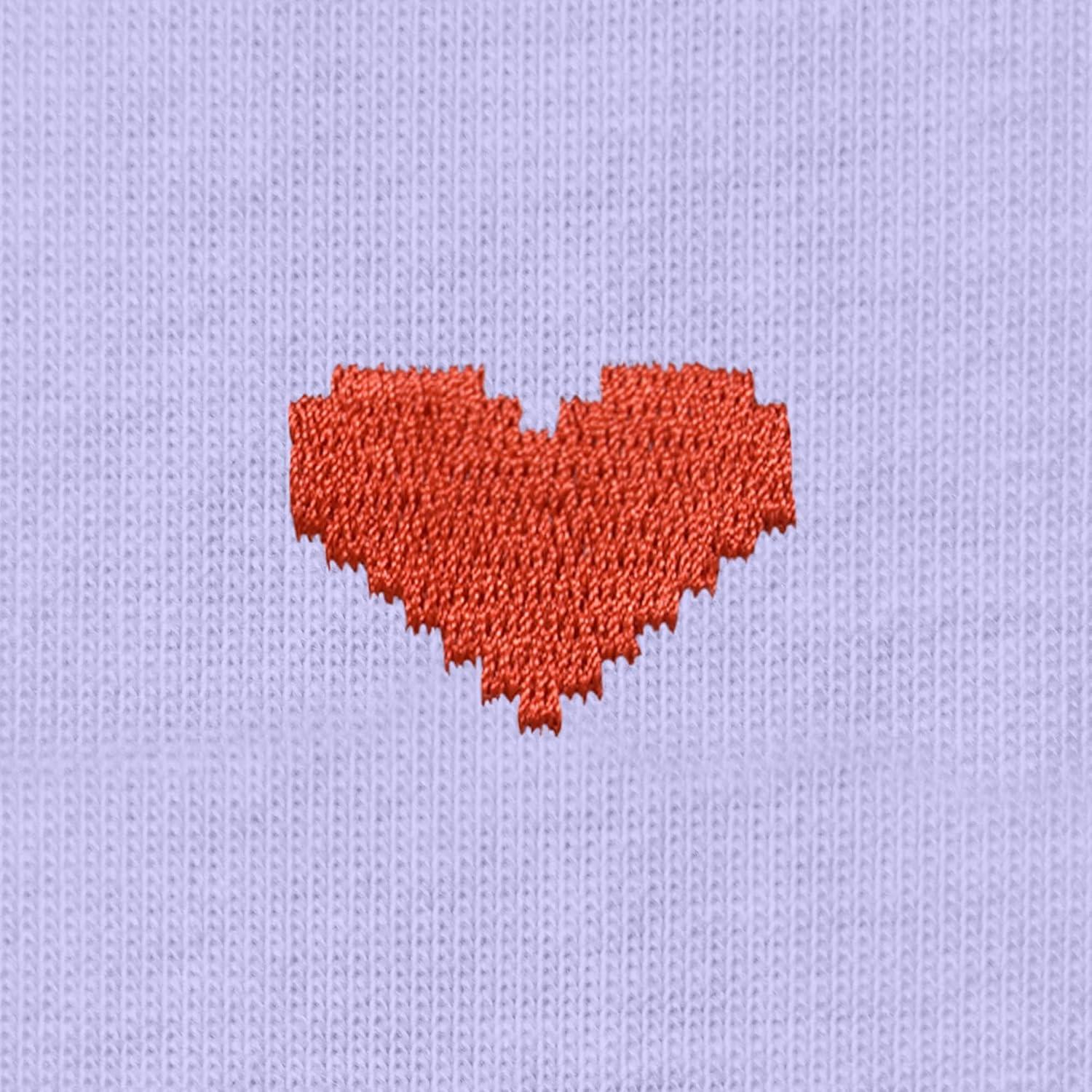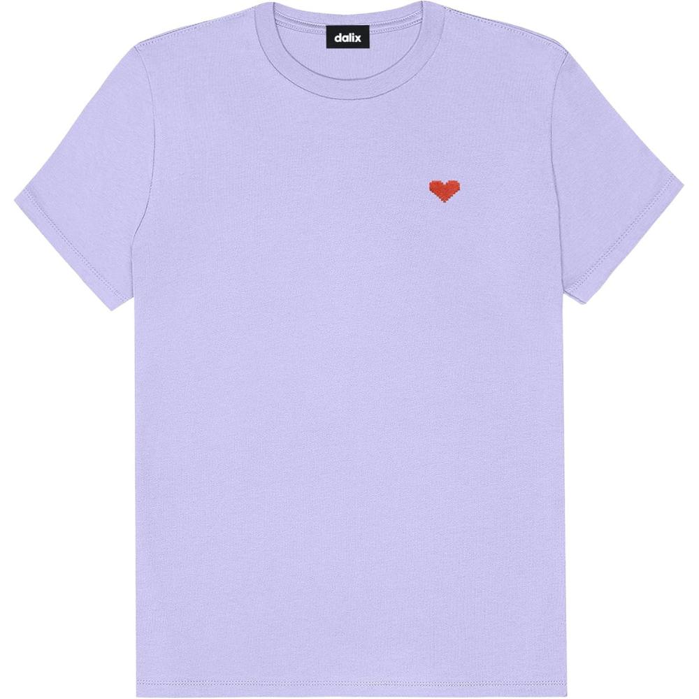 DALIX Pixel Heart Embroidered Lightweight Relaxed Jersey Tee Summer Cute Love Womens(Dark Lavender)