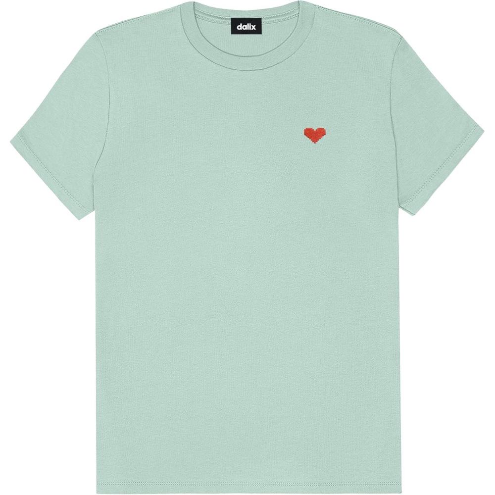 DALIX Pixel Heart Embroidered Lightweight Relaxed Jersey Tee Summer Cute Love Womens(Dusty Blue)