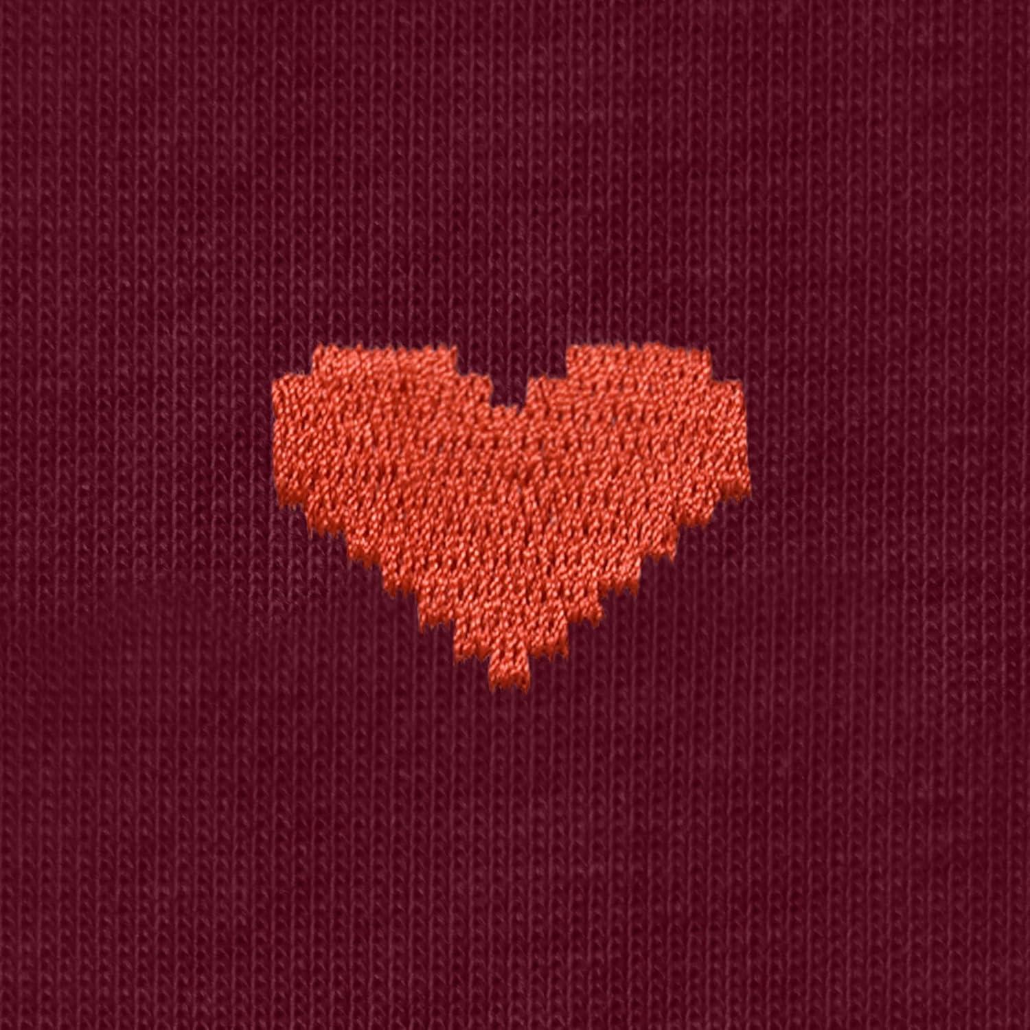 DALIX Pixel Heart Embroidered Lightweight Relaxed Jersey Tee Summer Cute Love Womens(Maroon)