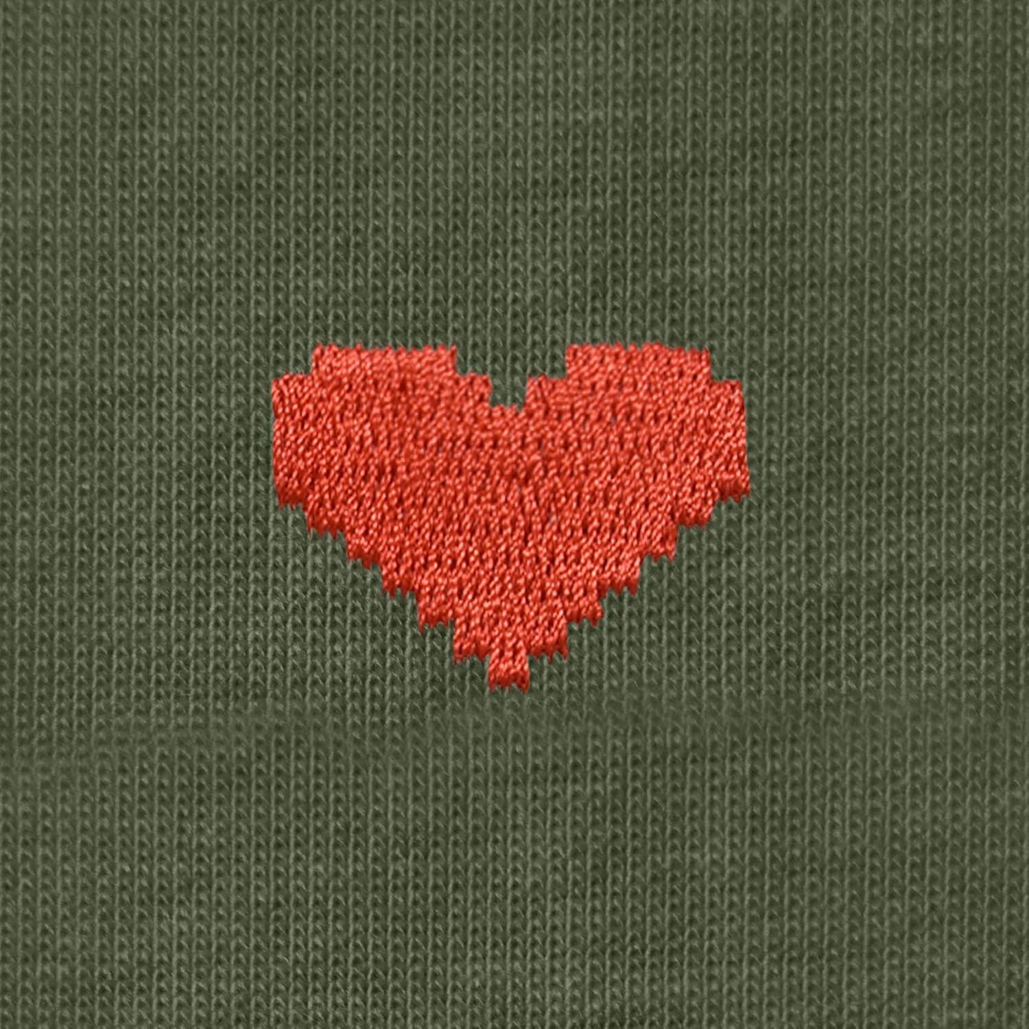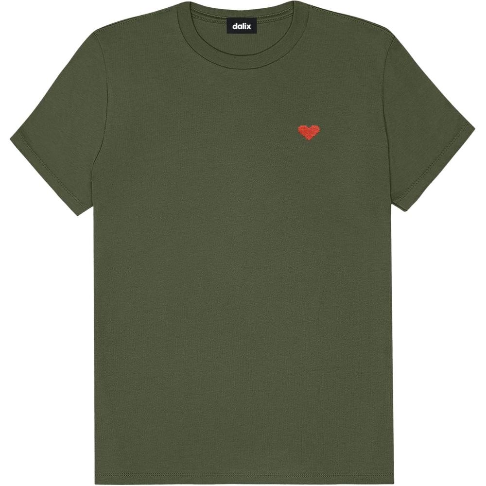 DALIX Pixel Heart Embroidered Lightweight Relaxed Jersey Tee Summer Cute Love Womens(Military Green)