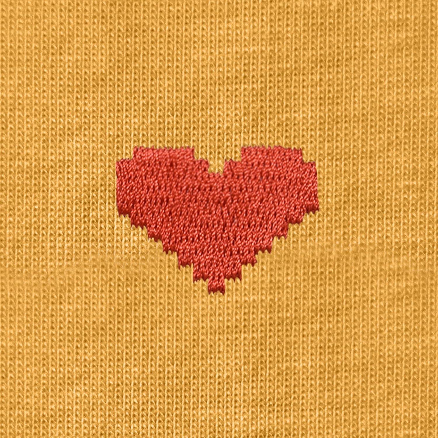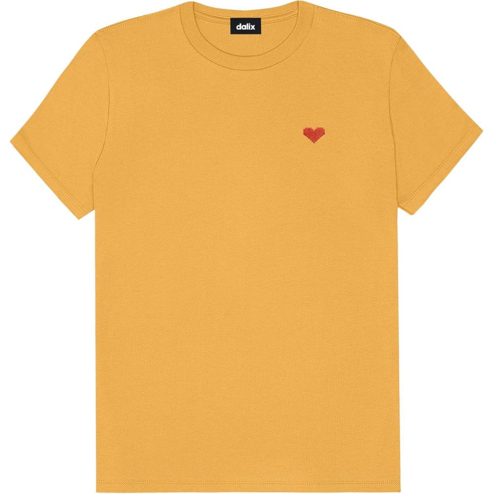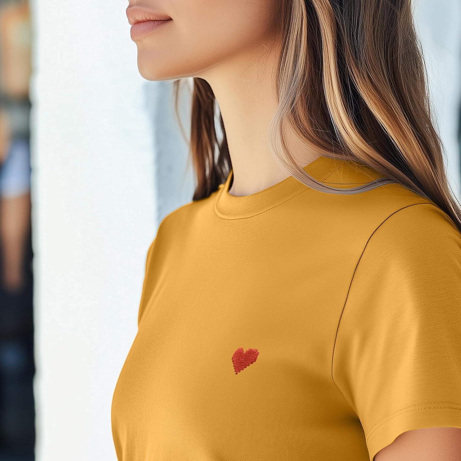DALIX Pixel Heart Embroidered Lightweight Relaxed Jersey Tee Summer Cute Love Womens(Mustard)