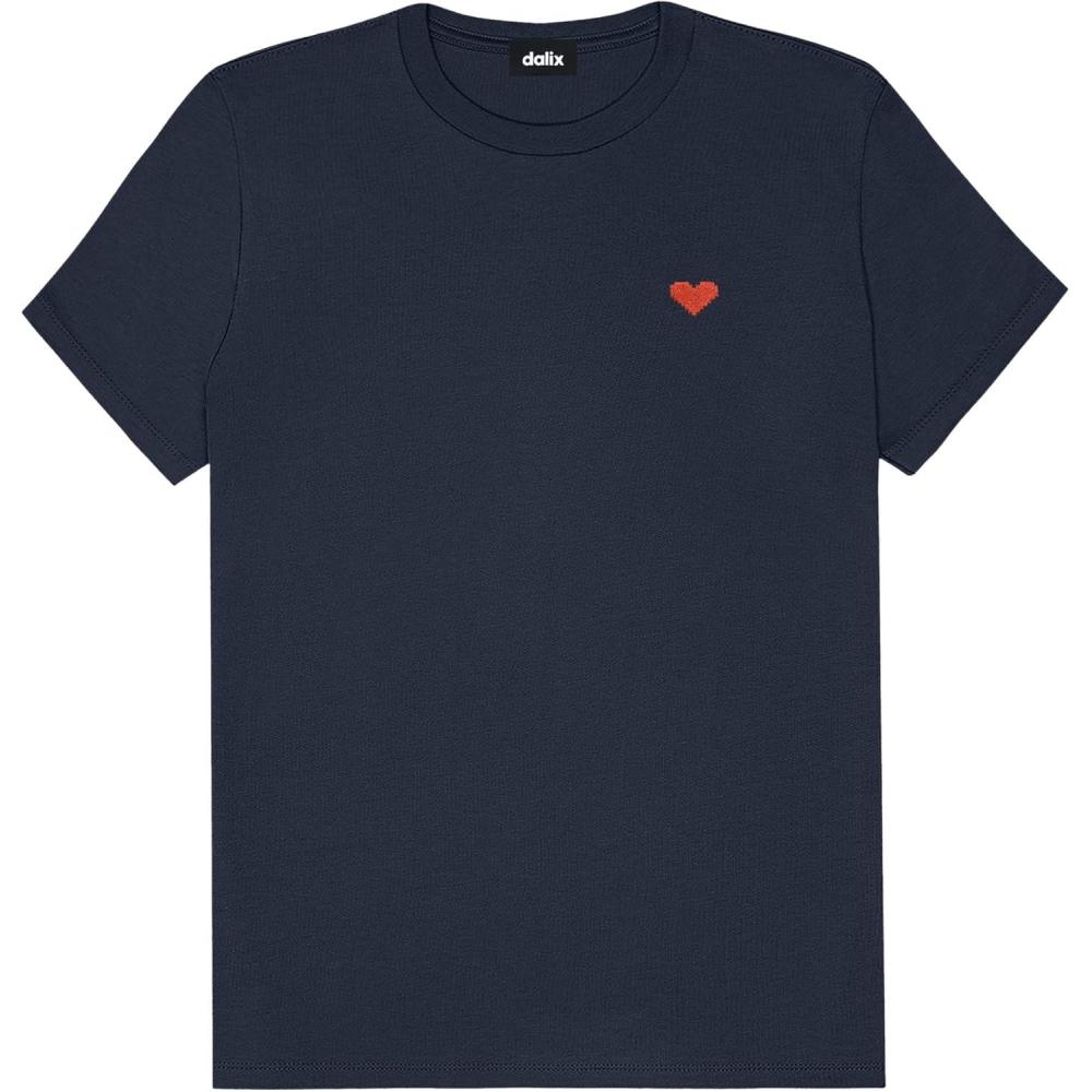 DALIX Pixel Heart Embroidered Lightweight Relaxed Jersey Tee Summer Cute Love Womens(Navy Blue)