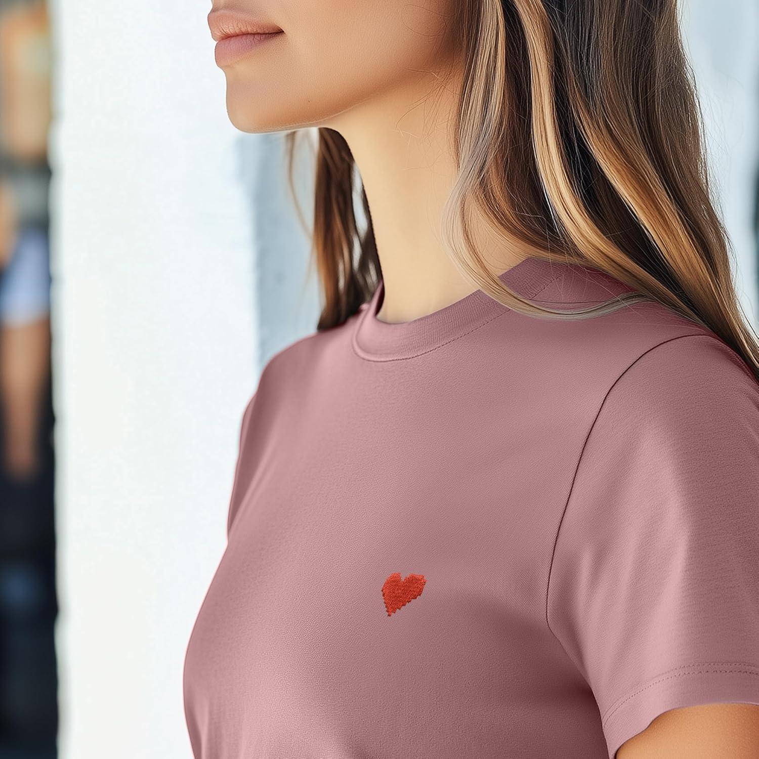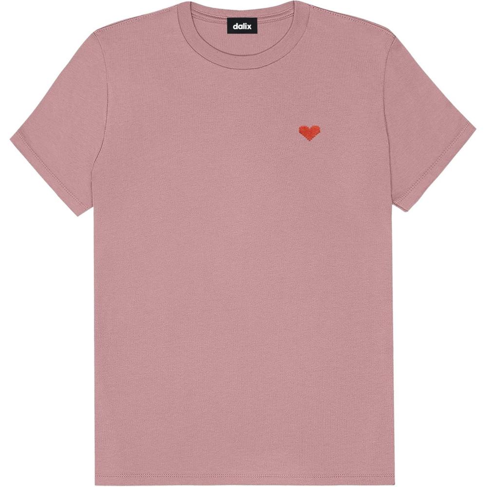 DALIX Pixel Heart Embroidered Lightweight Relaxed Jersey Tee Summer Cute Love Womens(Pink)