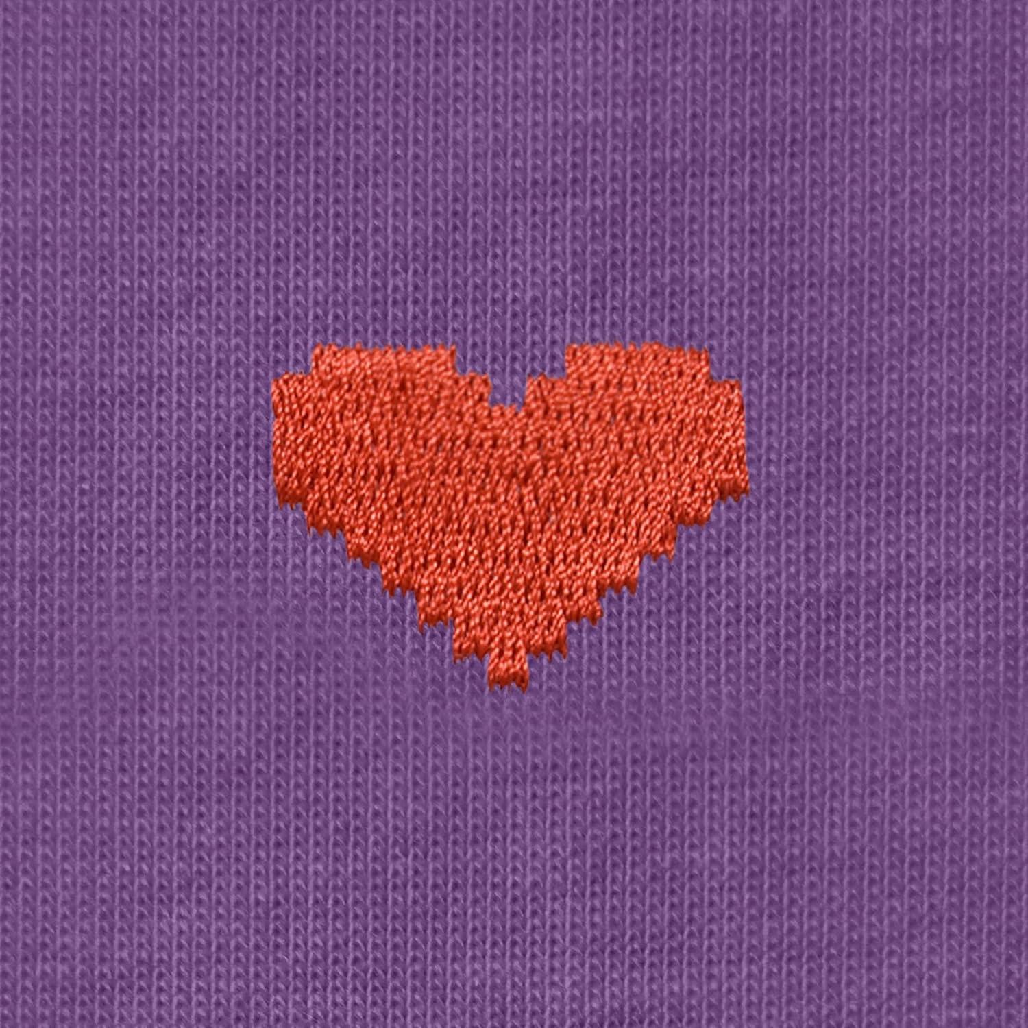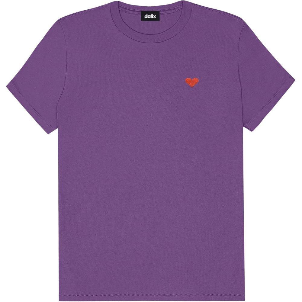 DALIX Pixel Heart Embroidered Lightweight Relaxed Jersey Tee Summer Cute Love Womens(Purple)