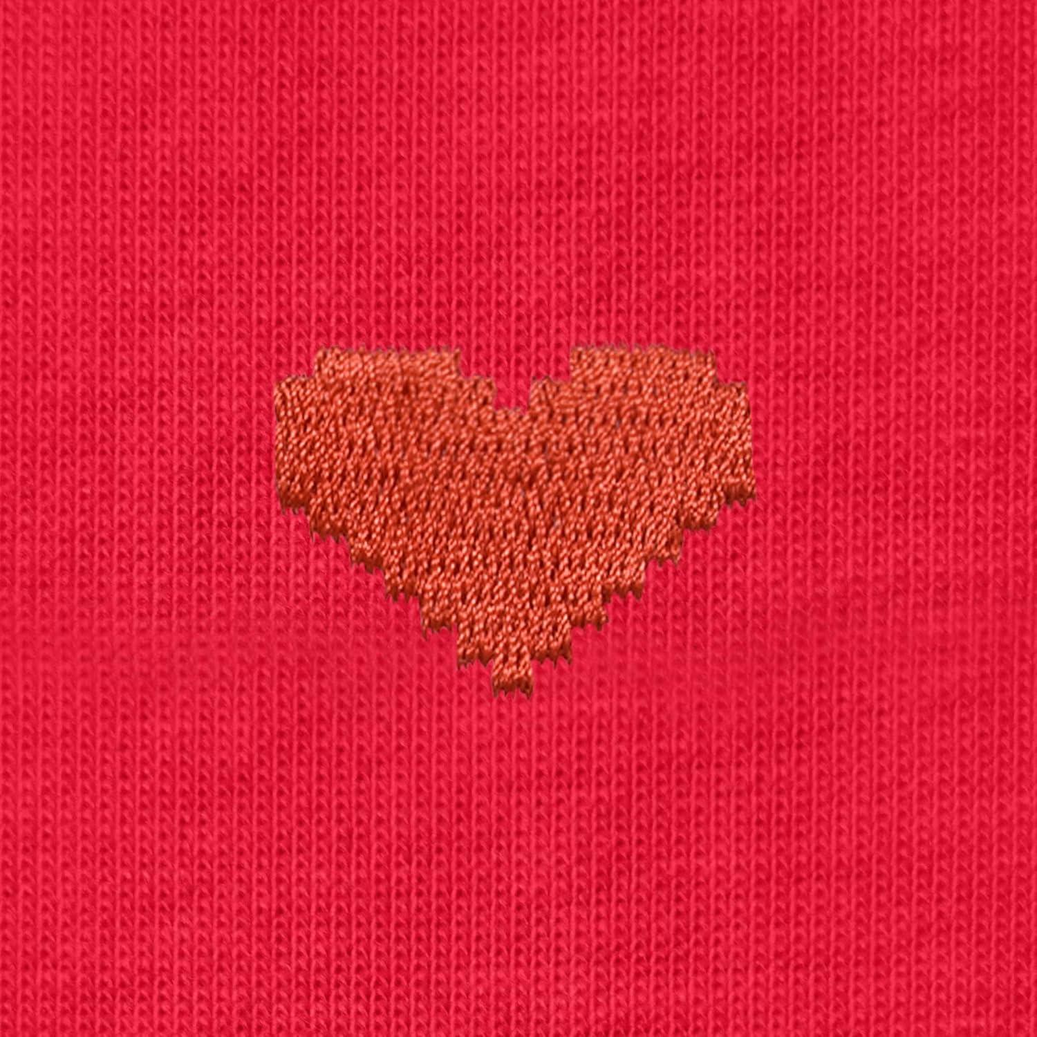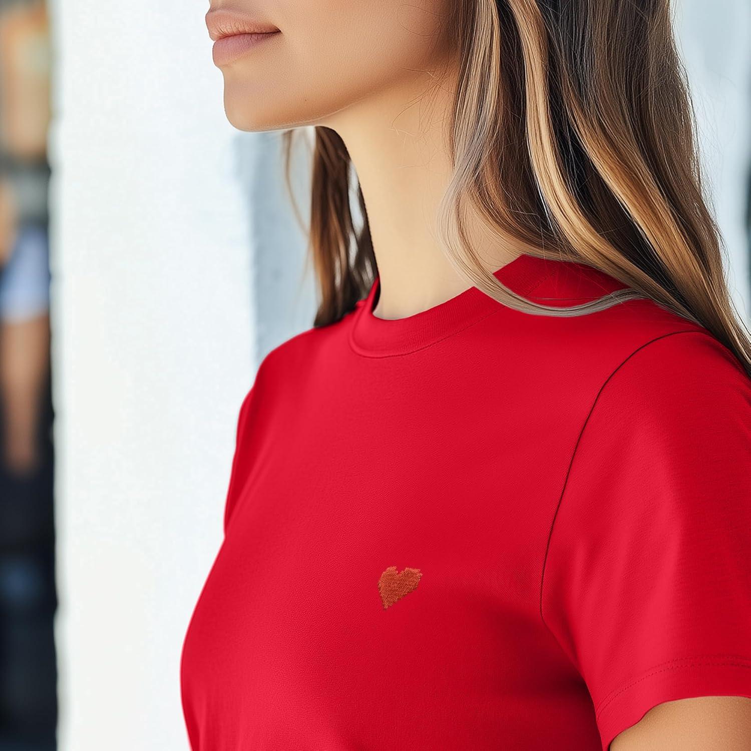 DALIX Pixel Heart Embroidered Lightweight Relaxed Jersey Tee Summer Cute Love Womens(Red)