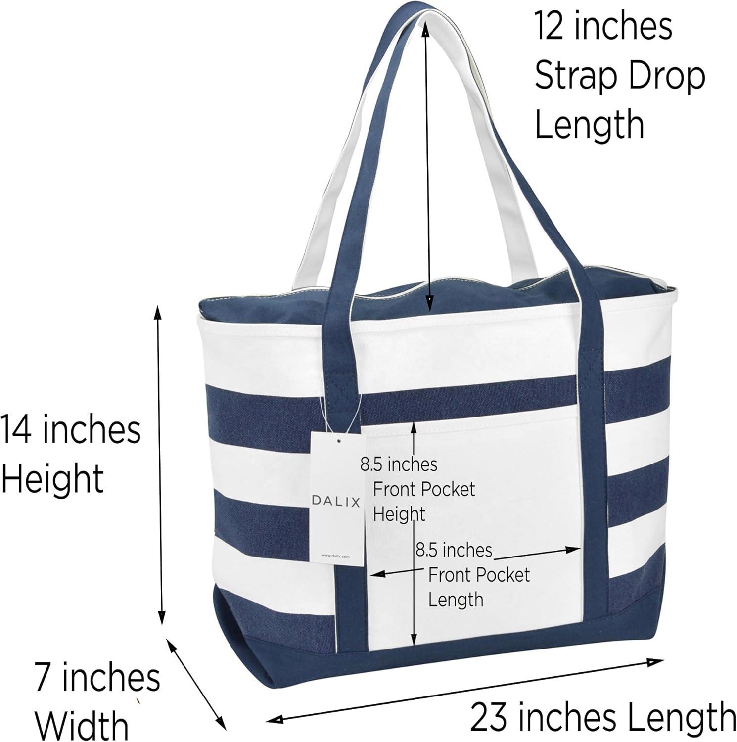 imageDALIX Premium Beach Bags Striped Navy Blue Zippered Tote Bag Monogrammed A  ZL
