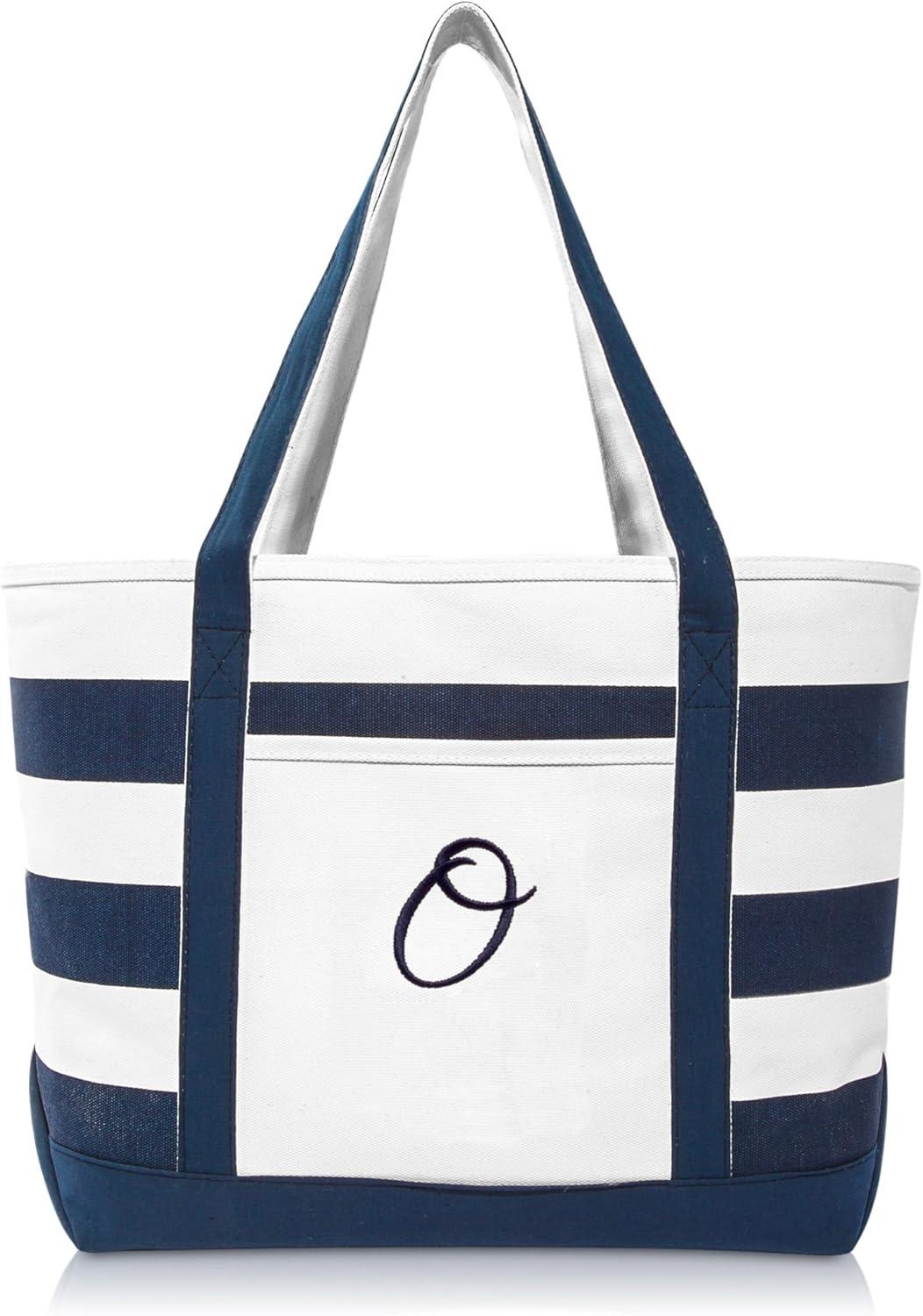 DALIX Premium Beach Bags Striped Navy Blue Zippered Tote Bag Monogrammed A – Z(O)