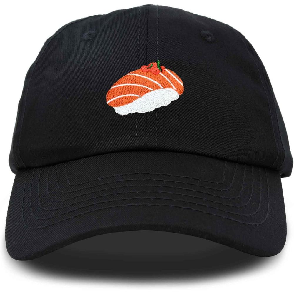 DALIX Salmon Nigiri Embroidered Sushi Cotton Dad Hat Baseball Cap Adjustable Womens(Black)