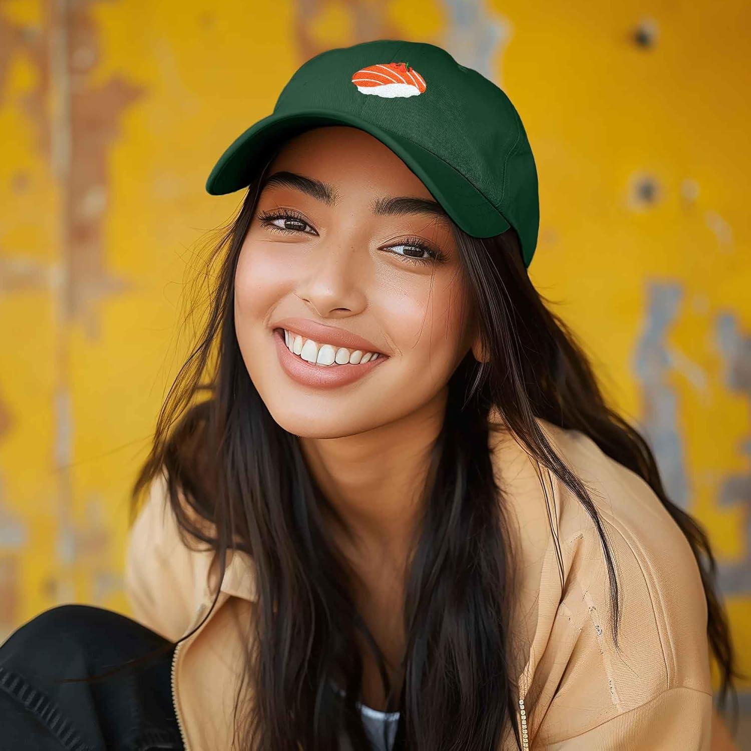 DALIX Salmon Nigiri Embroidered Sushi Cotton Dad Hat Baseball Cap Adjustable Womens(Dark Green)