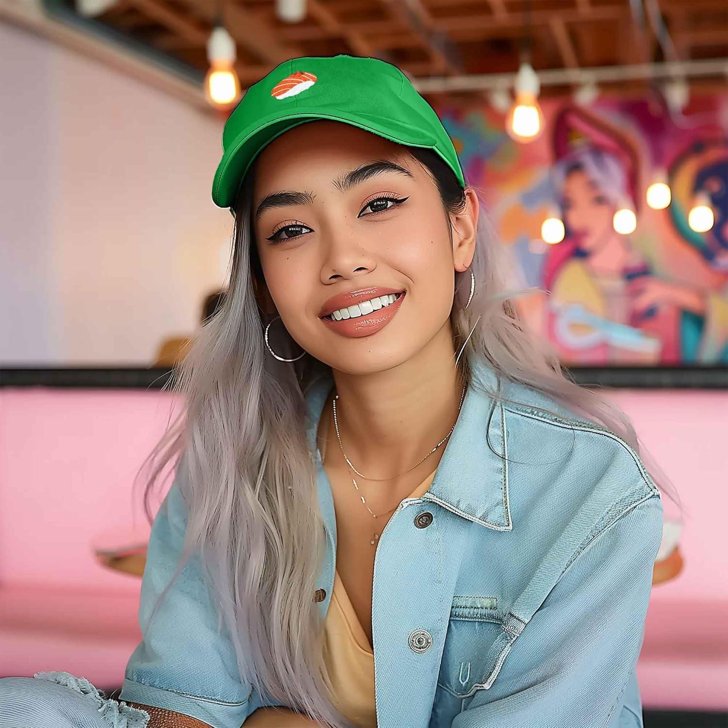 Elevate your casual style with our women's baseball cap featuring a charming Salmon Nigiri embroidery. This dad cap is perfect for any outing, providing comfort and convenience with its soft, breathable fabric and unstructured crown, making it a versatile addition to your wardrobe. The adjustable strap with a buckle ensures a secure fit, accommodating all hair styles effortlessly. Whether you’re heading to work, enjoying a day out with friends, or adding a unique touch to your outfit, this cap matches everything and brings a playful yet stylish element to your look. This cap is ideal for a variety of activities. Wear it for a relaxed day at the beach, casual coffee dates, outdoor festivals, weekend shopping trips, or even a spontaneous road trip. With its trendy and comfortable design, this cap seamlessly integrates into your everyday adventures. One Size Fit Most