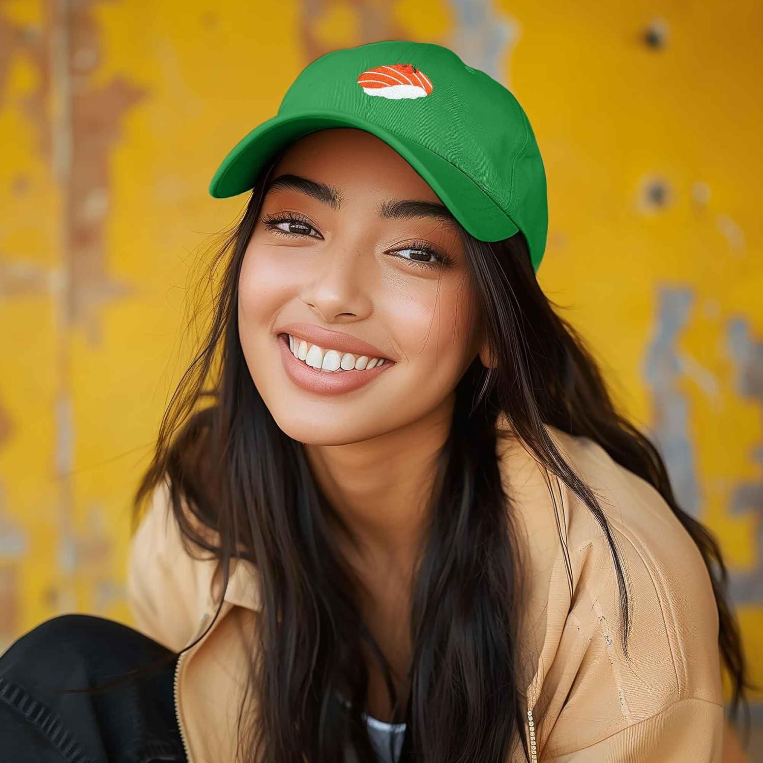 DALIX Salmon Nigiri Embroidered Sushi Cotton Dad Hat Baseball Cap Adjustable Womens(Kelly Green)