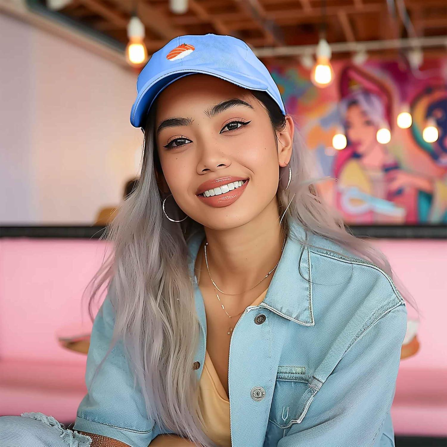 DALIX Salmon Nigiri Embroidered Sushi Cotton Dad Hat Baseball Cap Adjustable Womens(Light Blue)