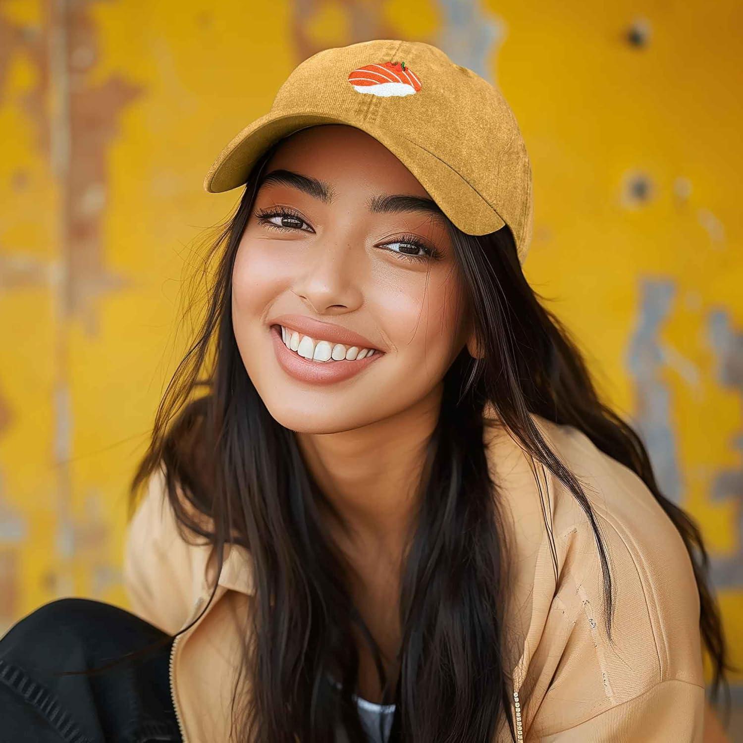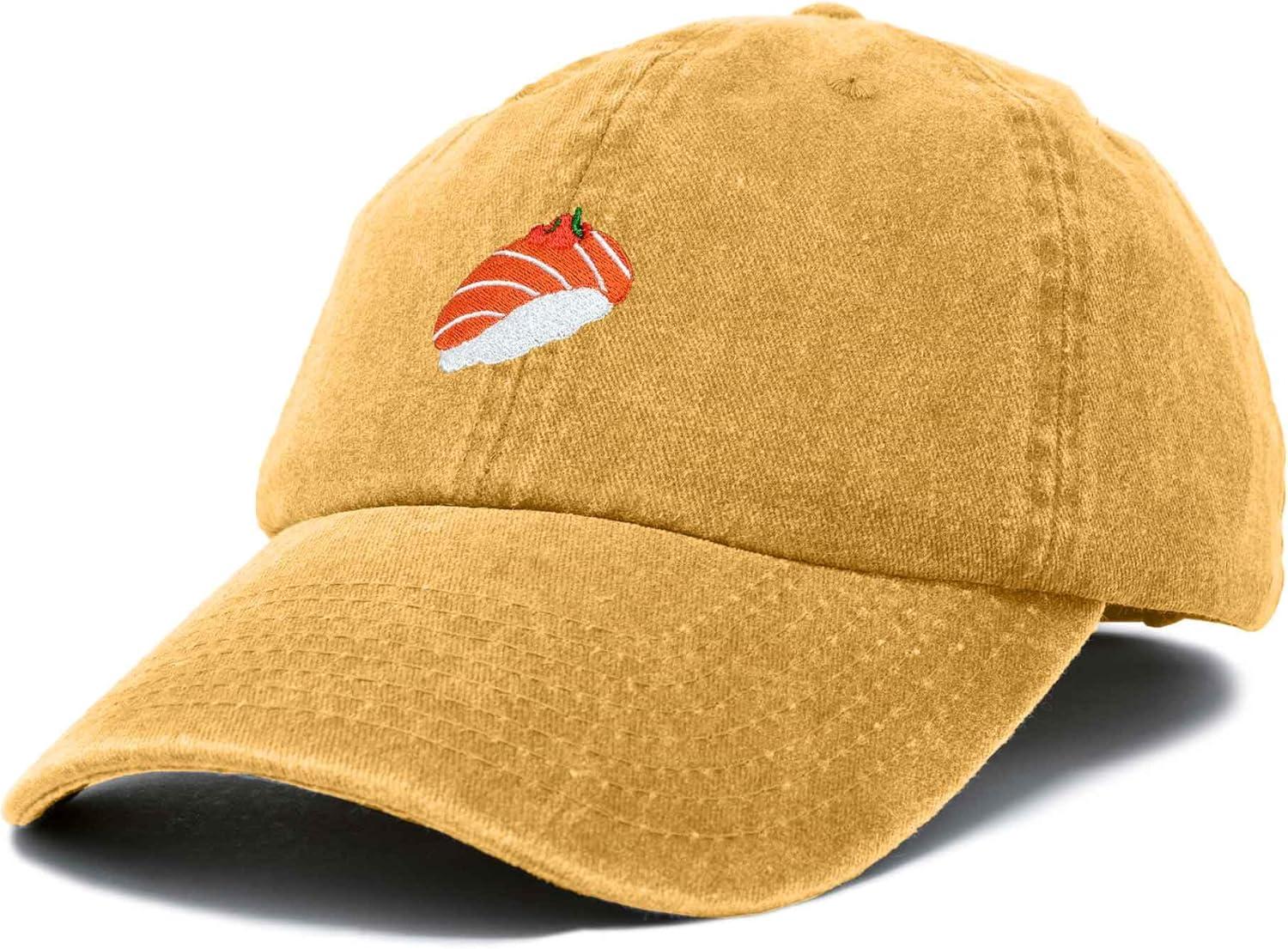 DALIX Salmon Nigiri Embroidered Sushi Cotton Dad Hat Baseball Cap Adjustable Womens(Washed Gold)
