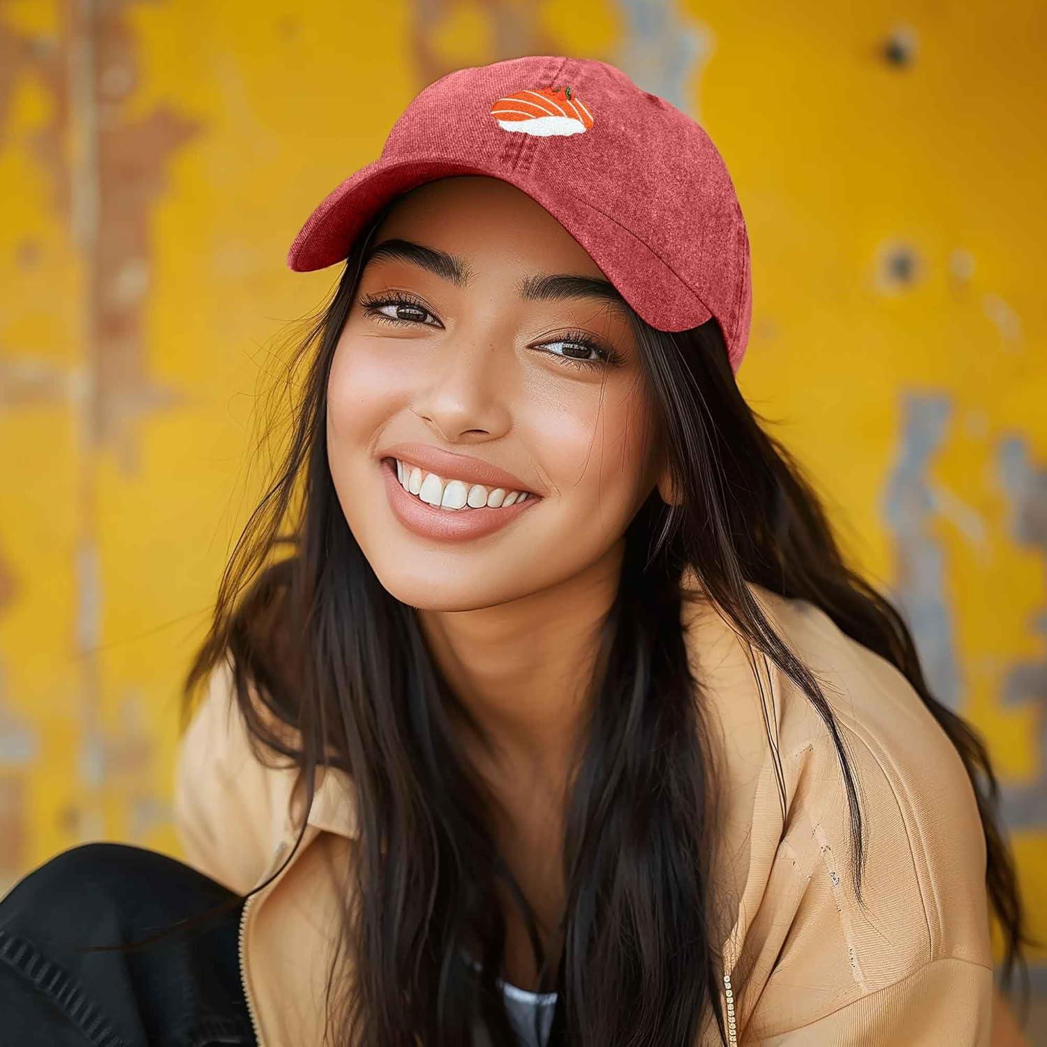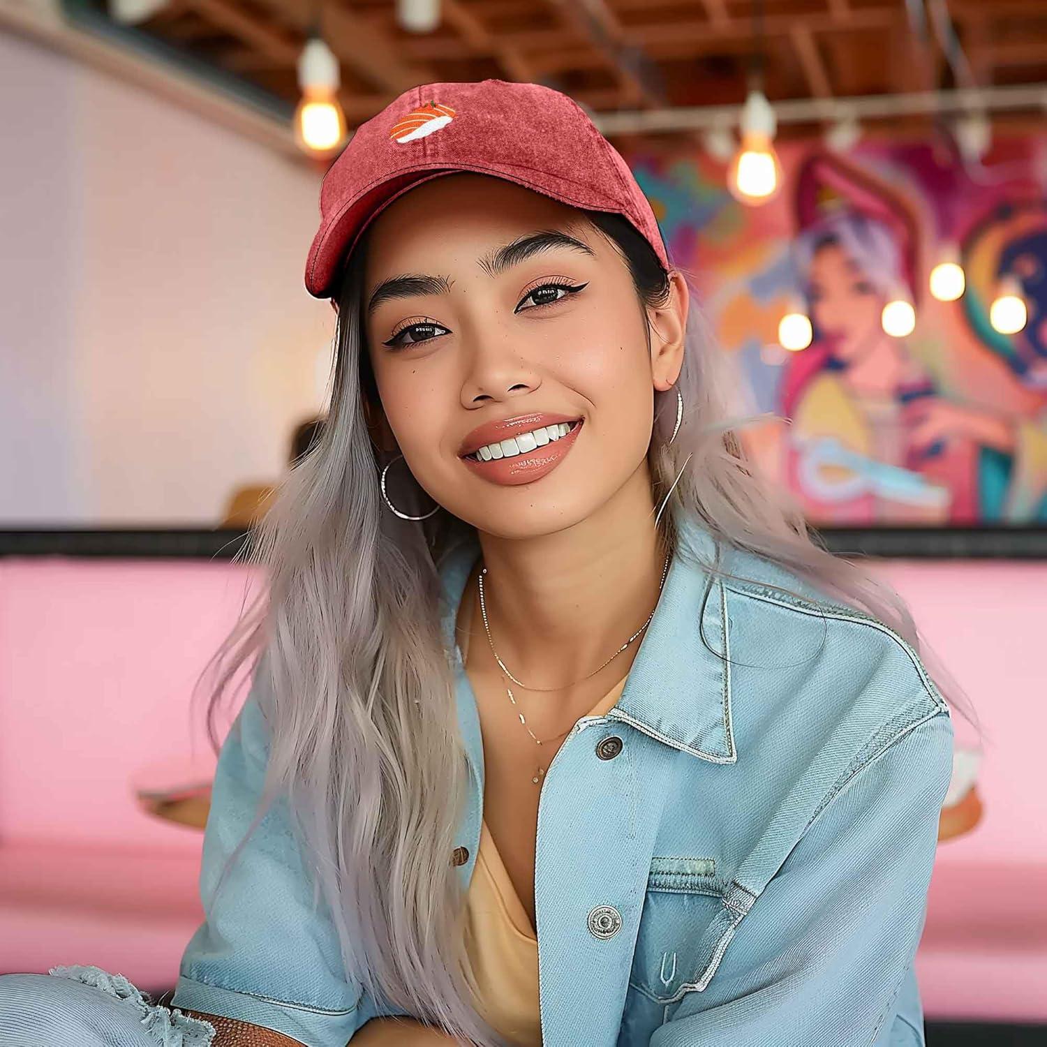 imageDALIX Salmon Nigiri Embroidered Sushi Cotton Dad Hat Baseball Cap Adjustable WomensWashed Pink