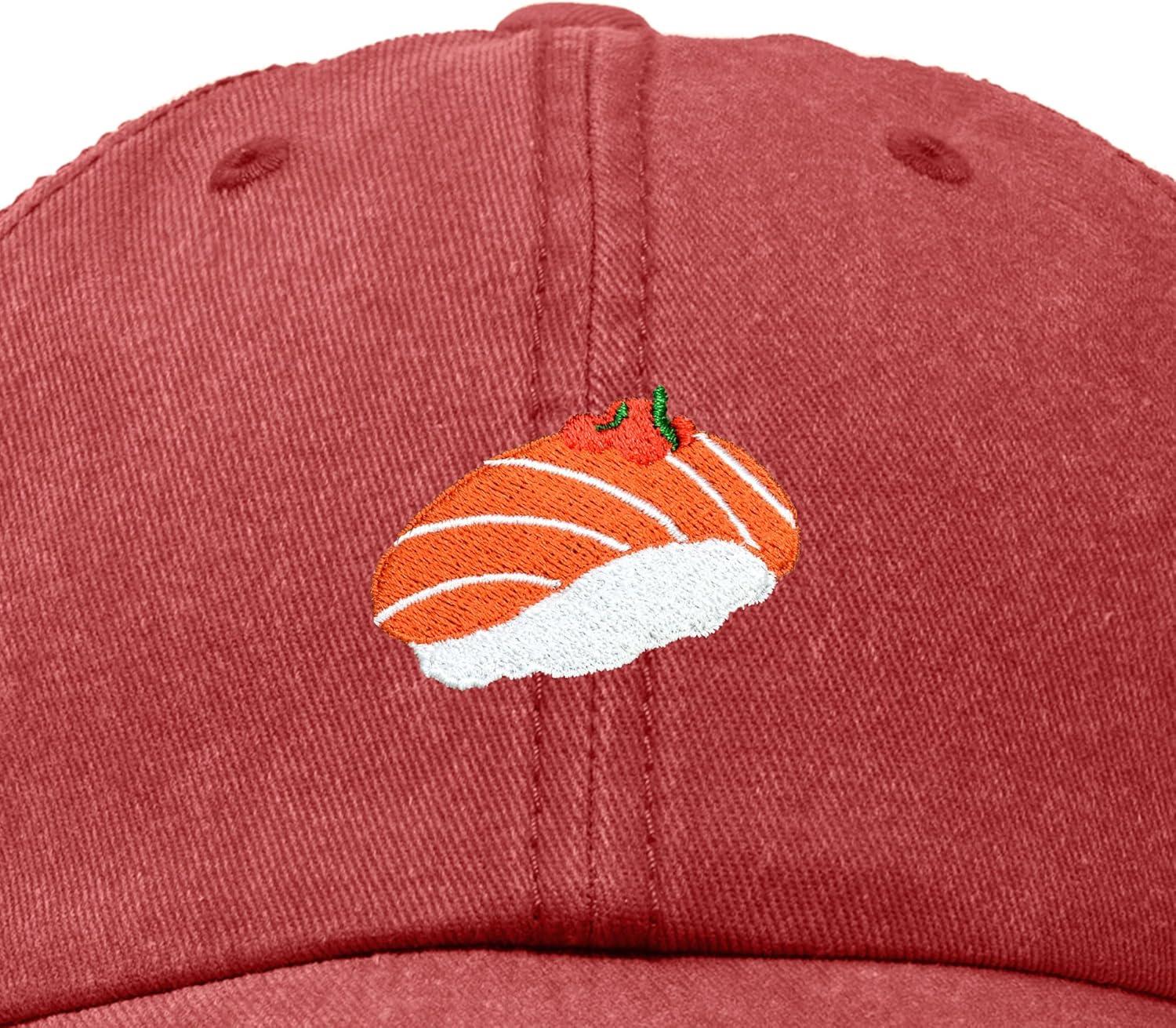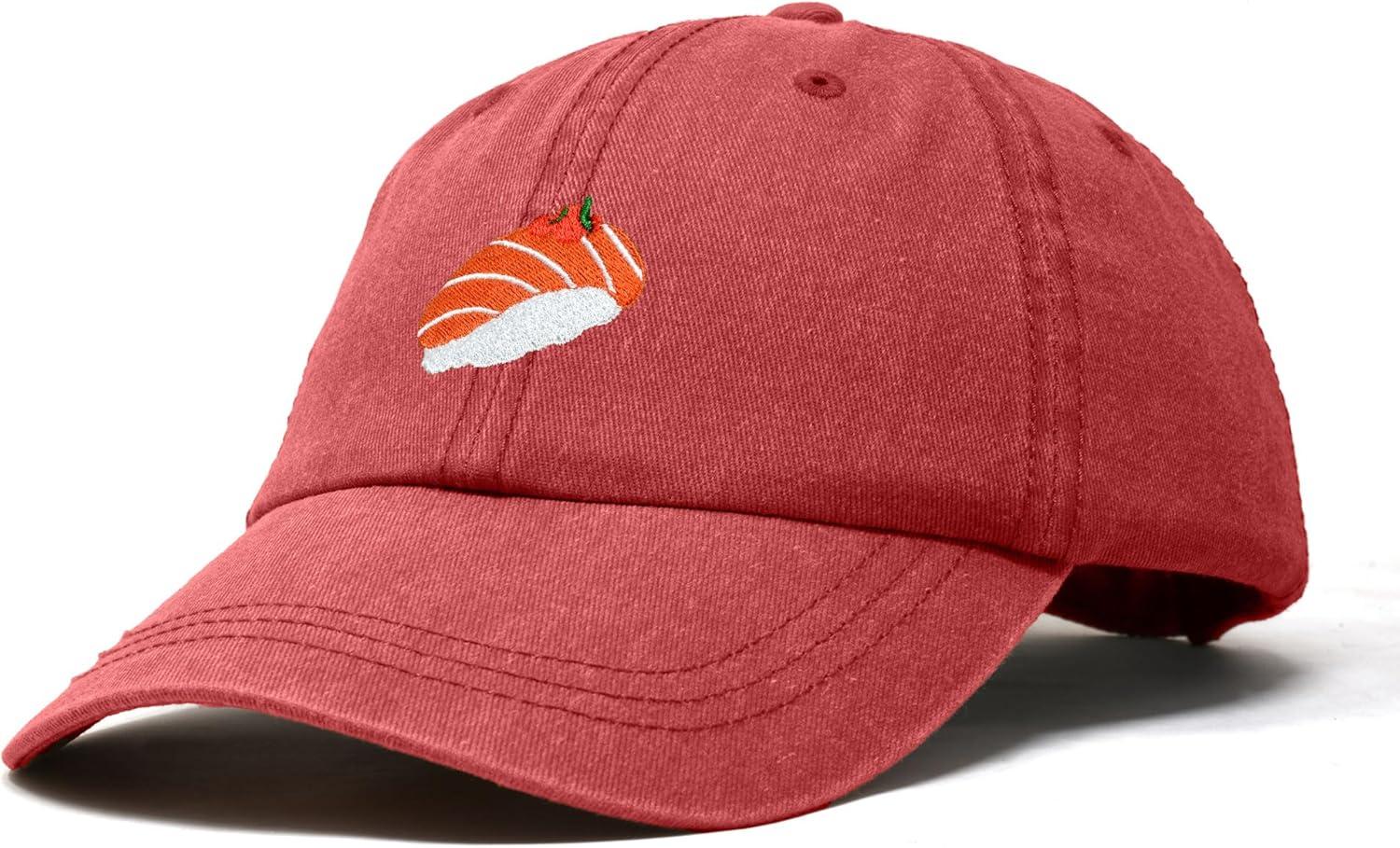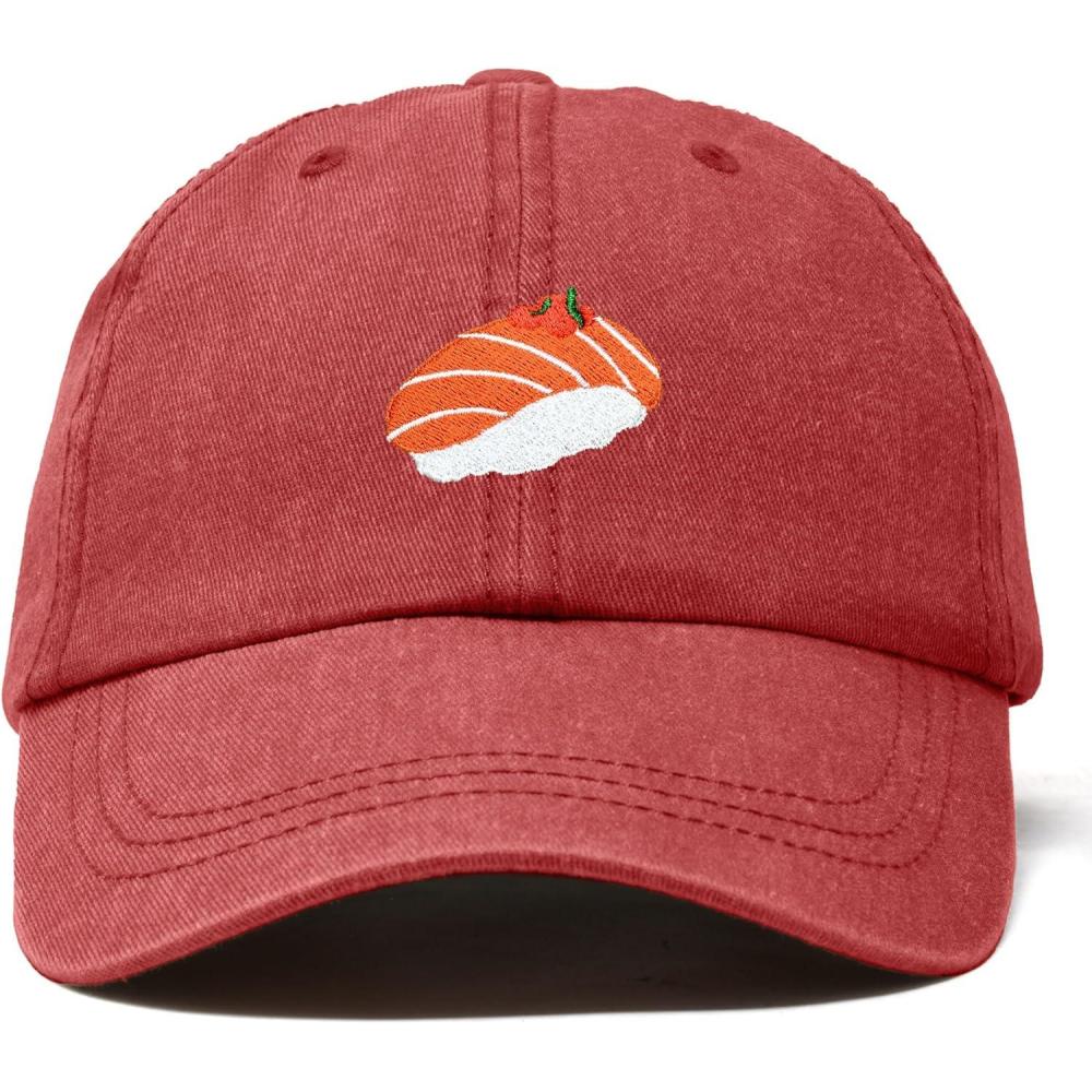 DALIX Salmon Nigiri Embroidered Sushi Cotton Dad Hat Baseball Cap Adjustable Womens(Washed Red)