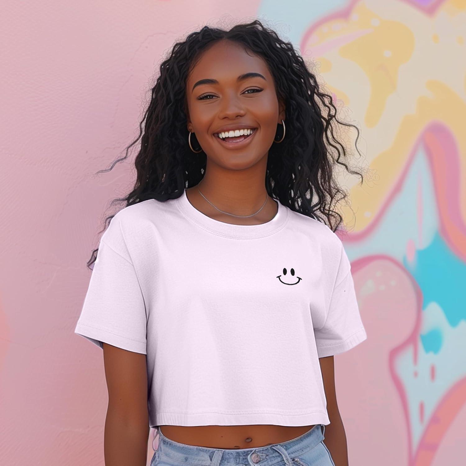 Spread positivity with this women's t-shirt adorned with a vibrant smiley face embroidery, radiating cheerful vibes and adding a dose of happiness to your everyday wardrobe. The whimsical stitching captures the essence of joy, making it a delightful and uplifting choice for any casual occasion. Crafted from ring-spun cotton, this tee offers a super soft feel and durability. The garment-dyed fabric ensures a lived-in look with almost no shrinkage, while the 100% cotton threads add to its quality. Featuring a boxy fit and slightly cropped design, this tee delivers a trendy, relaxed silhouette. The shoulder-to-shoulder twill tape adds a touch of refinement, ensuring a perfect fit every time. Versatile and effortlessly stylish, our Relaxed Boxy Tee is ideal for a variety of occasions. Wear it to a casual day at the beach, a relaxed brunch with friends, or a cozy study session at the coffee shop. It’s also perfect for running errands, a laid-back movie night, a weekend getaway, or a stroll in the park. This tee pairs perfectly with high-waisted jeans, shorts, or skirts, making it a must-have staple in your wardrobe. Elevate your everyday look with this chic and comfortable tee. Relaxed Fit