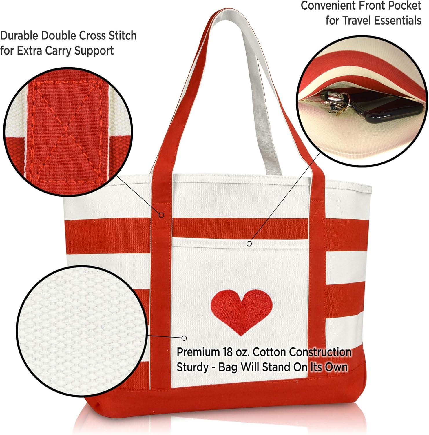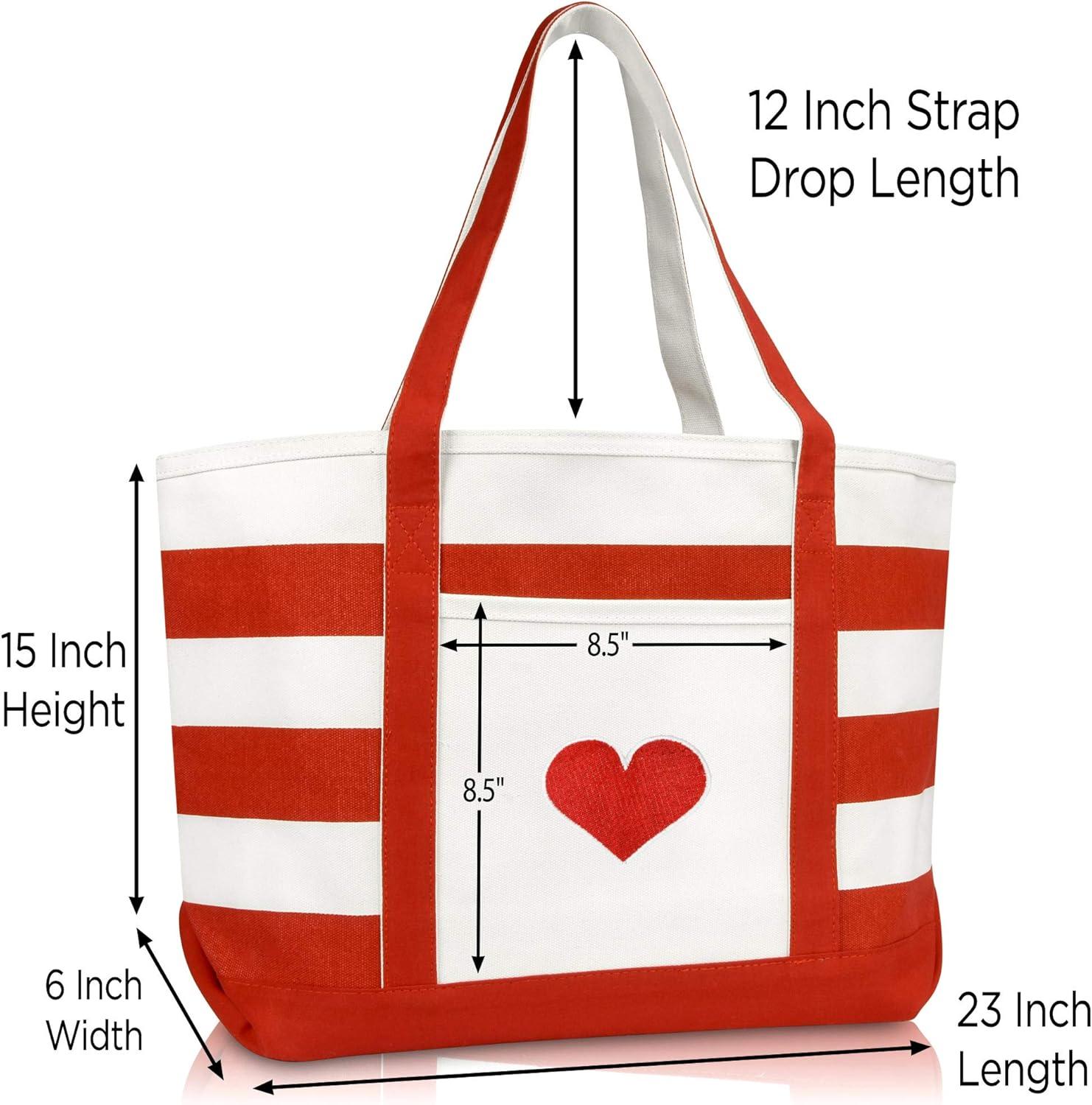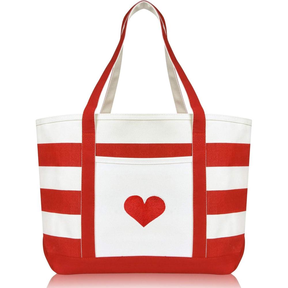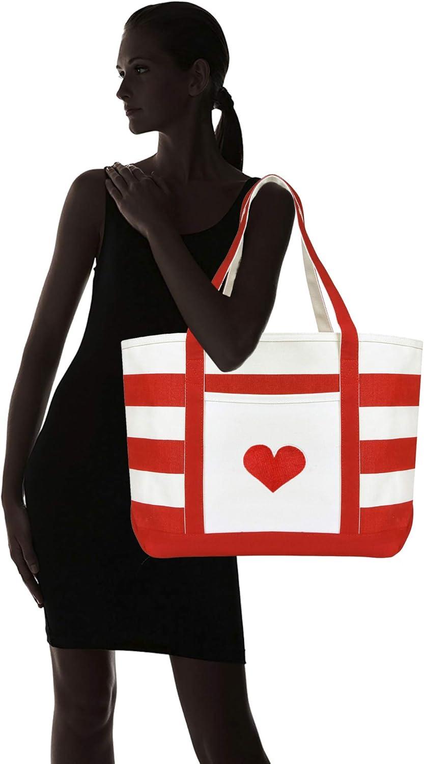 Love Big Heart Womens Embroidered Striped Tote Bag Premium Cotton(Red)